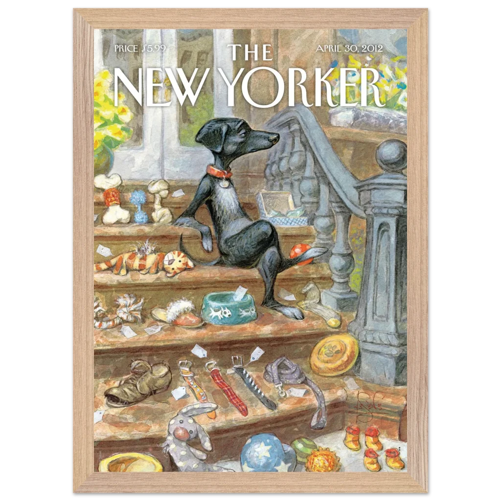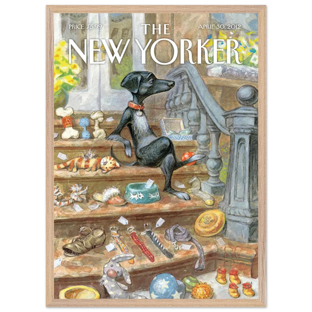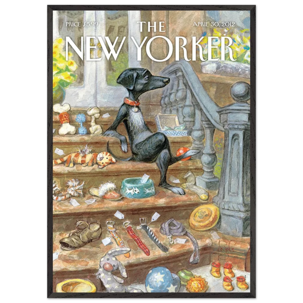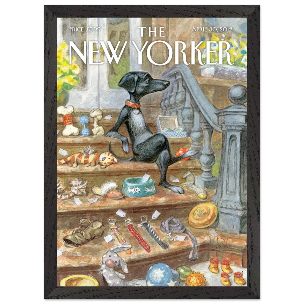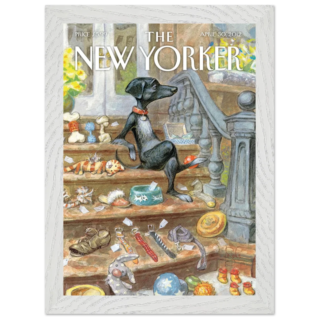 Capture the heartwarming charm of a beloved pet’s world with our “A Dog’s Life” poster. This delightful illustration, reminiscent of classic New Yorker covers, brings a touch of whimsical sophistication to any room. Featuring a relaxed canine amidst its treasures, this piece is perfect for dog lovers and those who appreciate unique, character-filled art.