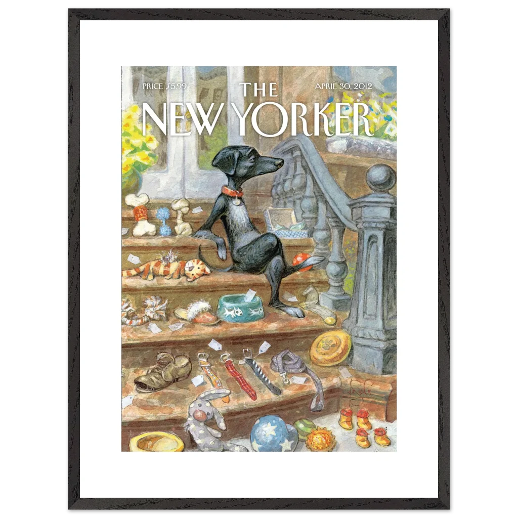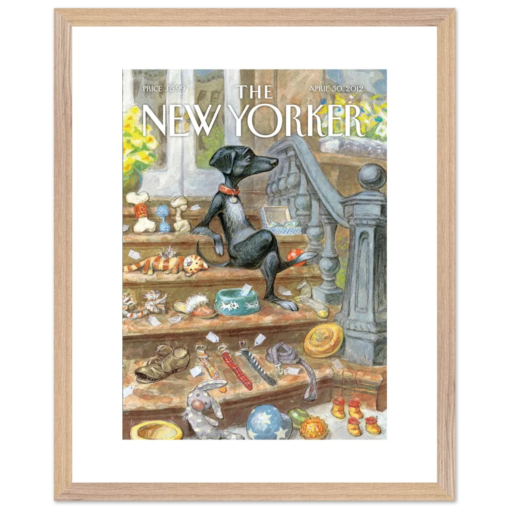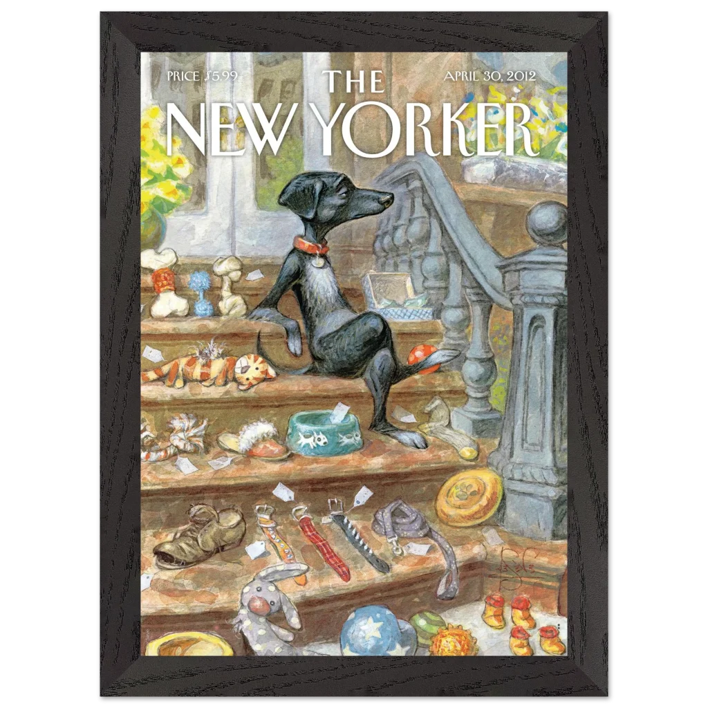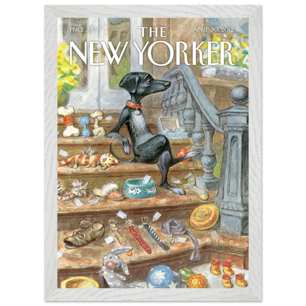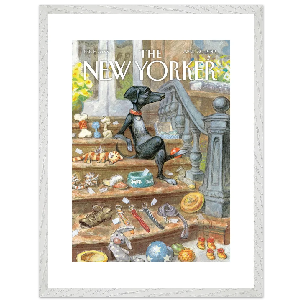 Capture the heartwarming charm of a beloved pet’s world with our “A Dog’s Life” poster. This delightful illustration, reminiscent of classic New Yorker covers, brings a touch of whimsical sophistication to any room. Featuring a relaxed canine amidst its treasures, this piece is perfect for dog lovers and those who appreciate unique, character-filled art.