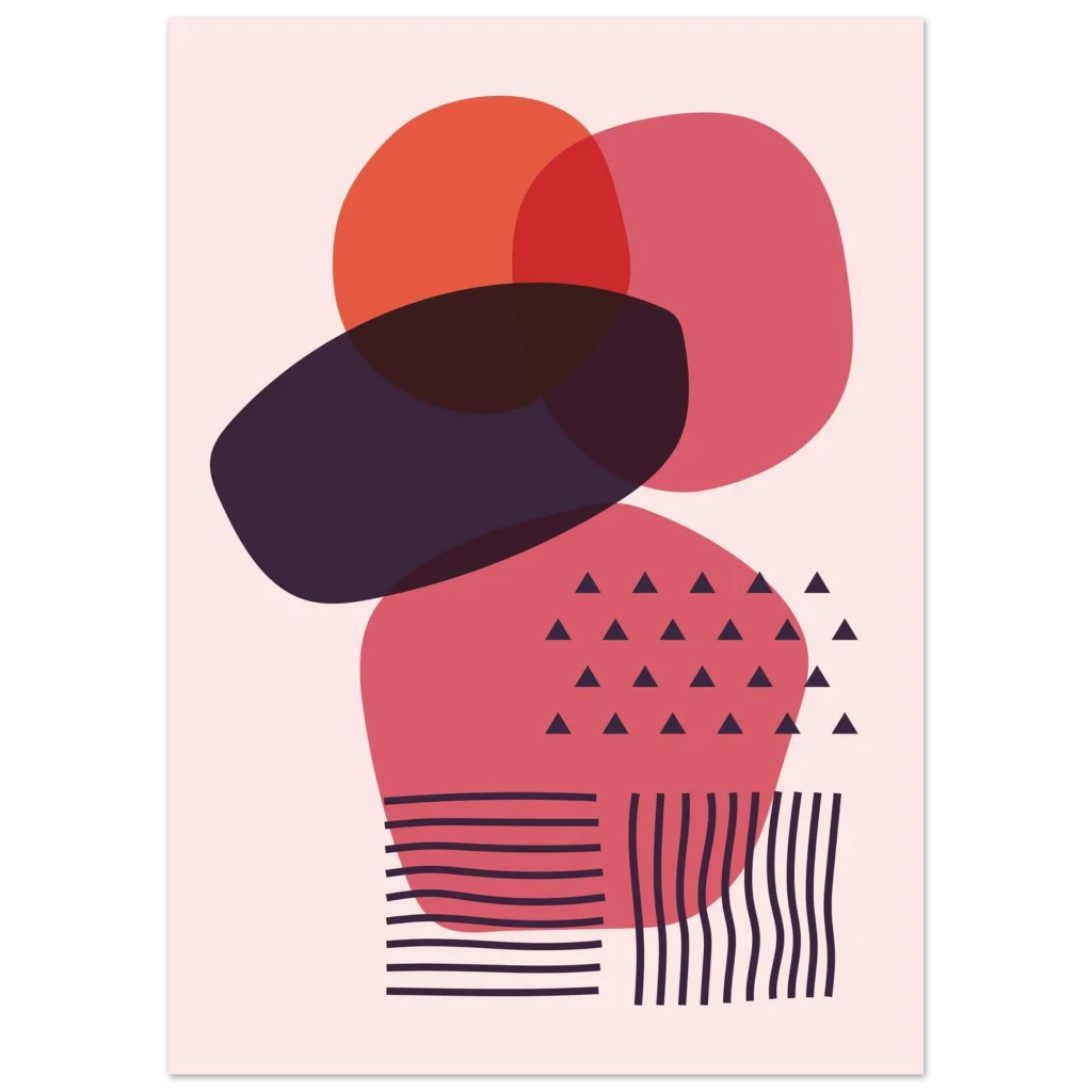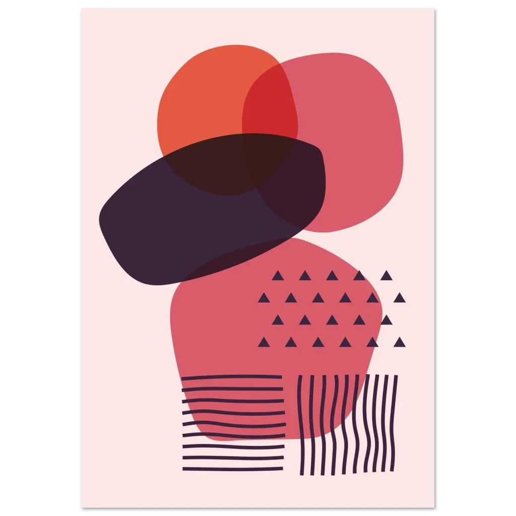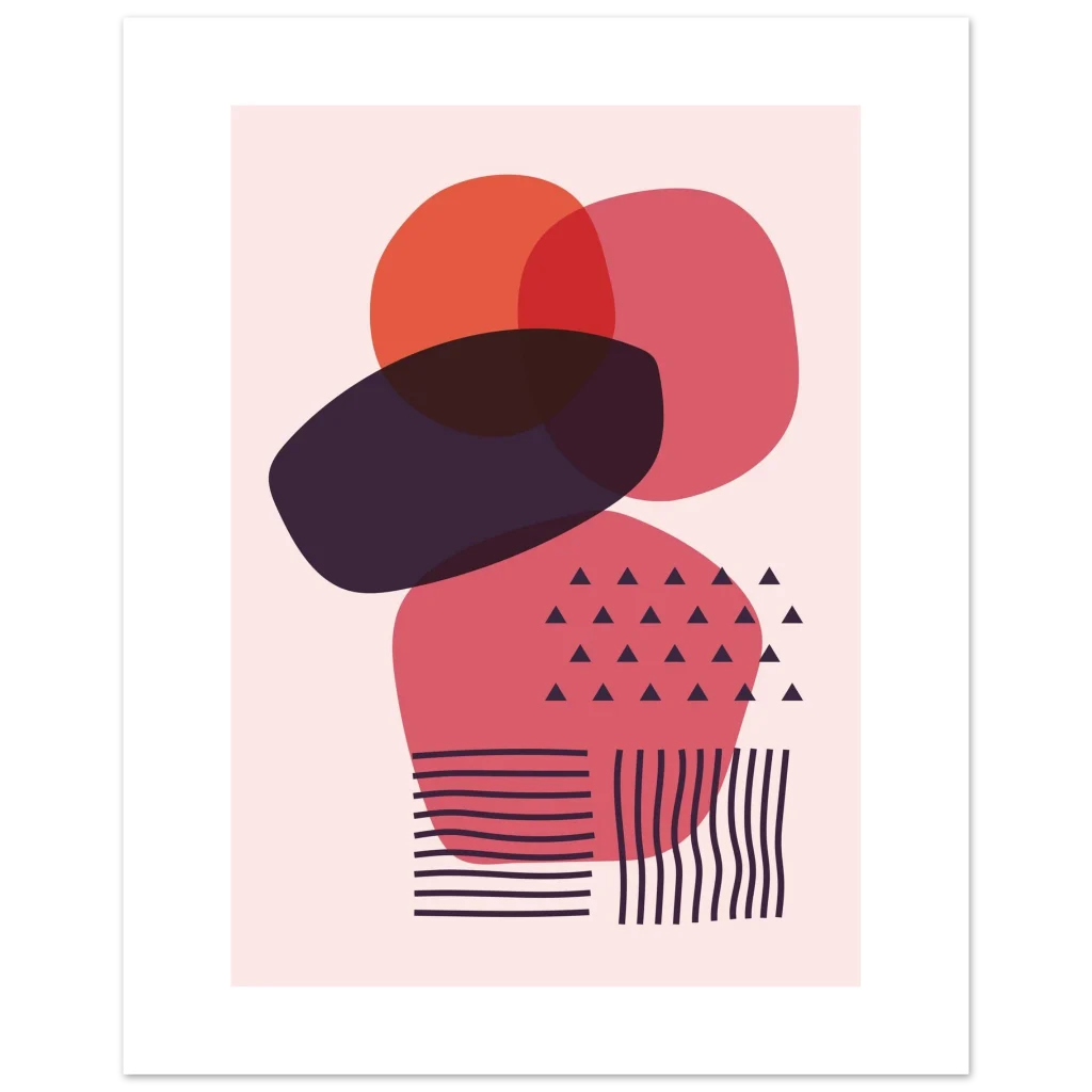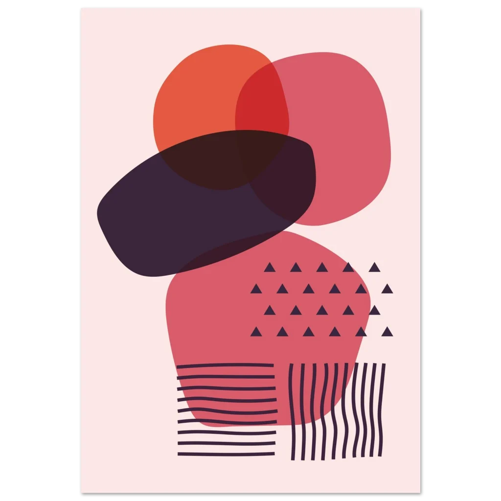 Infuse your living space with a touch of modern sophistication and warm, inviting hues. This captivating abstract art print features a harmonious blend of earthy reds, deep purples, and soft pinks, accented with playful geometric shapes and lines. It’s designed to bring a calming yet dynamic energy to any room, perfect for creating an inspiring focal point or complementing your existing decor.