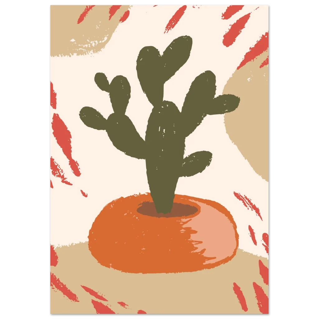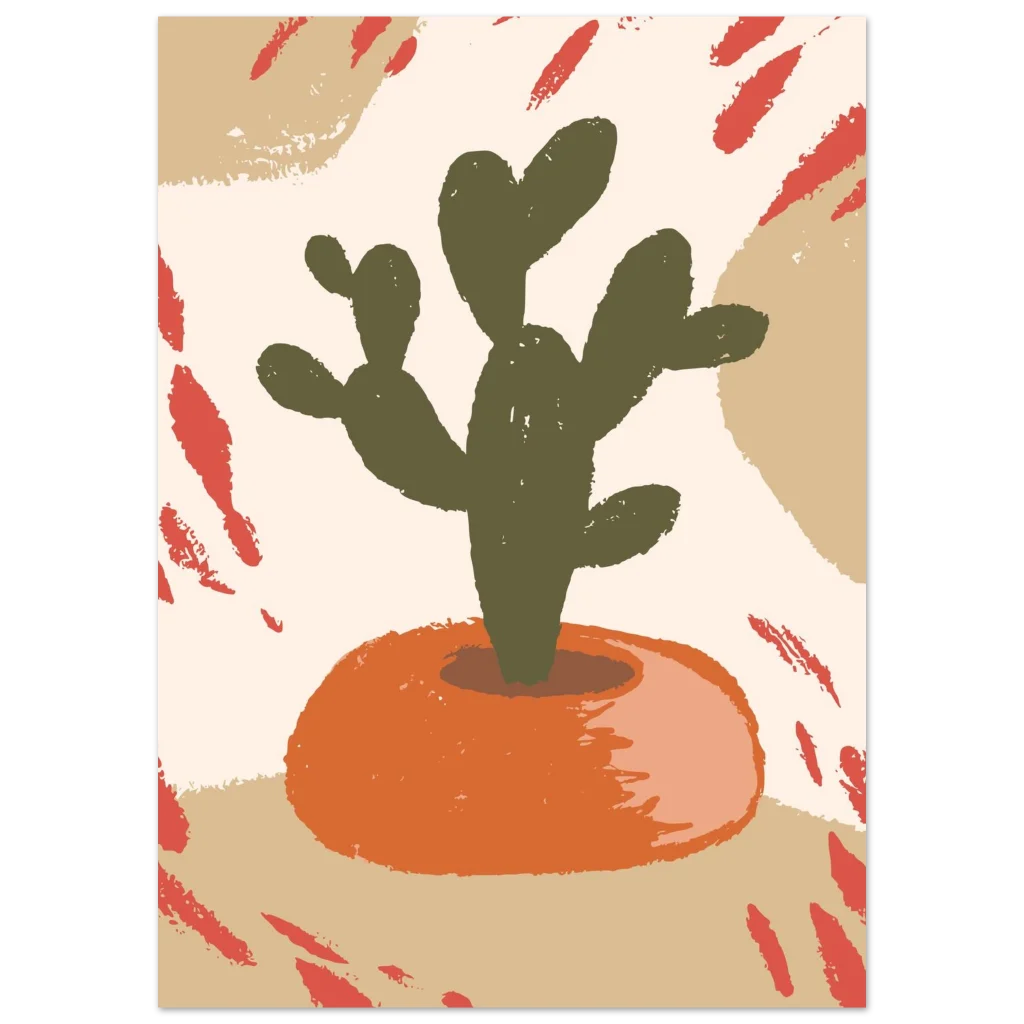 Abstract Desert Cactus Art Poster – Vibrant Boho Decor with Warm Tones