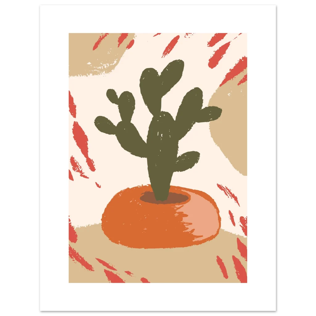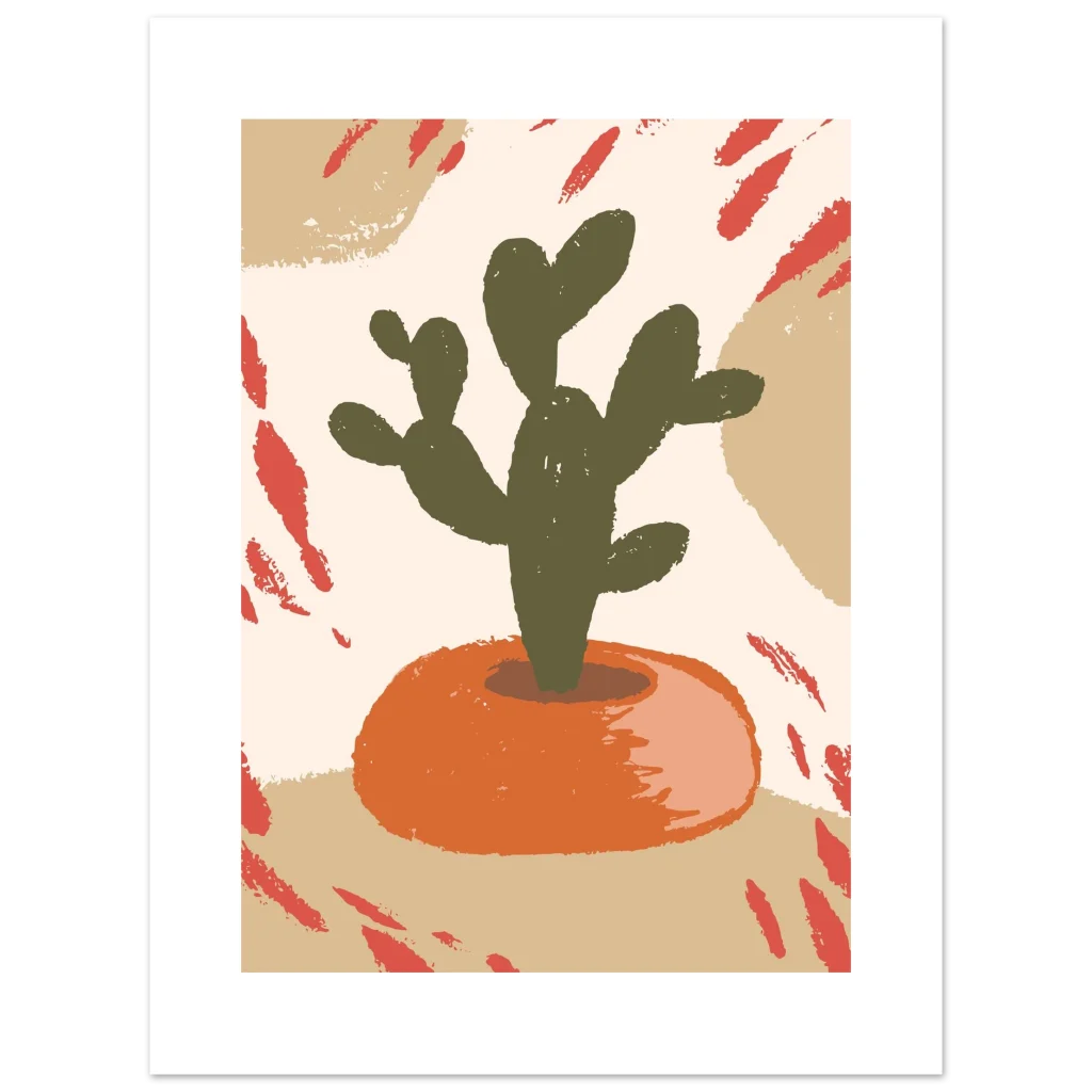 Bring the warmth and serene beauty of the desert into your space with our Abstract Desert Cactus Art Poster. This piece captures a minimalist yet vibrant aesthetic, featuring a stylized cactus in an earthy terracotta pot, set against a backdrop of natural beige and playful coral brushstrokes. Its unique abstract style and inviting color palette make it a perfect accent for any room seeking a touch of modern bohemian charm.