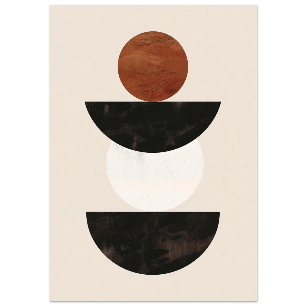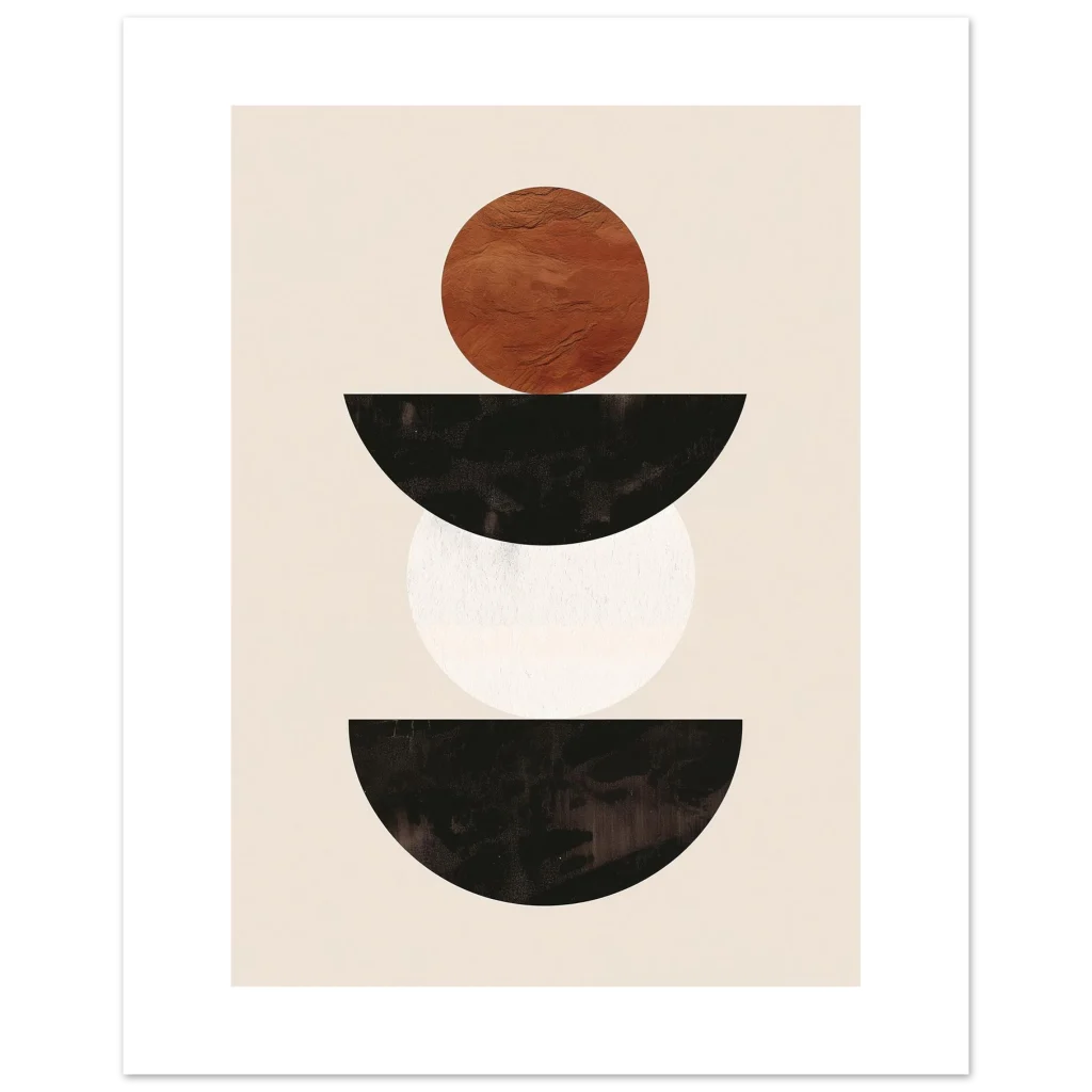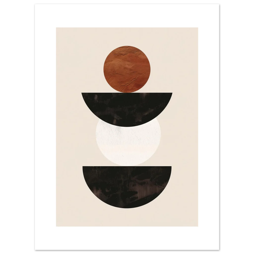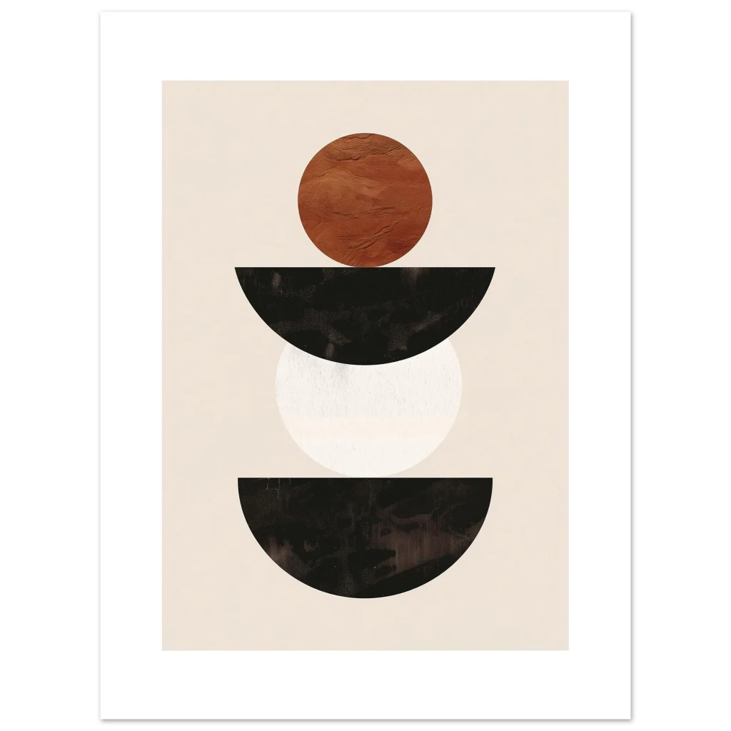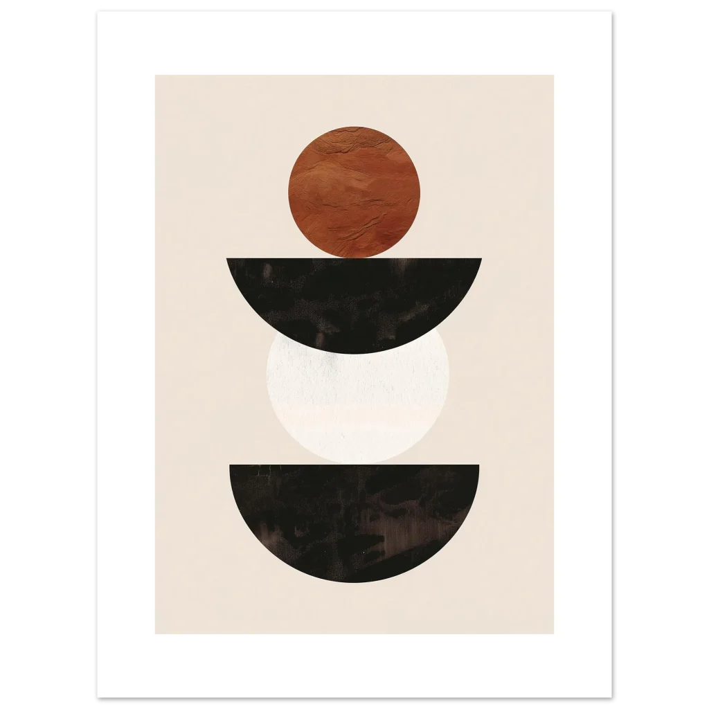Bring a touch of modern sophistication and natural calm into your space with this stunning abstract art print. Featuring warm, earthy tones and minimalist geometric shapes, this piece captures a serene, balanced aesthetic perfect for contemporary interiors. The rich texture visible in the design adds depth and an organic feel, inviting contemplation and adding a unique focal point to any room.