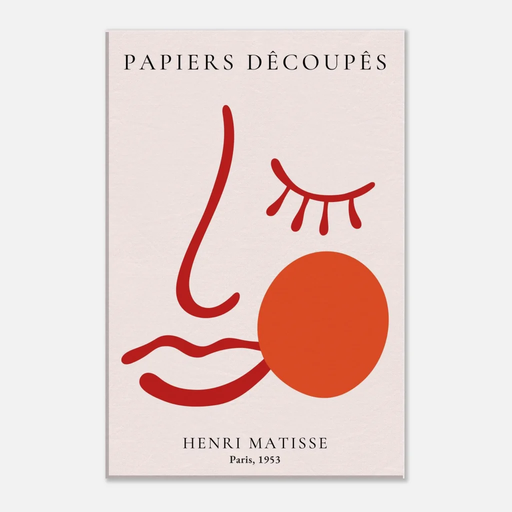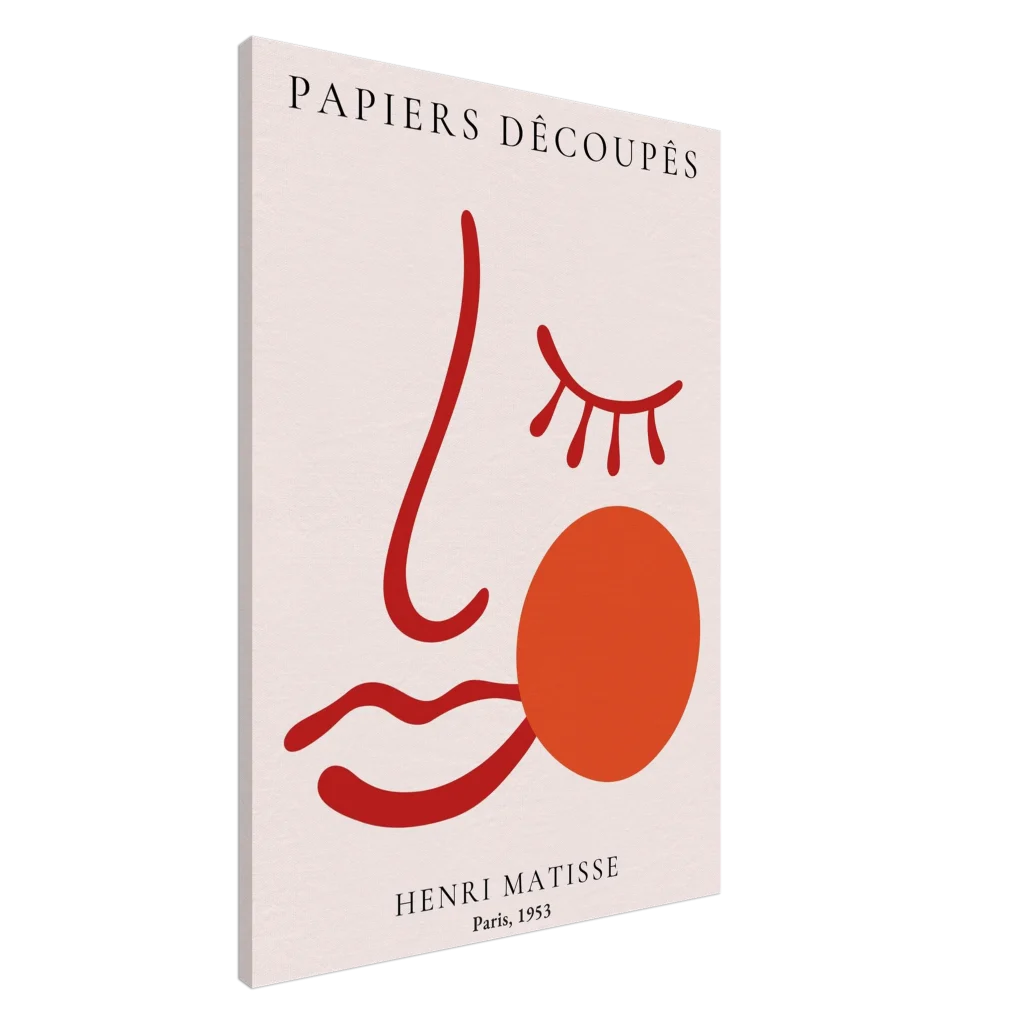 Immerse your space in the vibrant simplicity of our Matisse-inspired canvas print. This piece captures the essence of abstract beauty with its bold, minimalist lines and warm, inviting color palette. The canvas texture elevates the image’s natural look and feel, creating a truly immersive art experience that brings a touch of Parisian chic to any room.