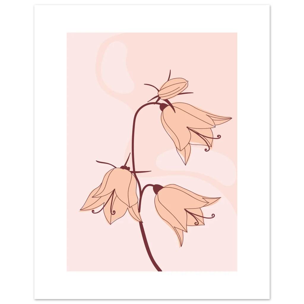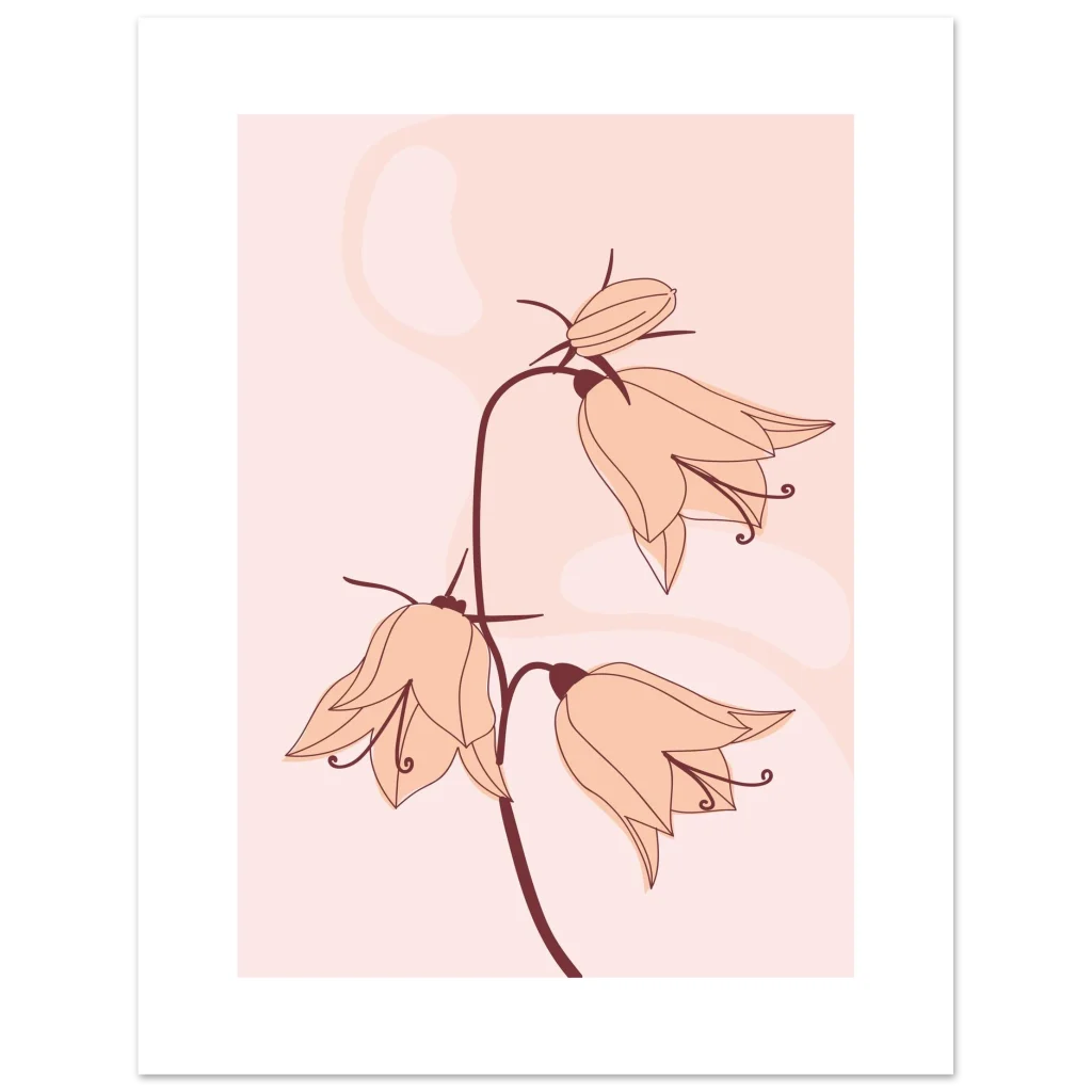 Bring a touch of serene elegance to your space with this exquisite abstract floral print. Featuring delicate bellflowers in a soft, muted color palette of peach and blush, accented with rich burgundy lines, this artwork embodies a tranquil and minimalist aesthetic. Perfect for creating a calming focal point in any room, its gentle curves and harmonious tones invite a sense of peace and natural beauty.