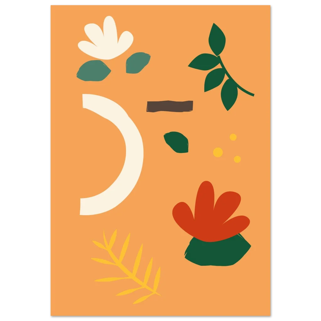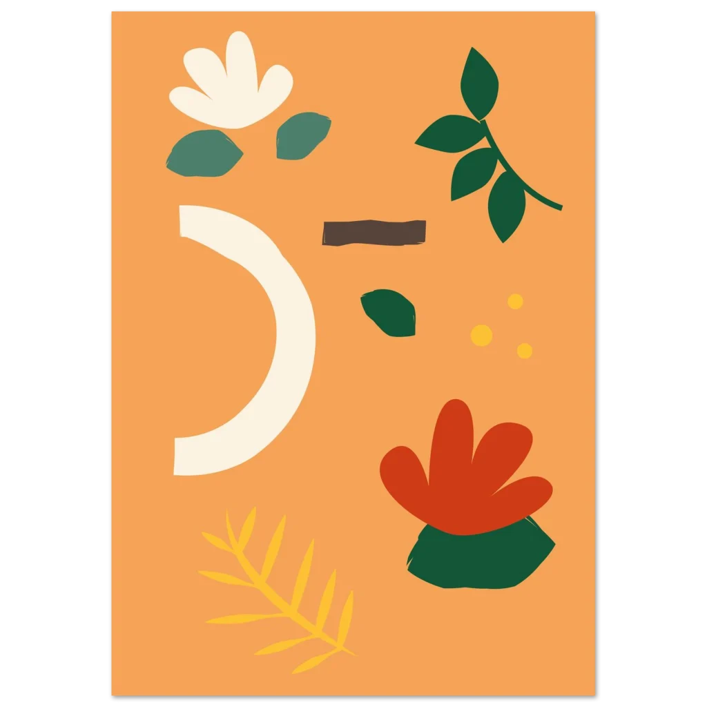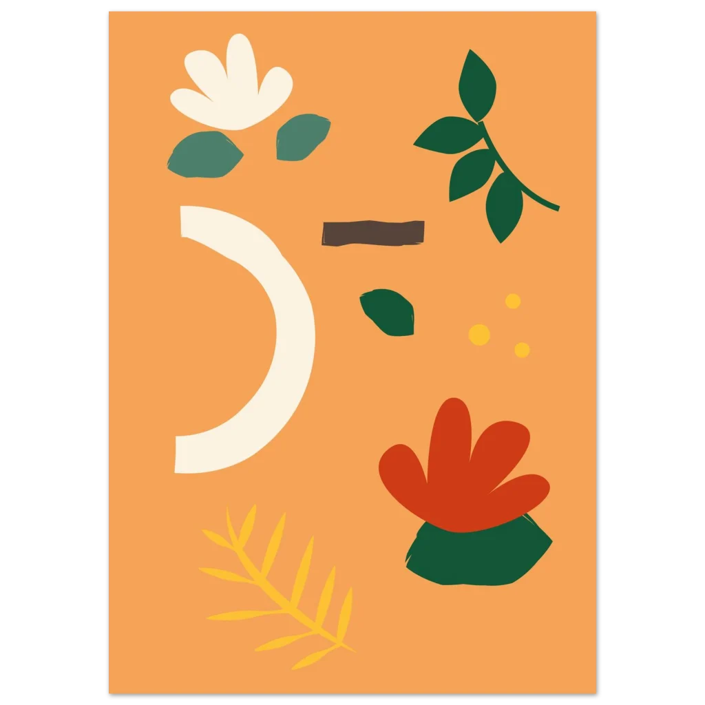 Infuse your space with the warmth and organic beauty of our Abstract Floral Earth Tones poster. Featuring a harmonious blend of muted greens, soft creams, warm rust, and a vibrant hint of gold on a delightful peach background, this design captures a serene, nature-inspired modern aesthetic. Each element feels hand-drawn, bringing an artistic, touchable quality that will brighten any room.