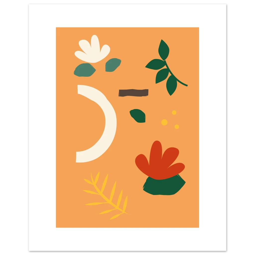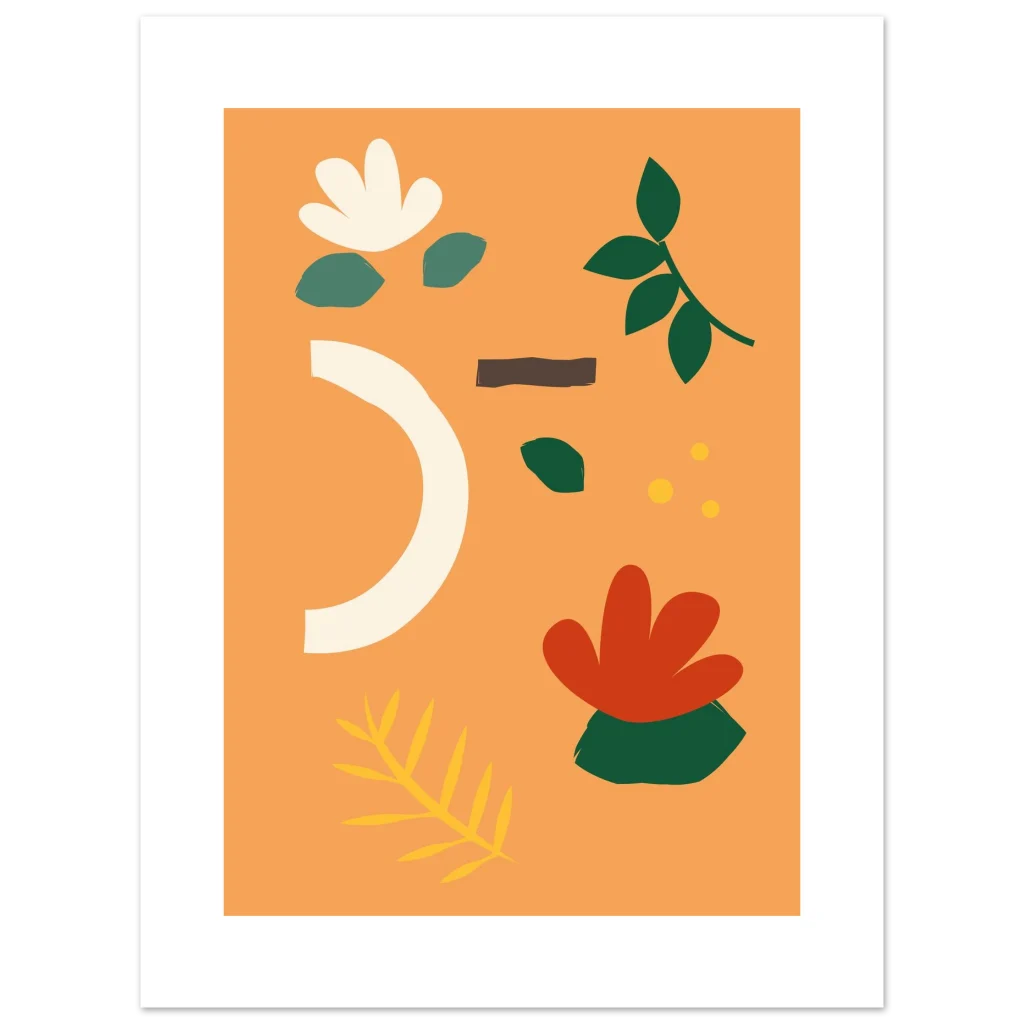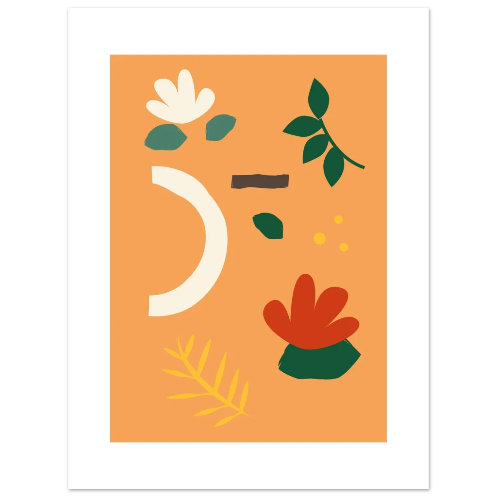 Infuse your space with the warmth and organic beauty of our Abstract Floral Earth Tones poster. Featuring a harmonious blend of muted greens, soft creams, warm rust, and a vibrant hint of gold on a delightful peach background, this design captures a serene, nature-inspired modern aesthetic. Each element feels hand-drawn, bringing an artistic, touchable quality that will brighten any room.
