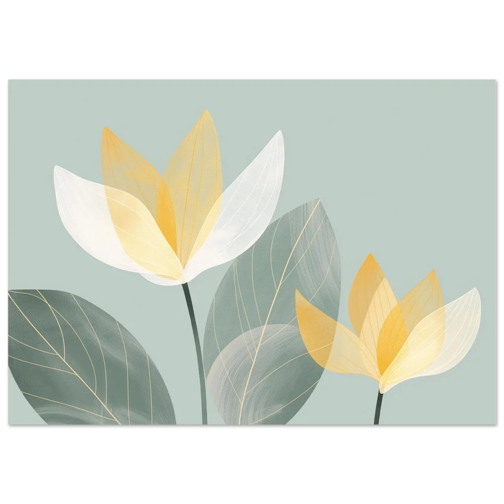 Abstract Floral Elegance – Semi-Glossy Botanical Art Poster in Serene Sage & Gold