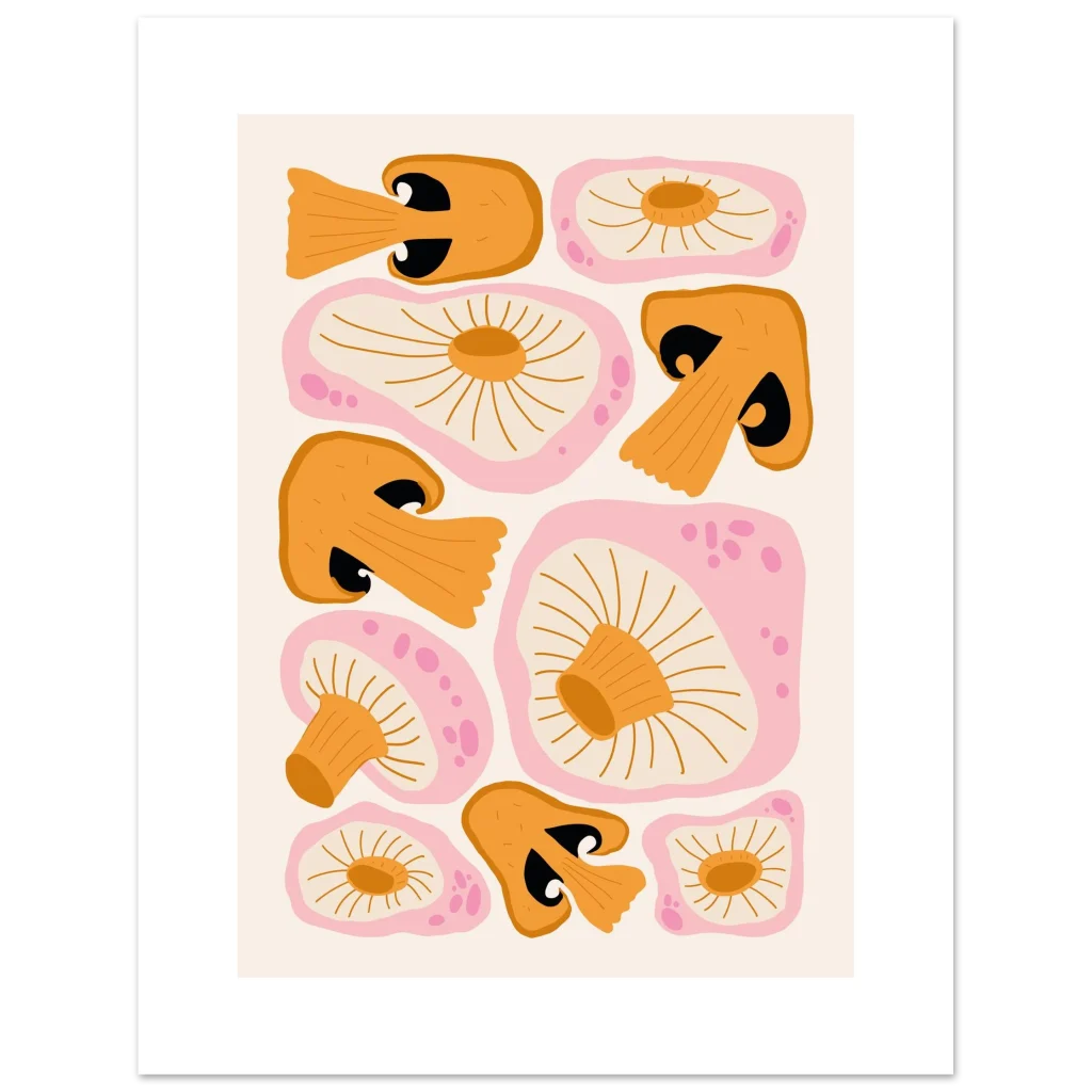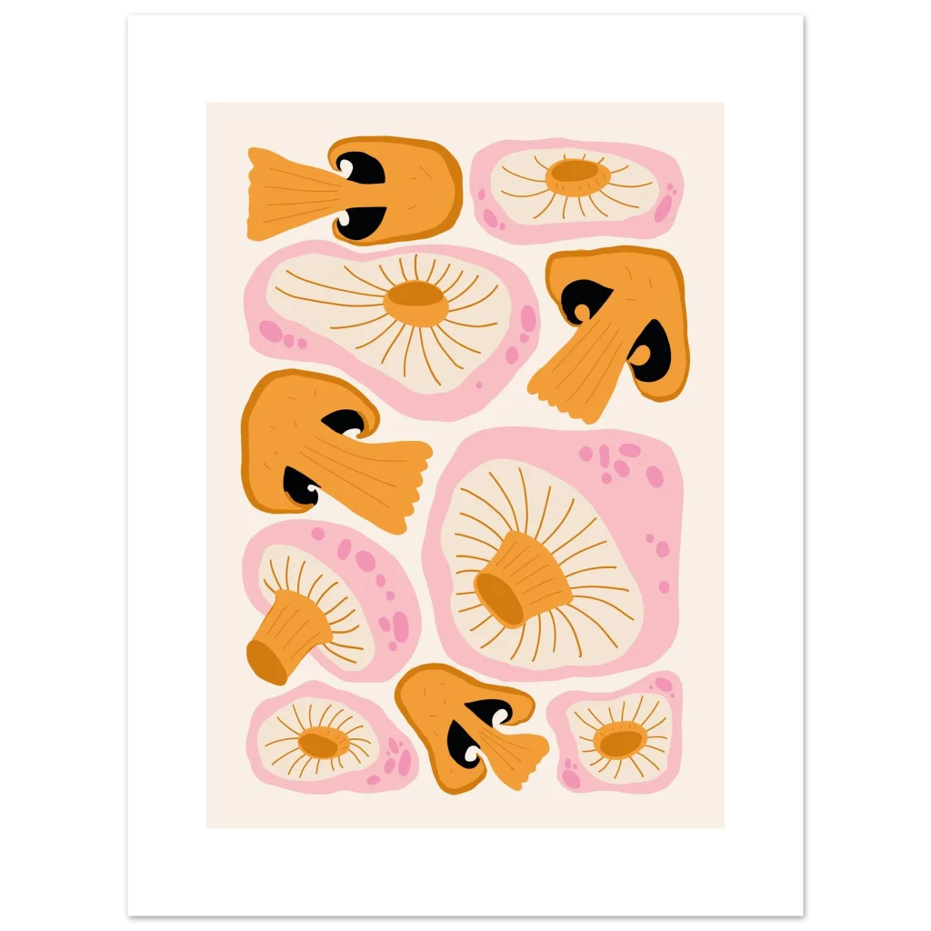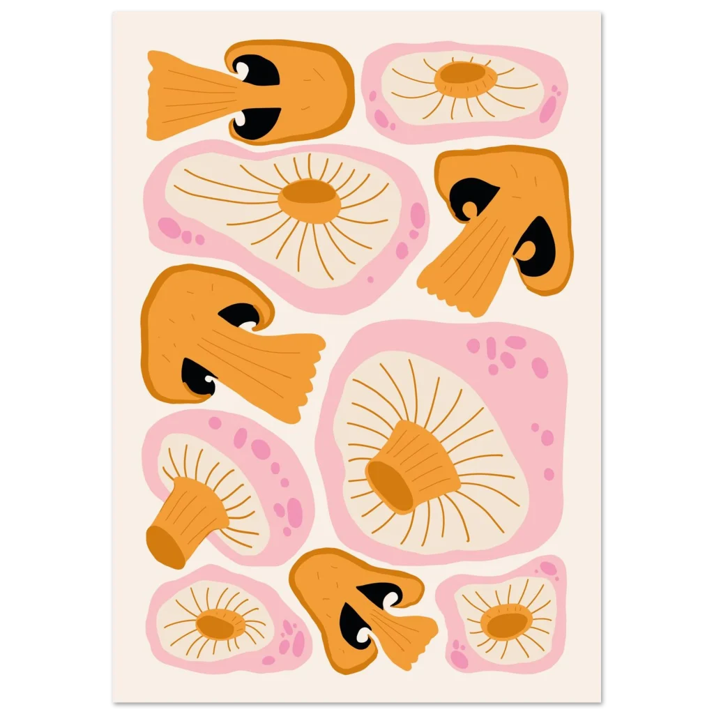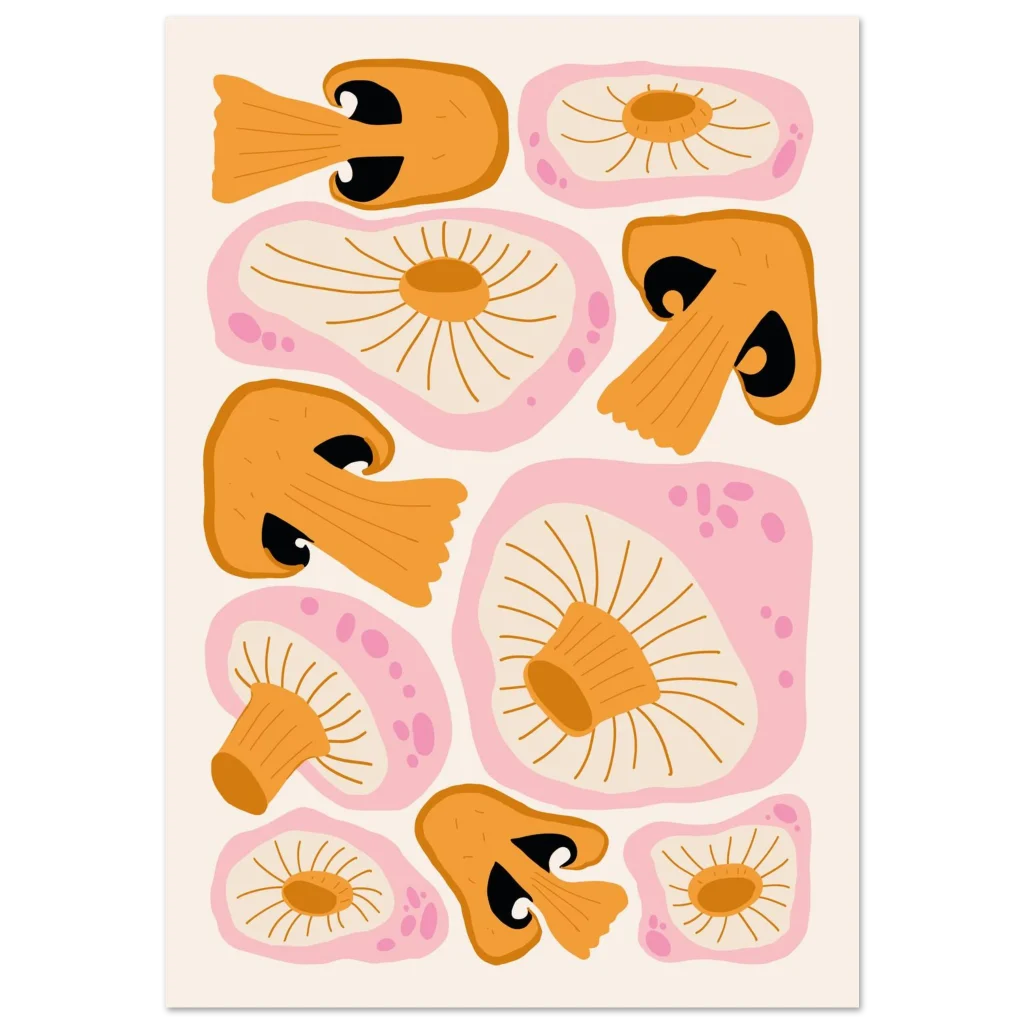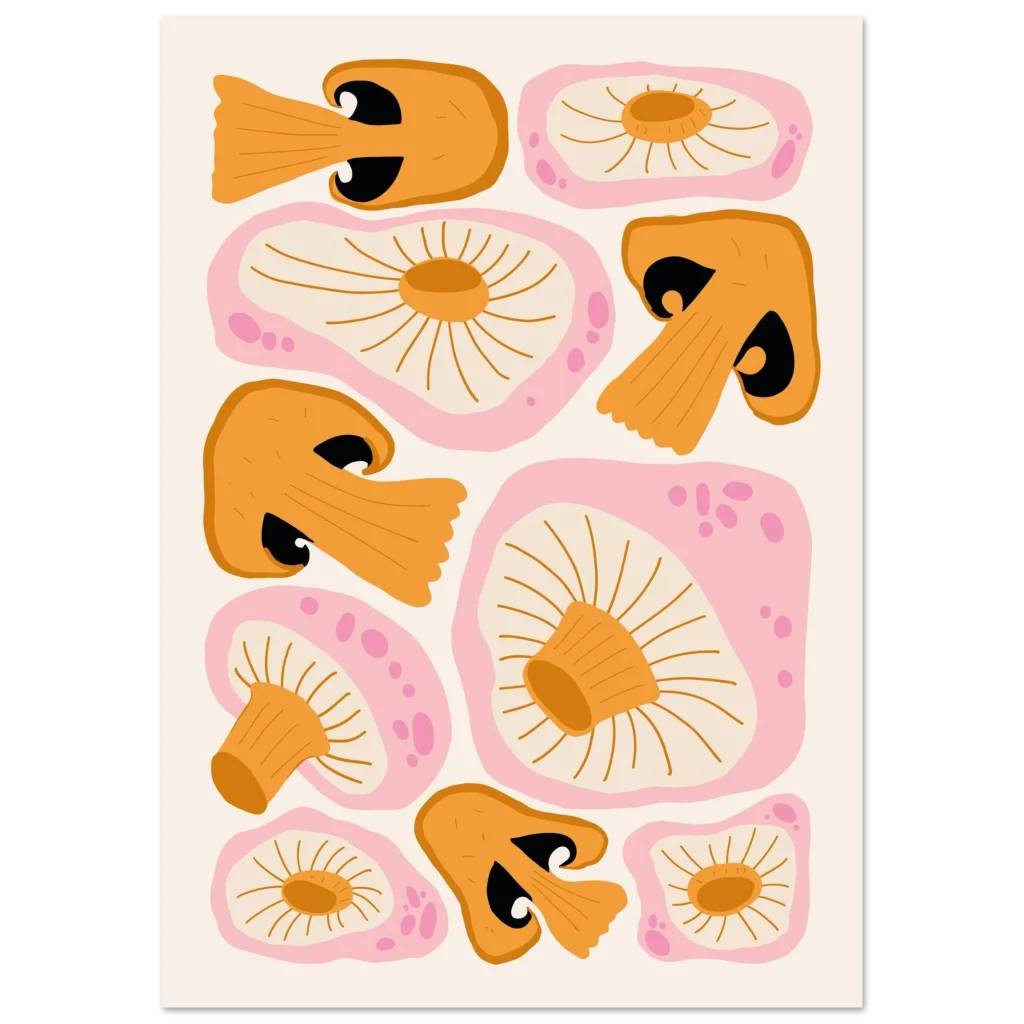 Abstract Fungi Delight: Classic Semi-Glossy Paper Poster with Playful Orange & Pink Tones