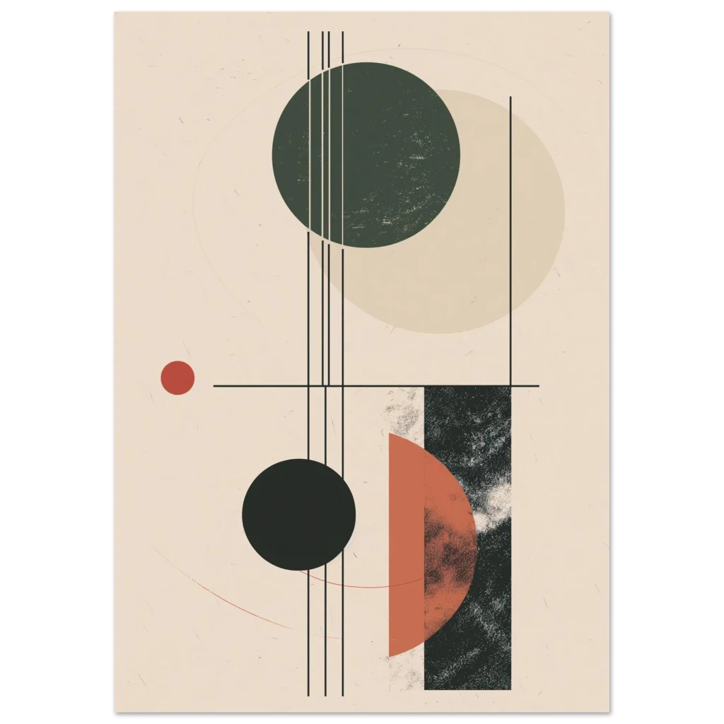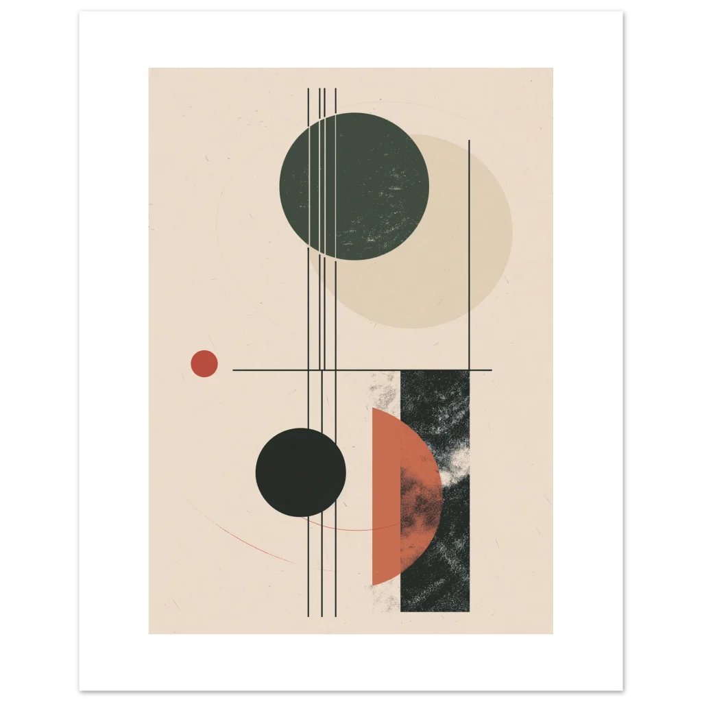 Infuse your space with a touch of modern sophistication. This captivating abstract geometric print, featuring a harmonious blend of earthy green, deep black, and warm terracotta against a soft beige backdrop, brings a sense of calm and contemporary style to any room. Its balanced composition and subtle texture make it a versatile piece for minimalist interiors or as an accent in more eclectic spaces.