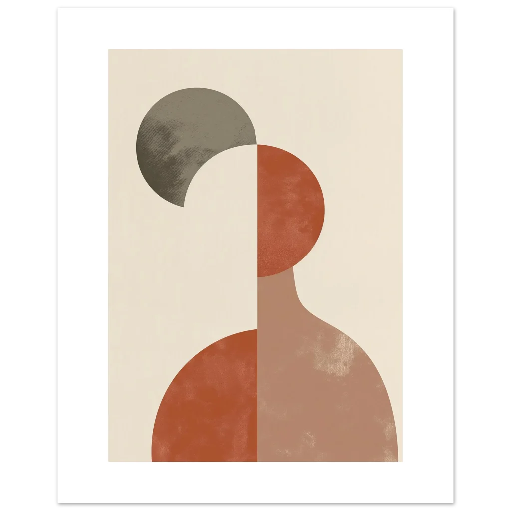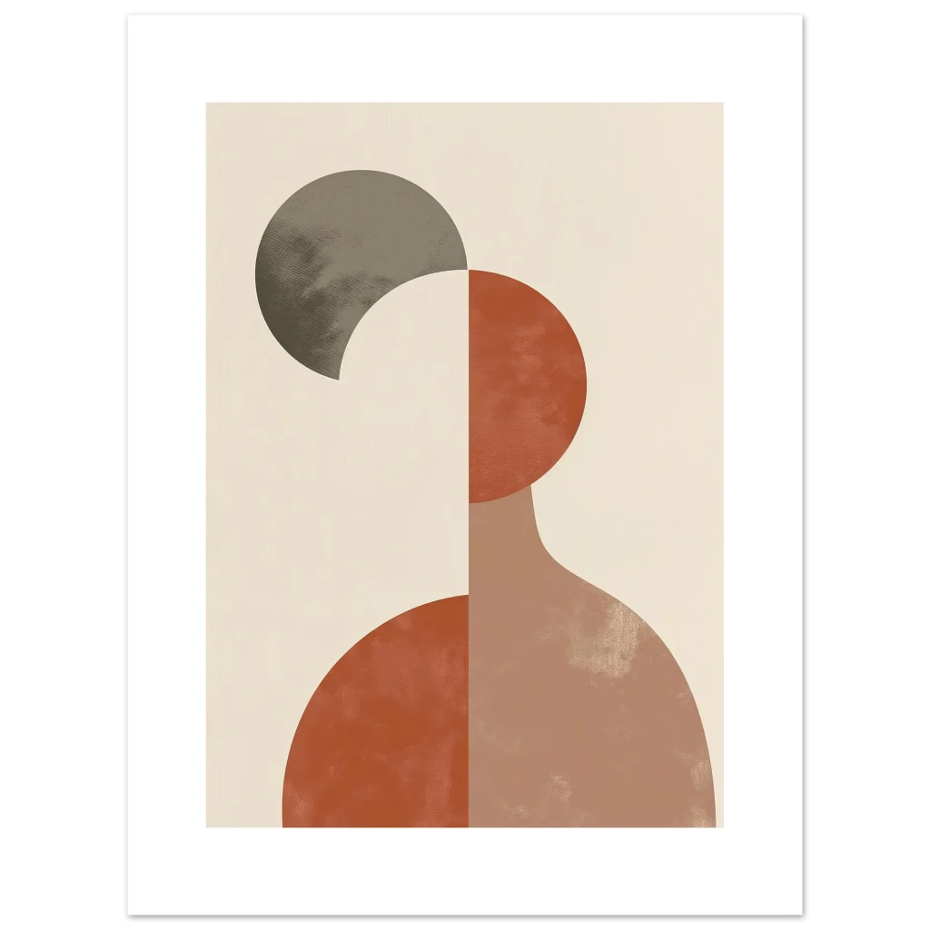 Bring a touch of modern serenity and organic elegance to your living space with this captivating abstract poster. Featuring a harmonious blend of earthy tones—warm terracotta, soft ivory, and subtle slate gray—its minimalist geometric design creates a sense of balanced sophistication. This piece is perfect for those who appreciate contemporary art that calms and inspires.