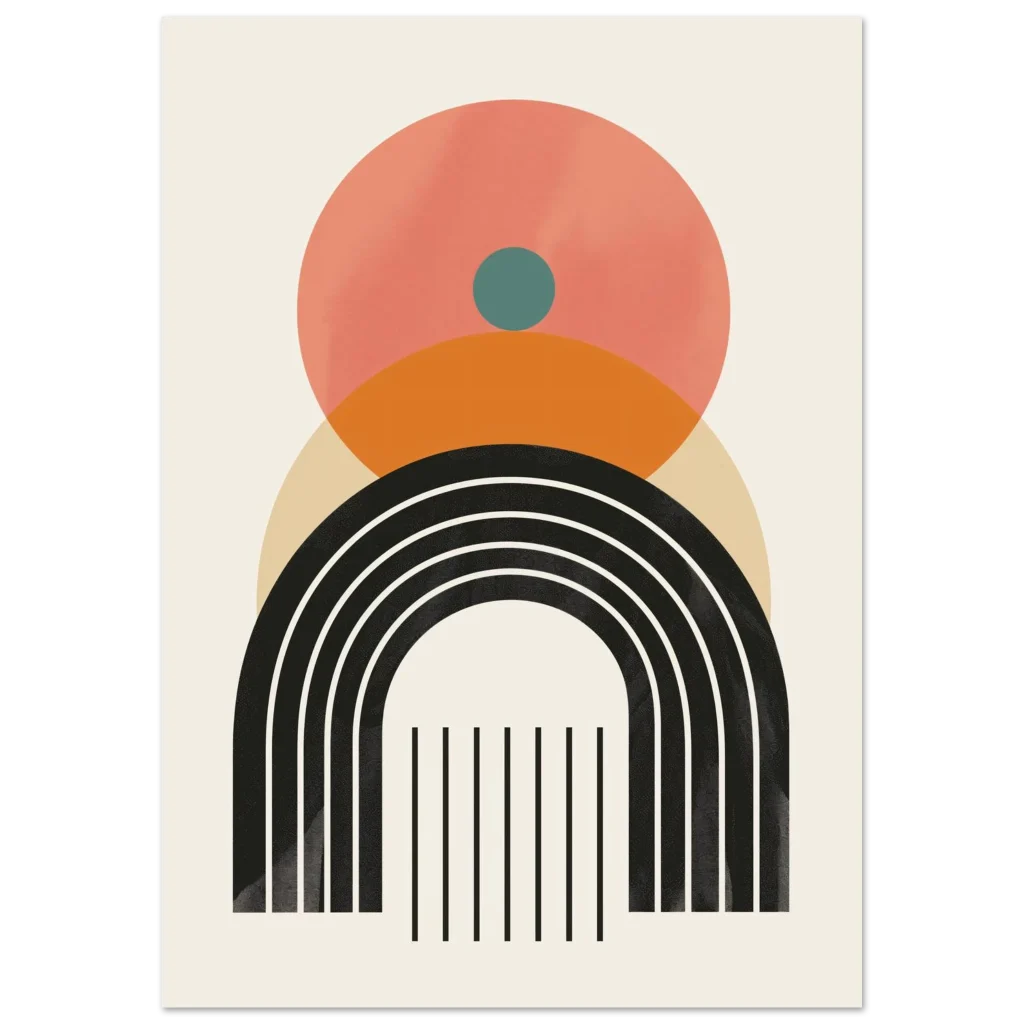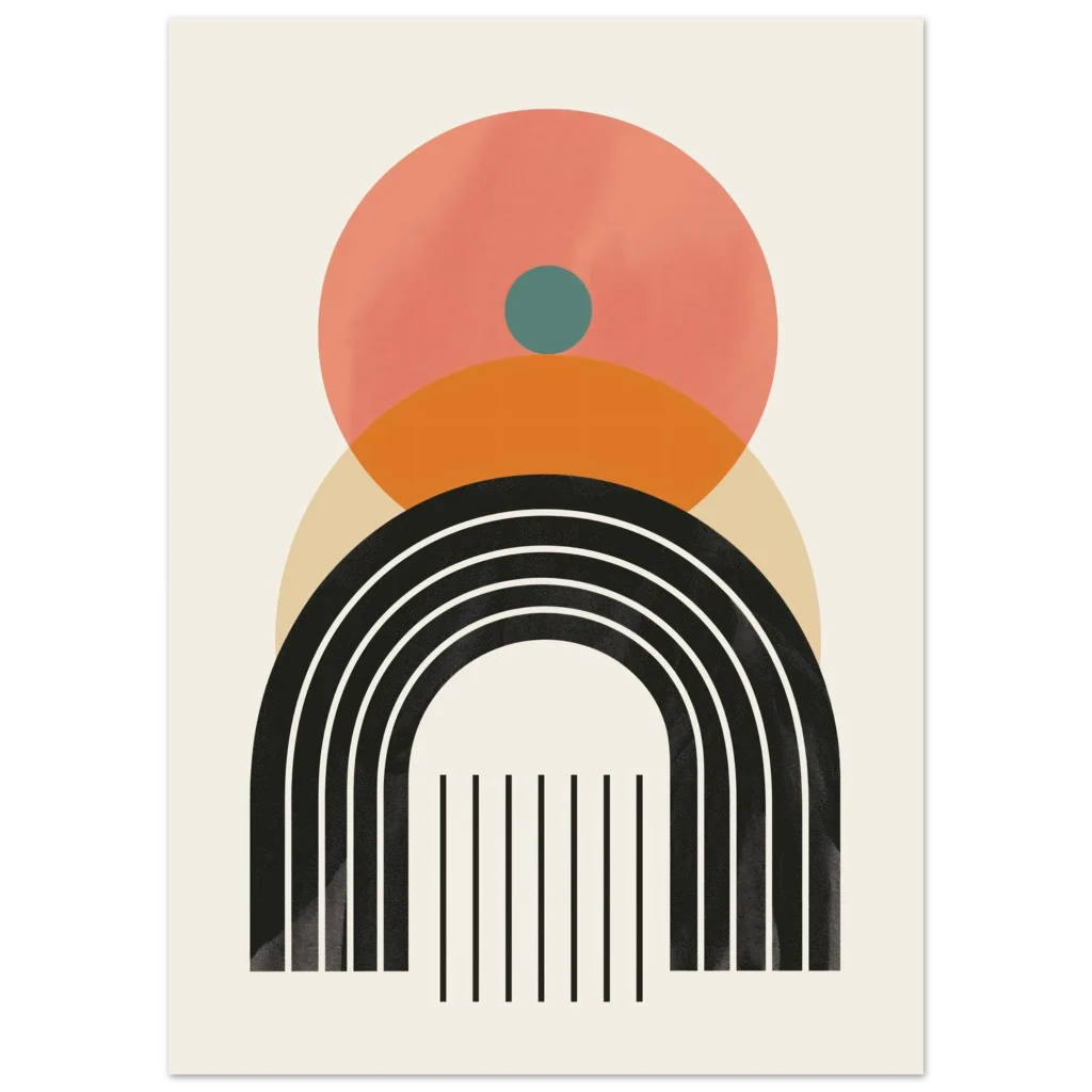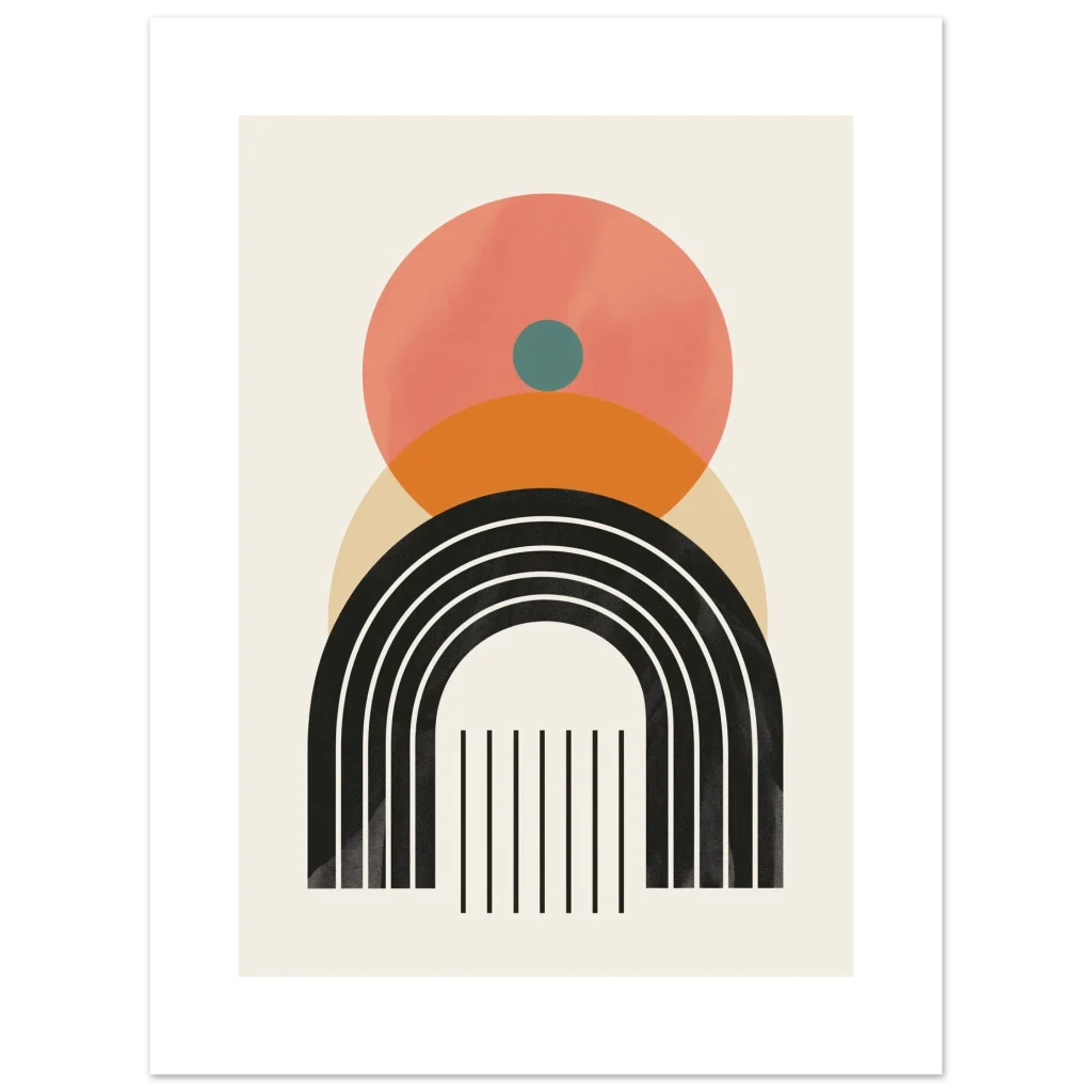 Bring a touch of timeless elegance and contemporary flair to your living space with our Abstract Geometric Mid-Century Modern Art Print. Inspired by the clean lines and vibrant palettes of a classic era, this piece features a captivating blend of warm peach, sunny orange, and deep teal accents, anchored by bold, minimalist black arches. It’s more than just a poster; it’s a statement piece designed to elevate your home decor with sophisticated simplicity and artistic charm.