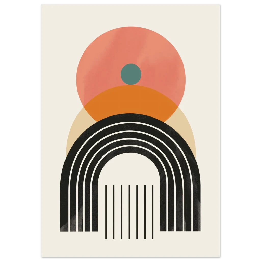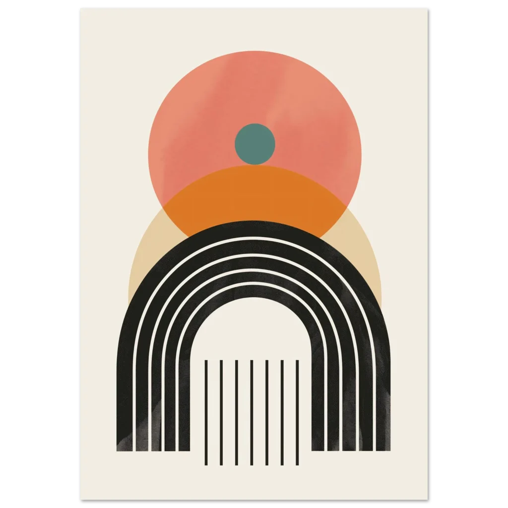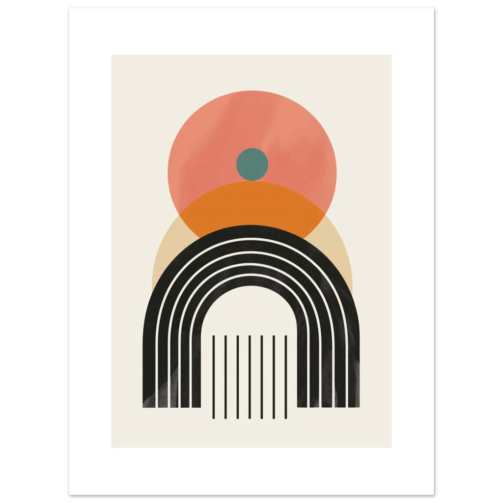 Bring a touch of timeless elegance and contemporary flair to your living space with our Abstract Geometric Mid-Century Modern Art Print. Inspired by the clean lines and vibrant palettes of a classic era, this piece features a captivating blend of warm peach, sunny orange, and deep teal accents, anchored by bold, minimalist black arches. It’s more than just a poster; it’s a statement piece designed to elevate your home decor with sophisticated simplicity and artistic charm.