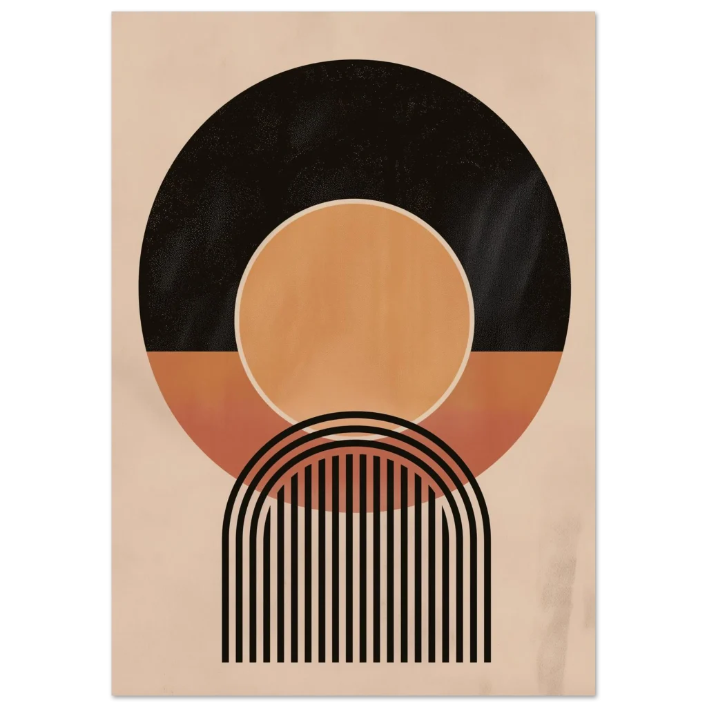Abstract Horizon Matte Paper Poster – Modern Boho Sun & Arch Design