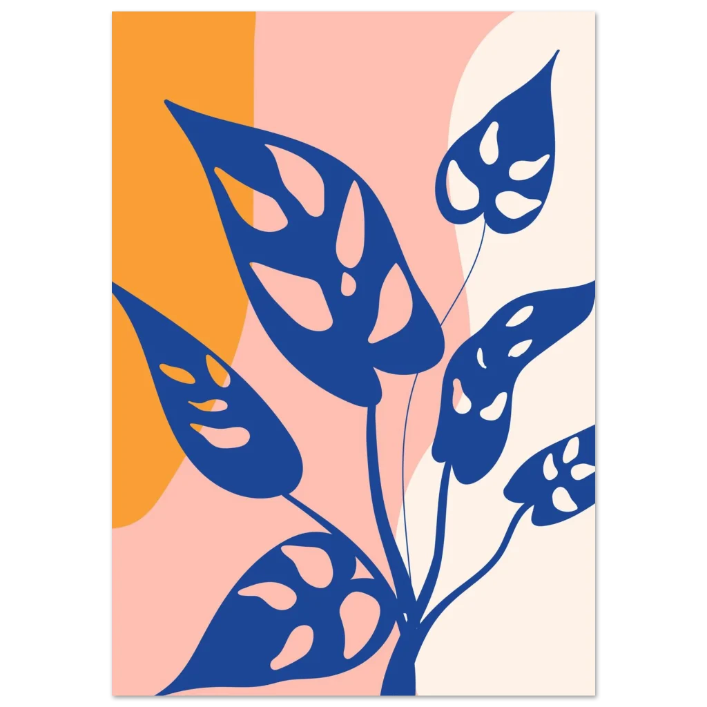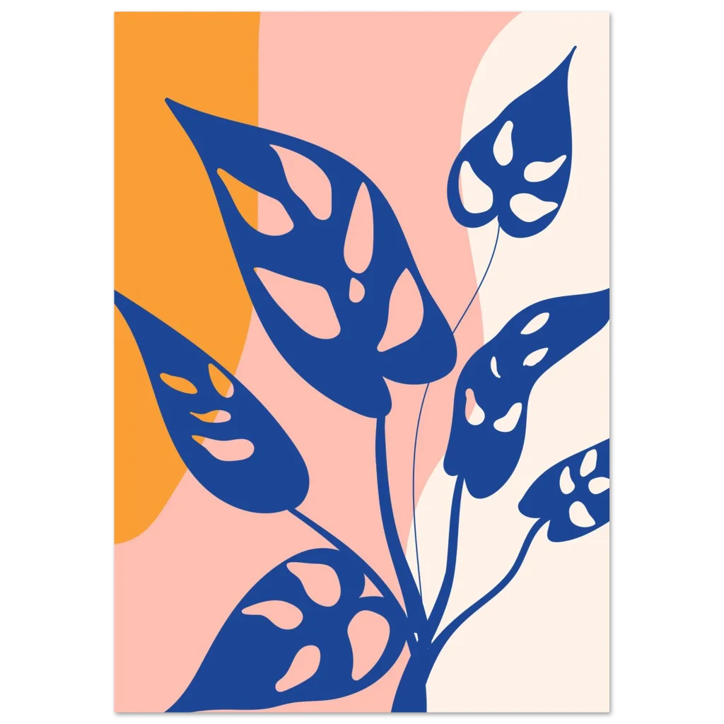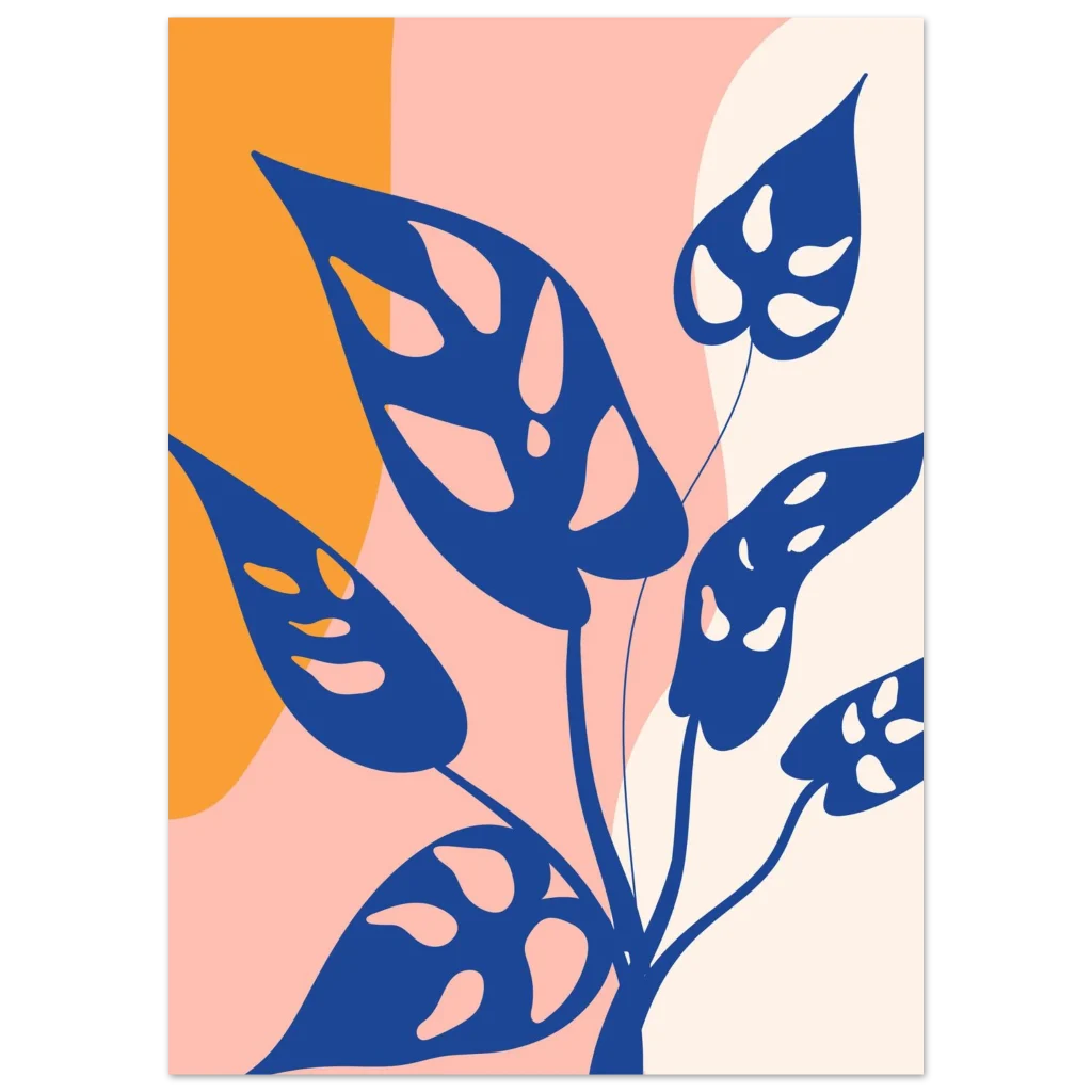 Abstract Monstera Leaf Art Print – Classic Semi-Glossy Paper Poster in Vibrant Blues & Warm Tones