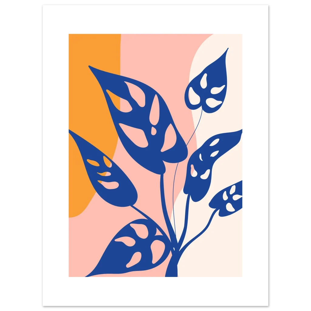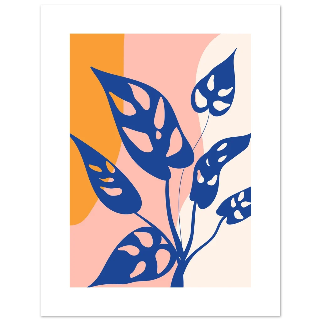 Bring a touch of modern botanical charm to your space with this stunning Abstract Monstera Leaf art print. Featuring a captivating interplay of rich blue foliage against warm, inviting peach and orange backdrops, this design adds a contemporary yet serene vibe to any room. It’s an instant uplift, perfect for creating a focal point or complementing your existing decor.