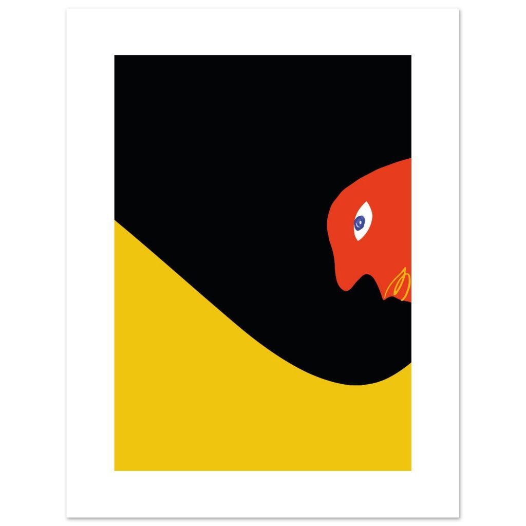 Abstract ‘Oceanic Gaze’ Poster: Bold Red, Yellow & Black Art Print for Modern Spaces
