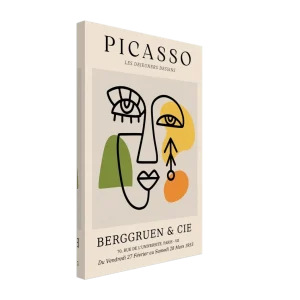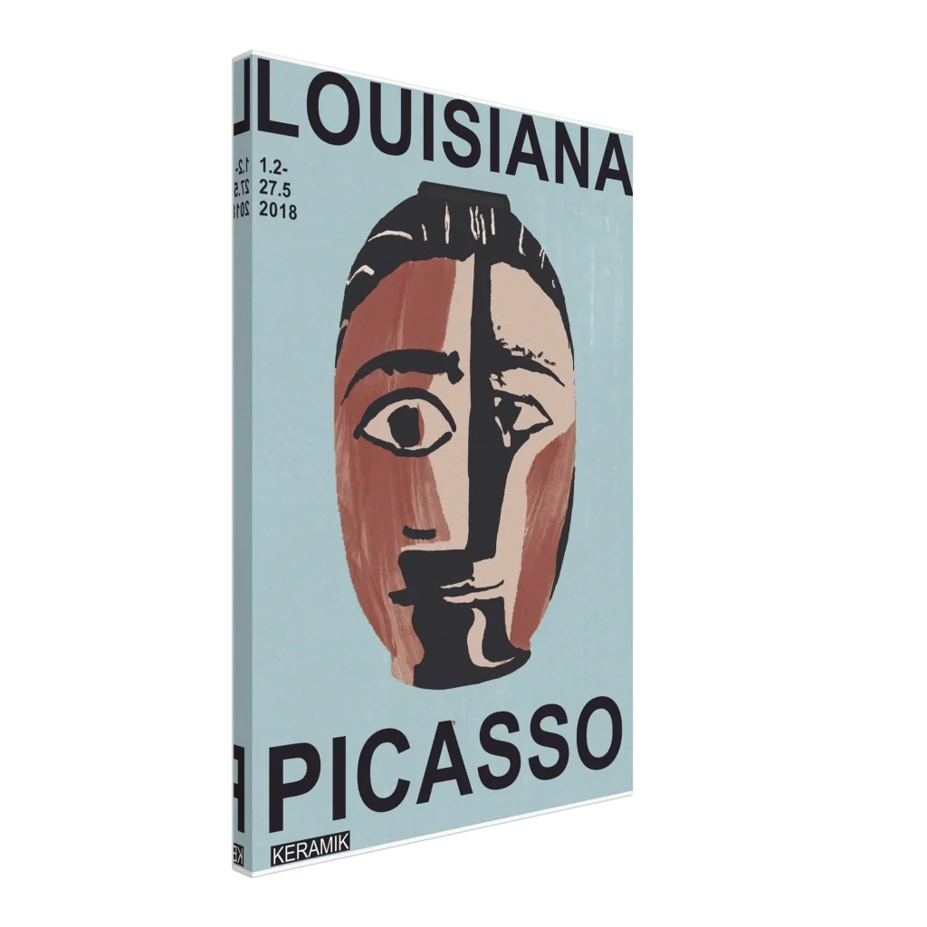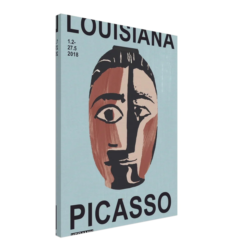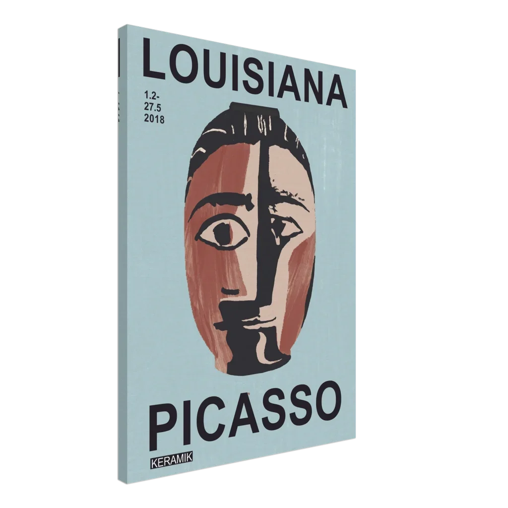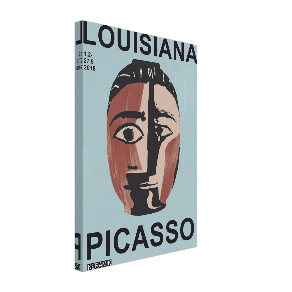 Immerse your space in the compelling allure of abstract art with our Picasso-inspired poster. Drawing from the raw expressiveness of ceramic works, this canvas print captures a modern, earthy aesthetic with its split-face design in rich terracotta, cream, and deep charcoal on a serene blue-green background. The unique visual texture of the canvas enhances the image’s natural look and feel, creating a truly immersive art experience that sparks conversation and contemplation.