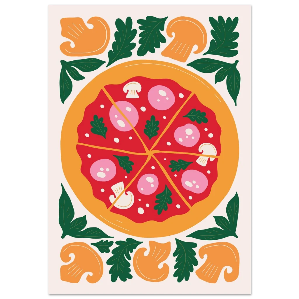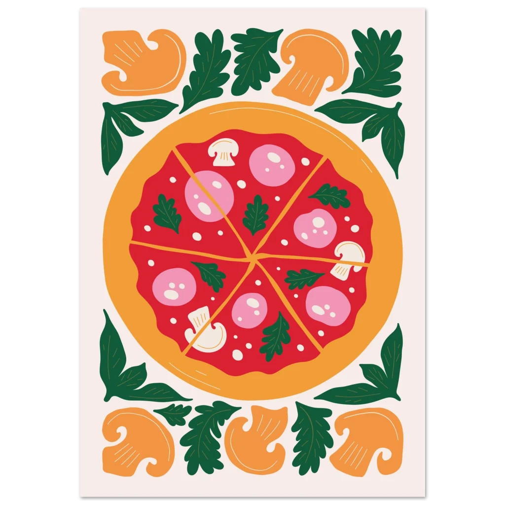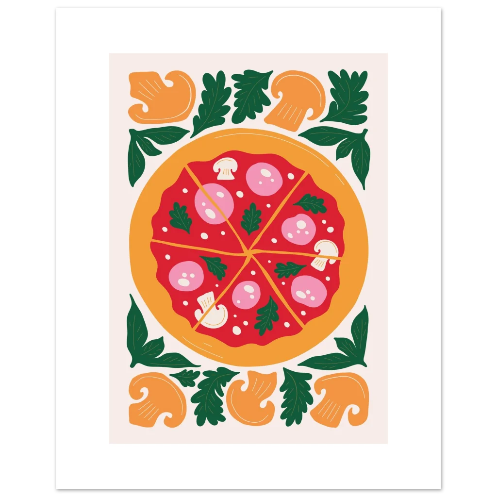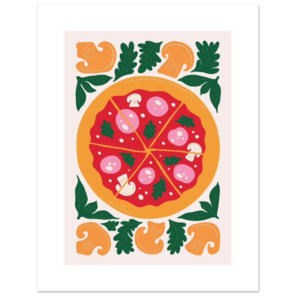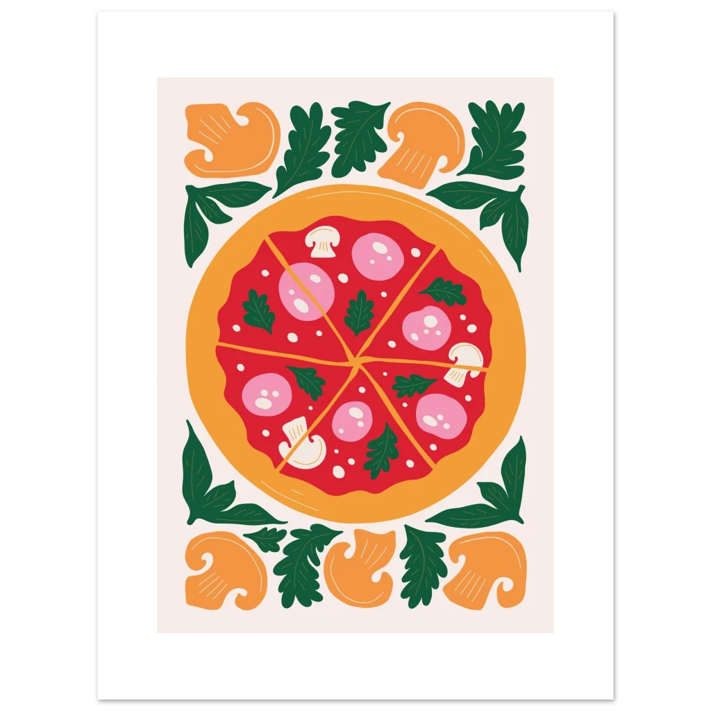 Infuse your space with a slice of joy with our “Abstract Pizza Delight” poster. This vibrant retro-inspired artwork brings a playful, modern touch to any kitchen, dining room, or casual living area. Featuring bold, stylized pizza toppings in a cheerful palette of reds, pinks, oranges, and greens, it’s a celebration of good food and great design that promises to make you smile.