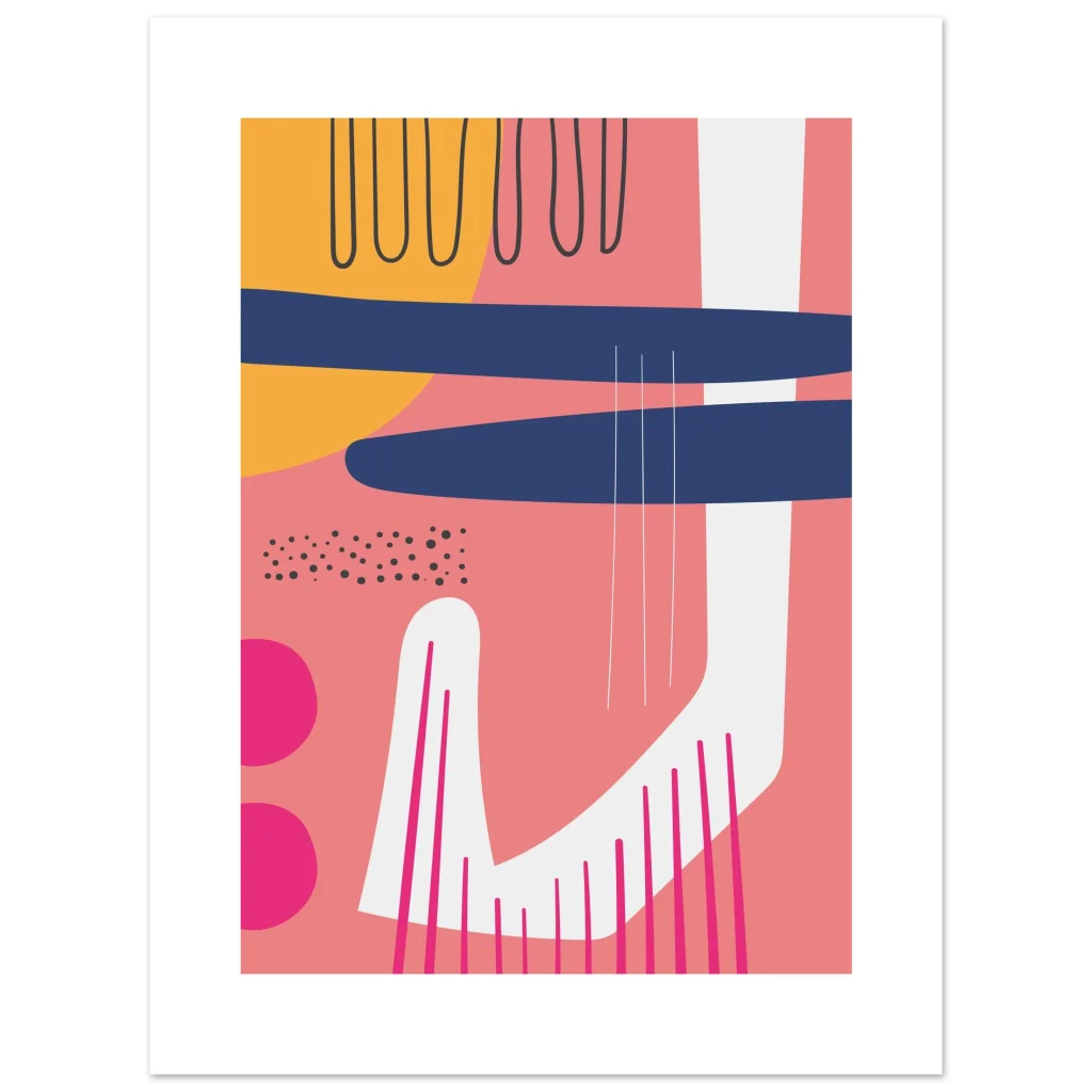 Infuse your space with a burst of contemporary energy! This captivating abstract art print, featuring playful shapes and a lively palette of coral, mustard, and deep navy, is designed to spark joy and conversation. Its modern aesthetic adds a sophisticated yet whimsical touch to any room, perfect for those who appreciate art that stands out.
