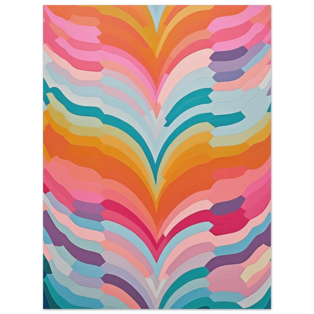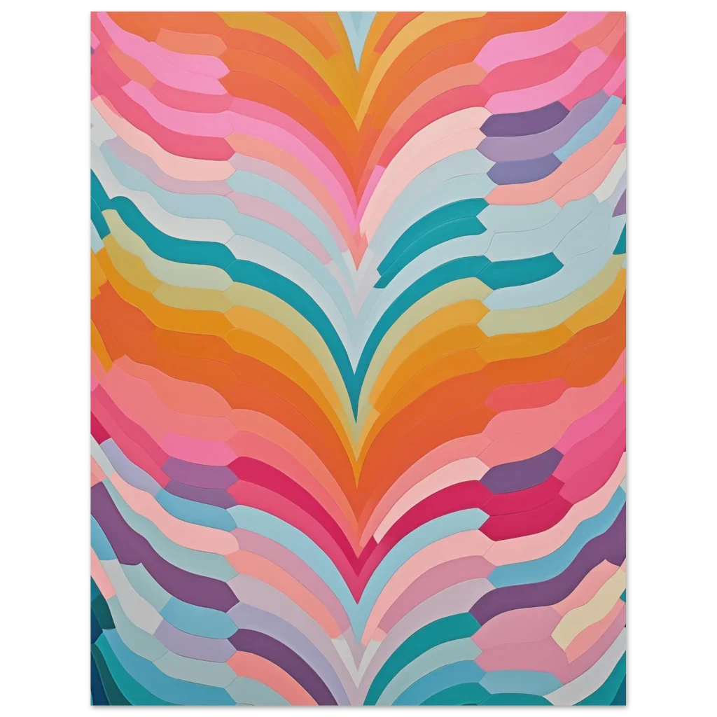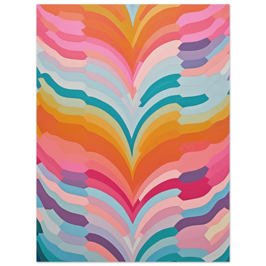 Infuse your living space with a burst of captivating color and playful movement with our Abstract Swirls poster. This vibrant design, reminiscent of flowing ribbons in a delightful candy-colored palette, creates an uplifting and modern focal point for any room. The blend of soft pinks, energetic oranges, cool teals, and gentle lavenders provides a dynamic yet harmonious aesthetic, perfect for art lovers seeking a contemporary touch.