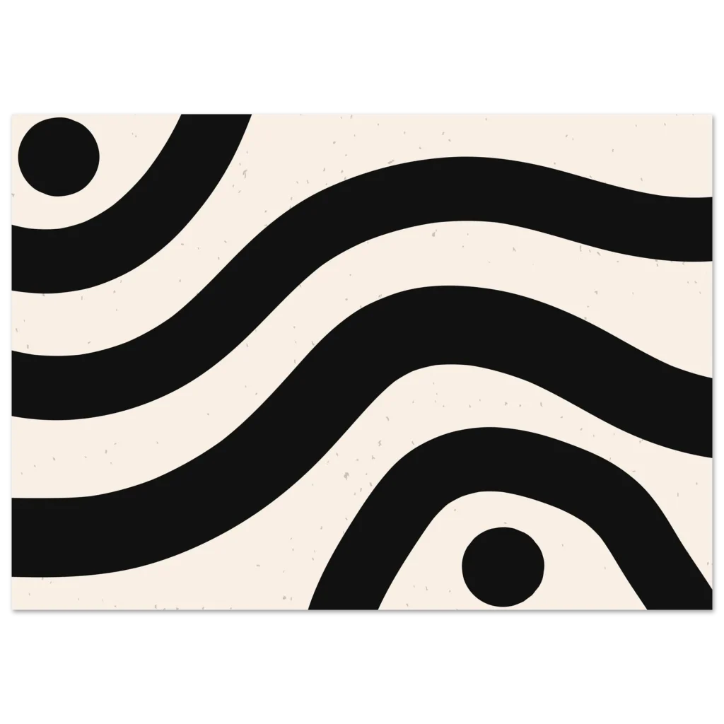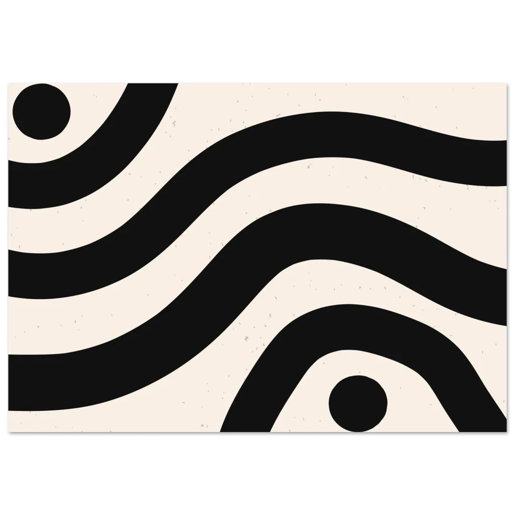Infuse your space with sophisticated simplicity. This striking poster features a dynamic abstract design of flowing black waves and circular elements against a calming, speckled beige background, offering a minimalist yet impactful statement piece. Its elegant monochrome palette and organic shapes bring a touch of modern artistry to any room, perfect for creating a focal point or complementing contemporary decor.