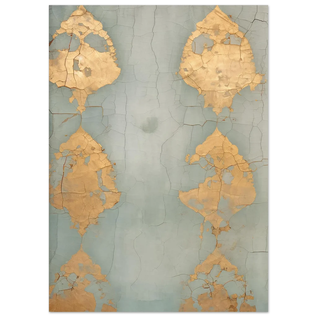 Aged Elegance: Rustic Gold Leaf & Cracked Teal Texture Premium Matte Paper Poster