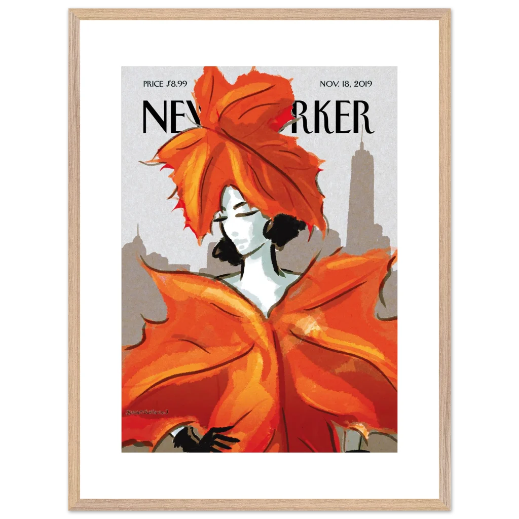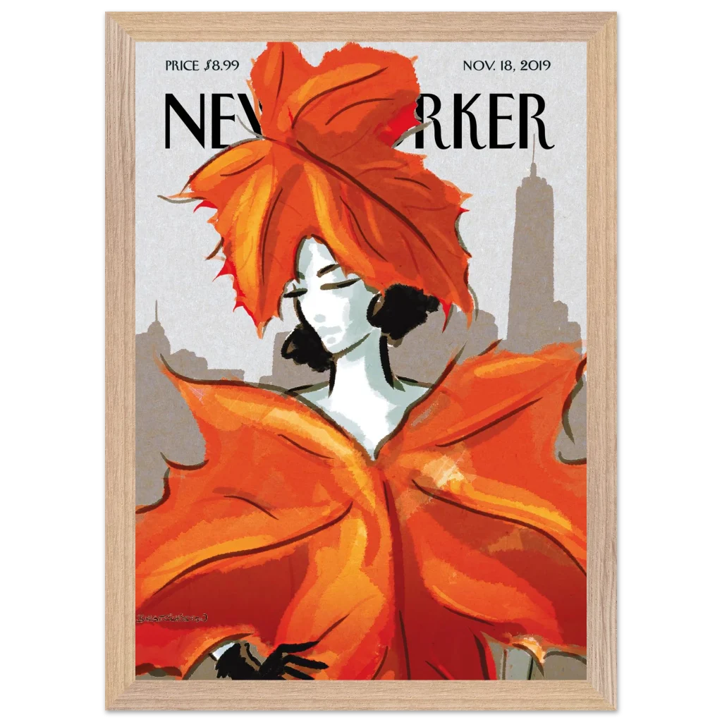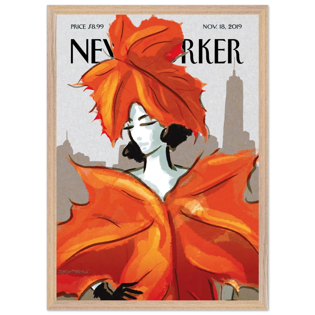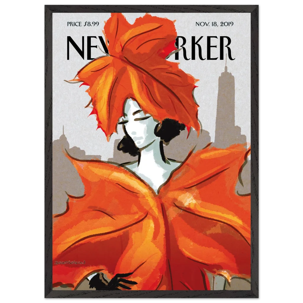 Autumn Muse New Yorker Cover – Abstract Figure Autumnal Wall Art Premium Wooden Framed Poster with Matte Finish Paper