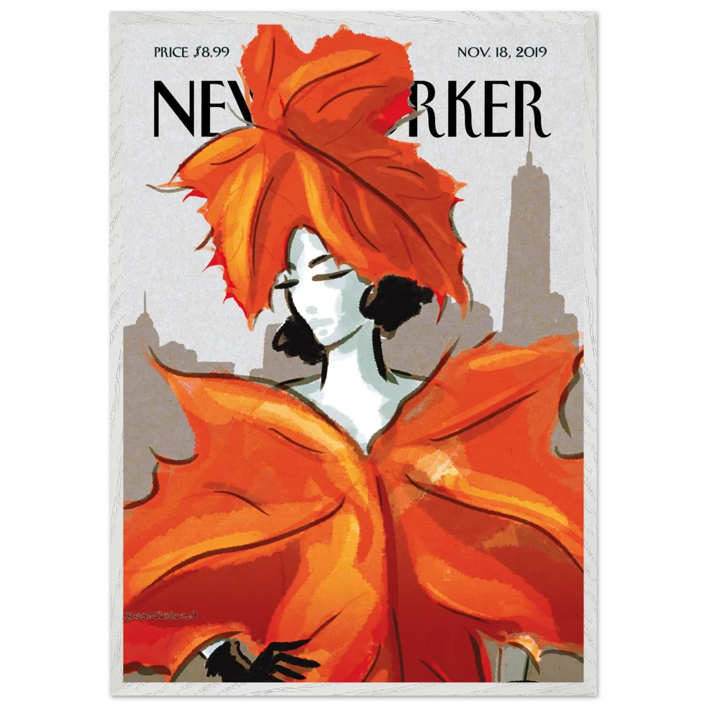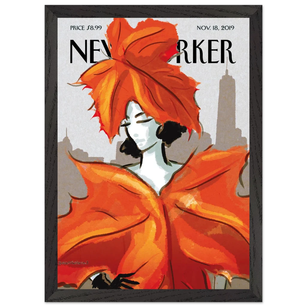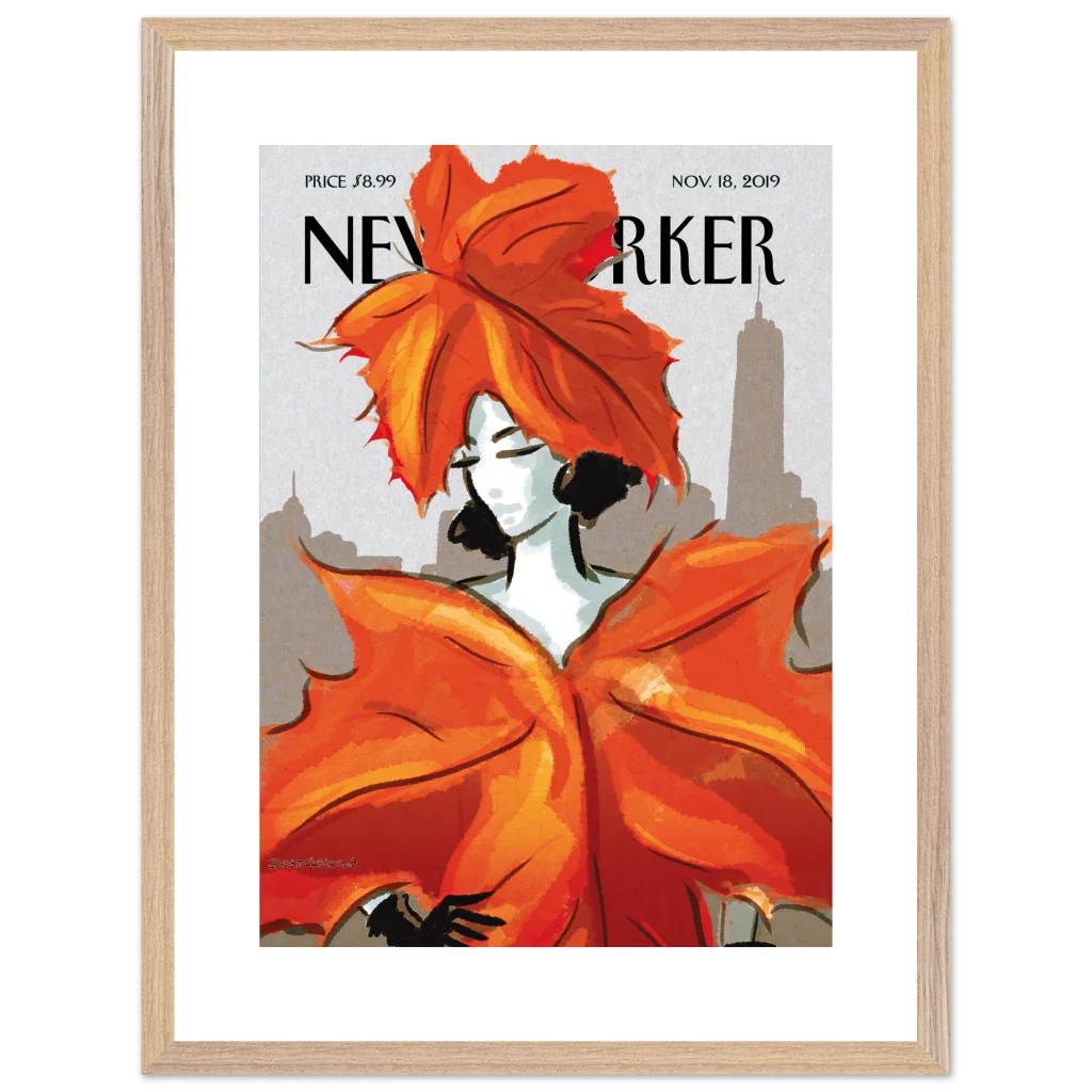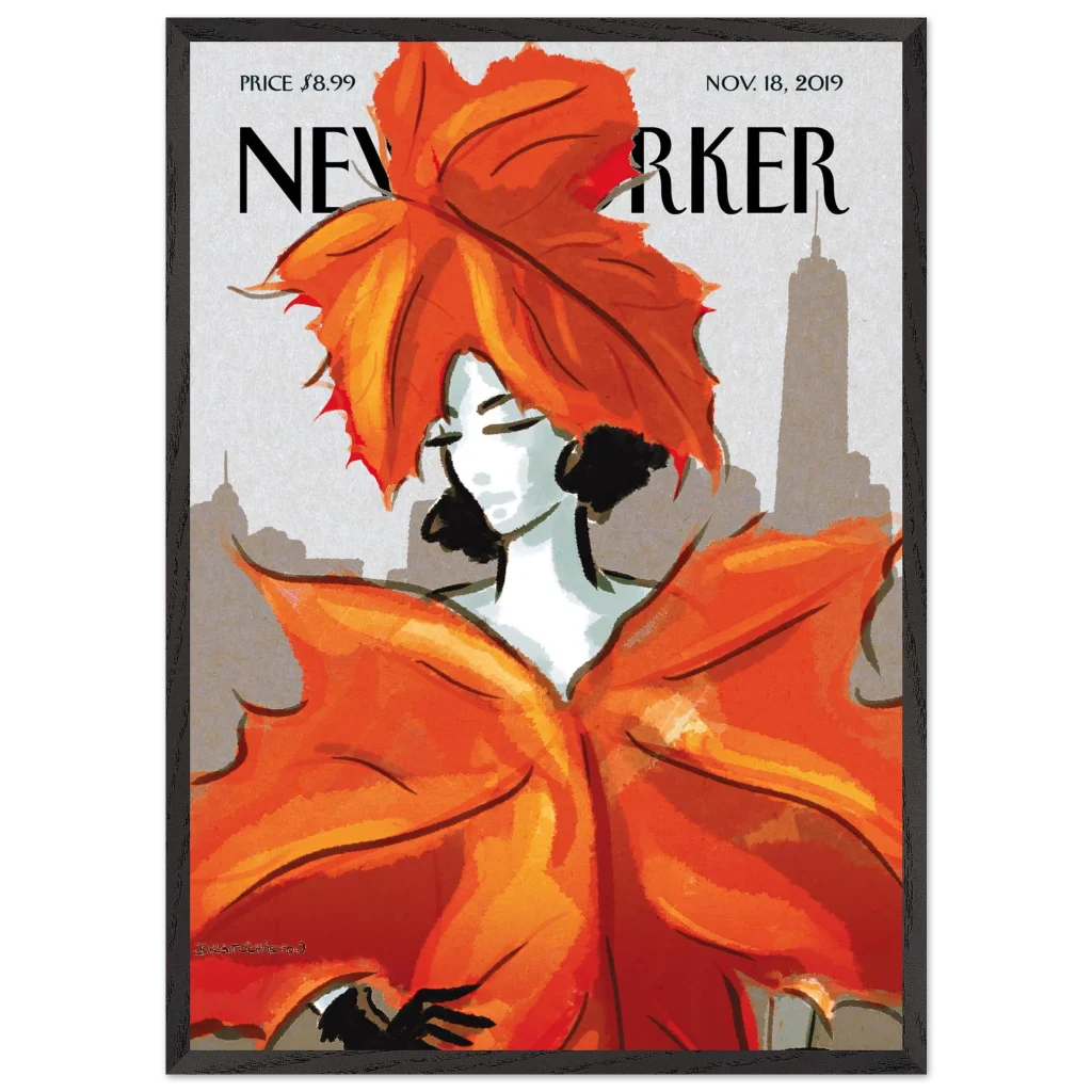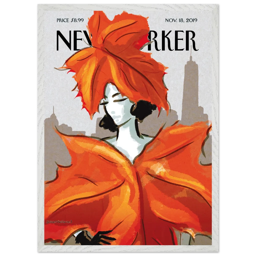 Autumn Muse New Yorker Cover – Abstract Figure Autumnal Wall Art Premium Wooden Framed Poster with Matte Finish Paper