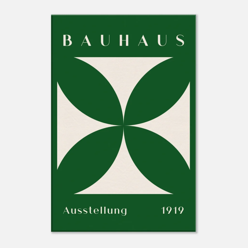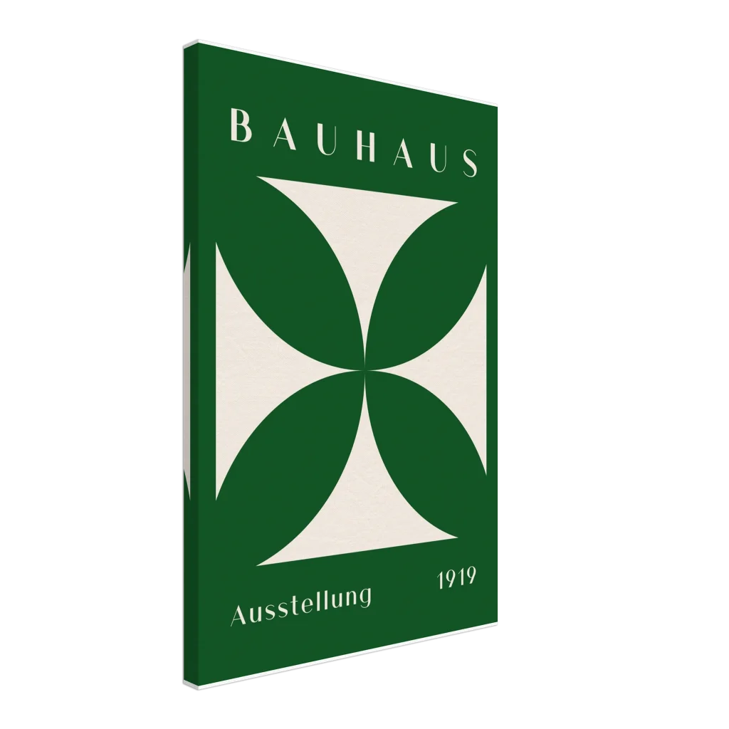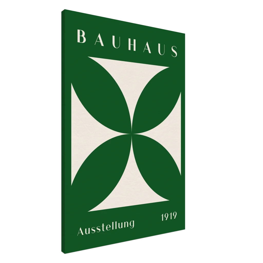 Immerse your space in the enduring legacy of the Bauhaus movement with this striking canvas print. Featuring a captivating geometric design in a rich forest green and elegant cream, it celebrates the iconic “Bauhaus Ausstellung 1919” with a modern flair. The canvas texture elevates the image’s natural look and feel, creating a truly immersive art experience for any admirer of art history and minimalist design.