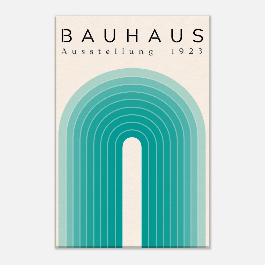 Immerse your space in the timeless elegance of the Bauhaus movement with our striking “Bauhaus Exhibition 1923 Arch Poster.” This canvas print captures the iconic minimalist aesthetic and vibrant teal gradients that defined an era, bringing a sophisticated touch of mid-century modern design to your home or office. The subtle canvas texture elevates the visual depth, creating an art experience that’s both classic and contemporary.