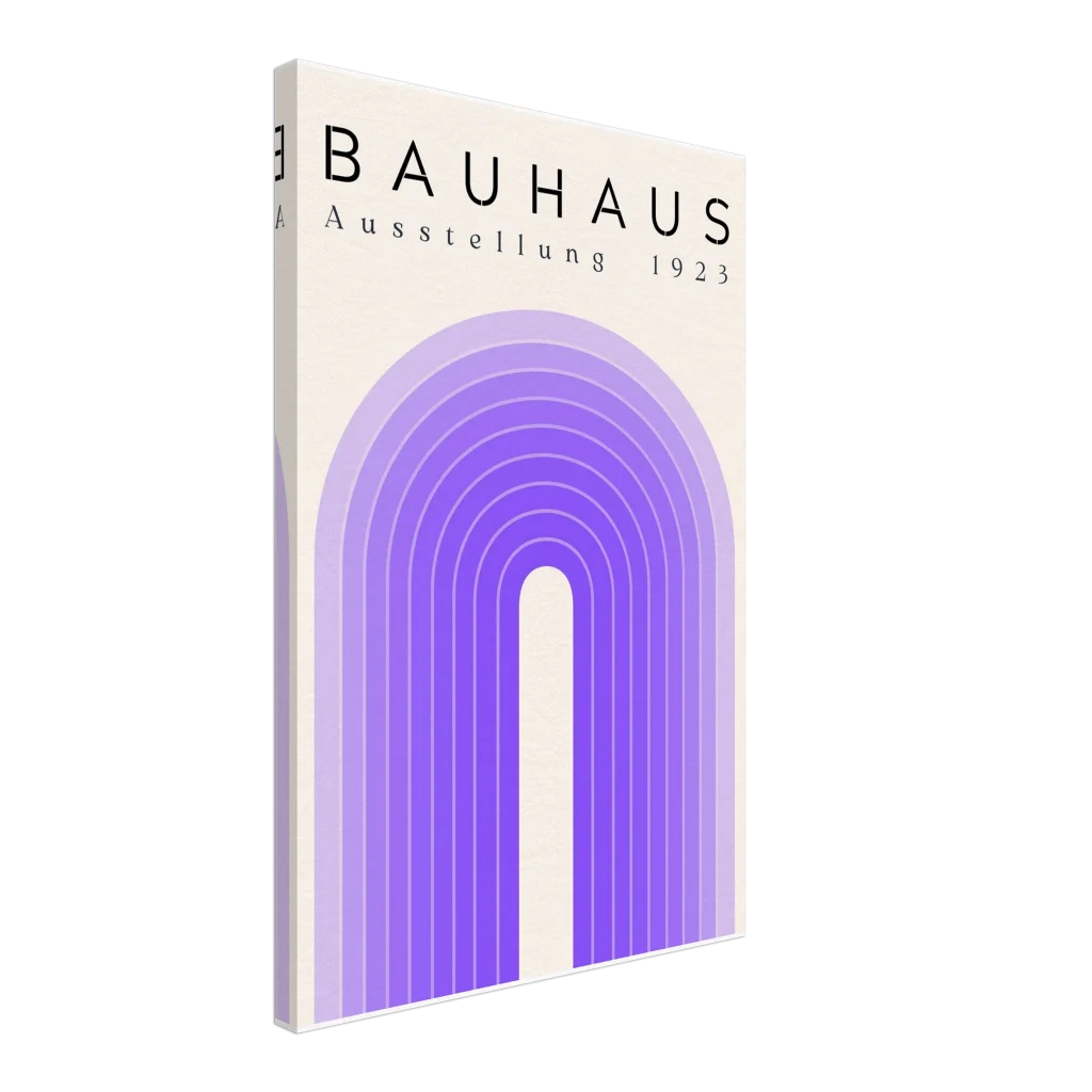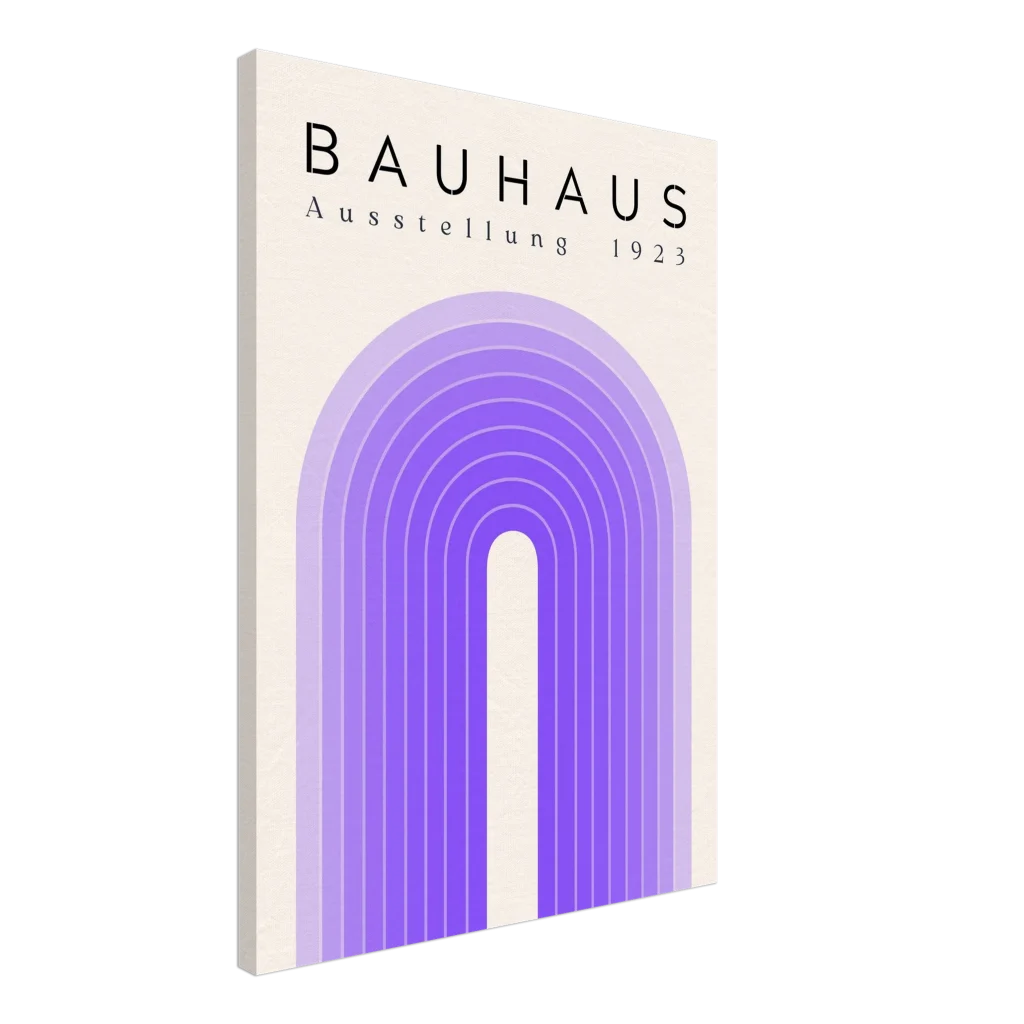Immerse yourself in the captivating elegance of the Bauhaus era with our exquisite canvas print. This piece, inspired by the iconic 1923 Bauhaus Exhibition, features a striking violet arch motif that adds a touch of sophisticated abstraction to any room. The canvas texture elevates the image’s natural look and feel, creating a truly immersive art experience.