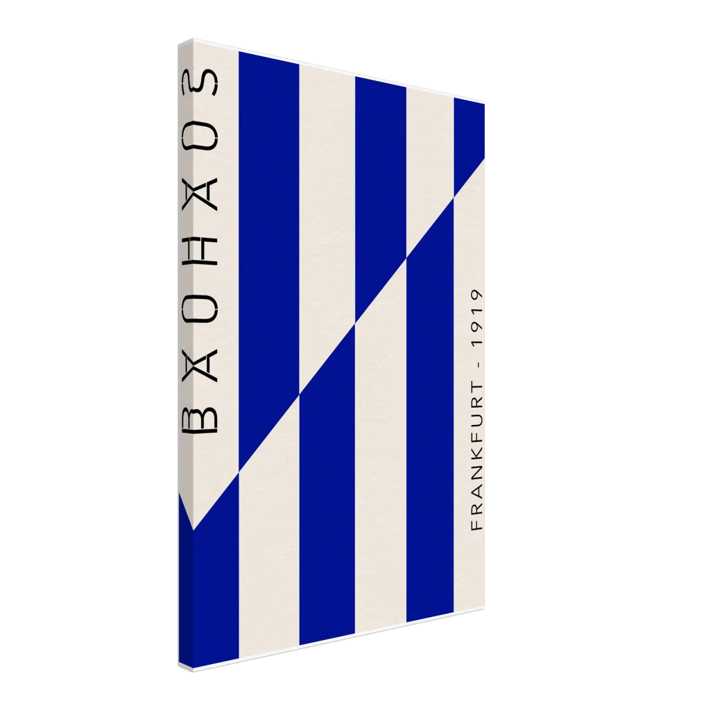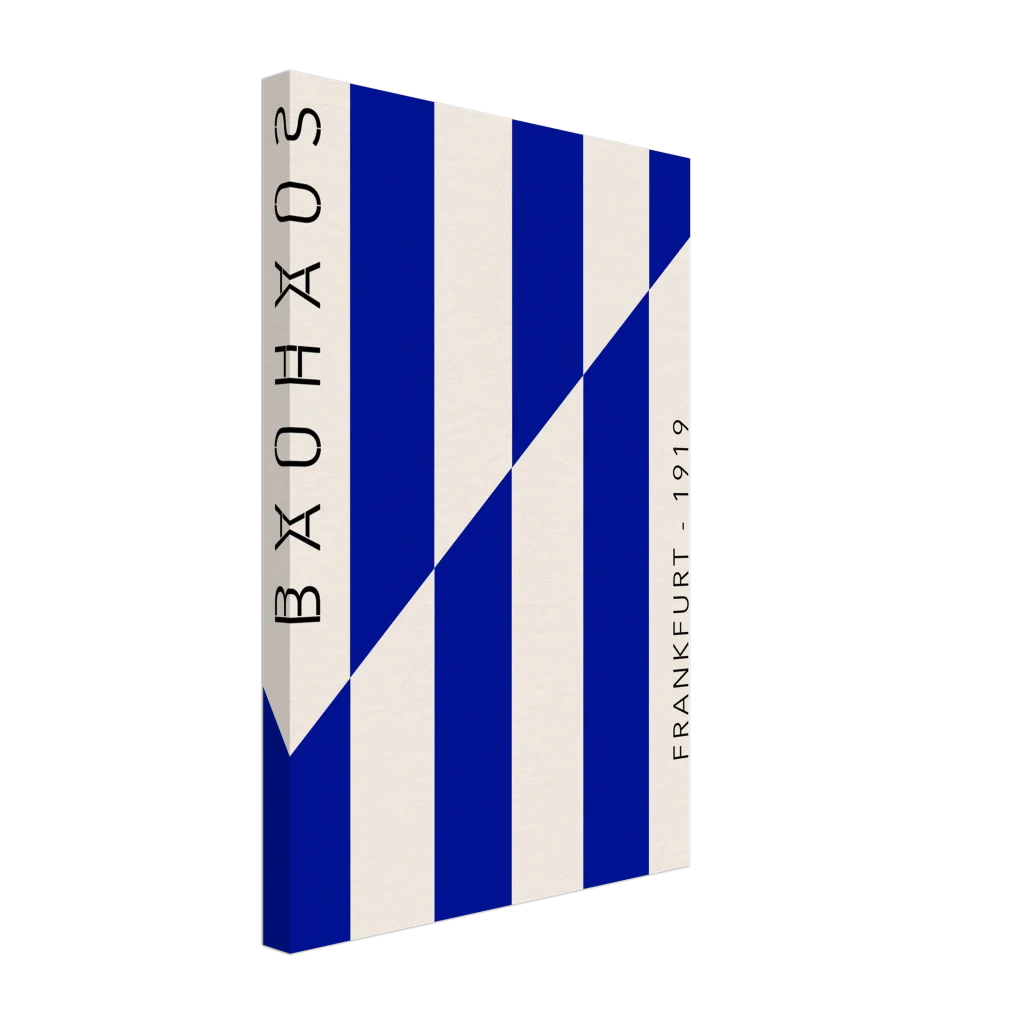 Elevate your space with a touch of iconic design. This Bauhaus-inspired canvas print, featuring striking geometric lines and a sophisticated blue and cream palette, brings modern minimalism and timeless elegance to any room. It’s more than just art; it’s a statement piece that transforms your home into a gallery.