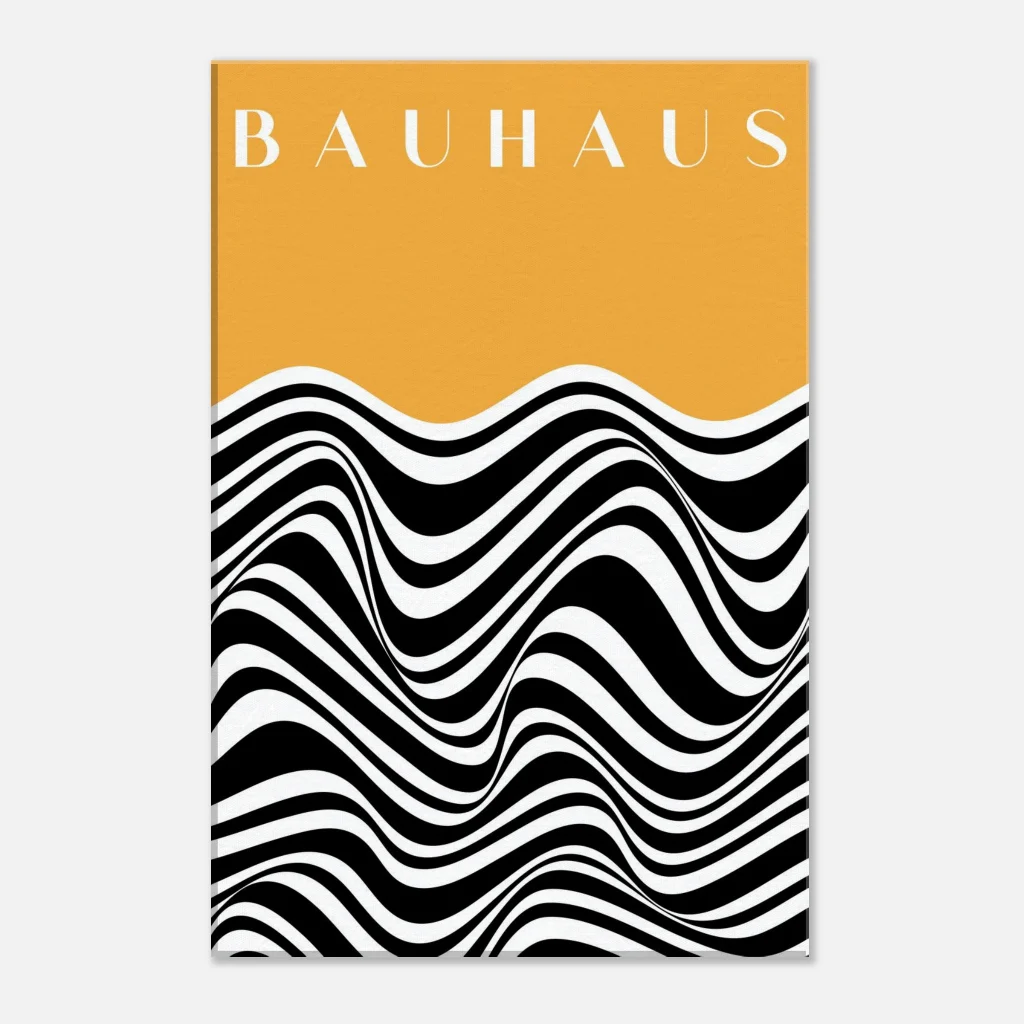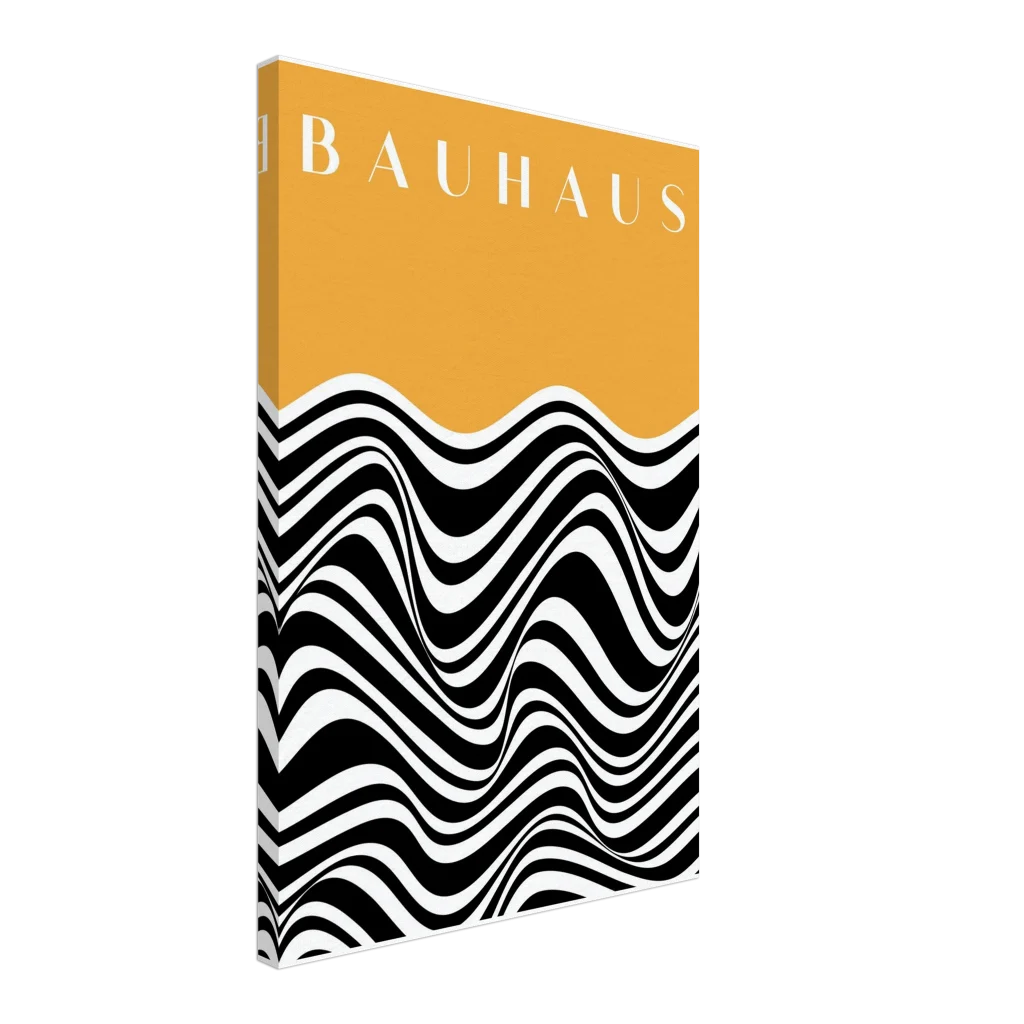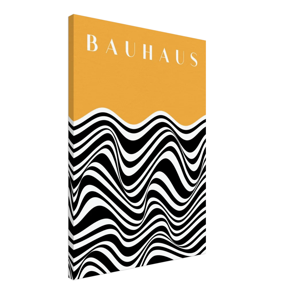 Immerse yourself in the dynamic world of Op Art with our Bauhaus-inspired canvas print. Featuring a mesmerizing pattern of black and white waves set against a sophisticated golden hue, this piece brings a playful yet elegant illusion of movement to any space. The canvas texture enhances the image’s natural look and feel, creating a truly immersive art experience that will captivate onlookers and spark conversation.