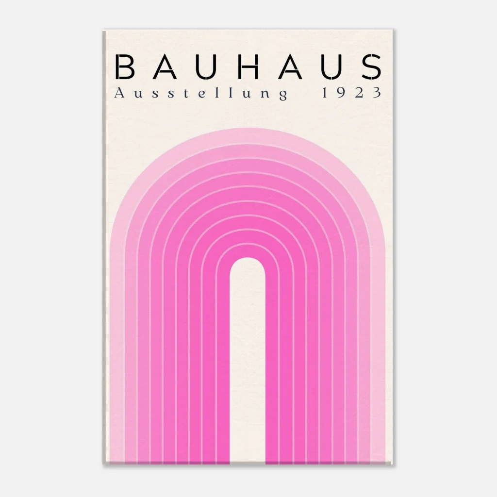 Bring a touch of vibrant minimalism and historical design to your space with our Bauhaus Pink Arches poster. Inspired by the iconic 1923 Bauhaus Ausstellung, this canvas print features a playful gradient of pink arches that adds depth and a contemporary feel to any room. Its soft yet striking aesthetic is perfect for art lovers looking to infuse their home or office with a splash of artistic heritage and modern charm.