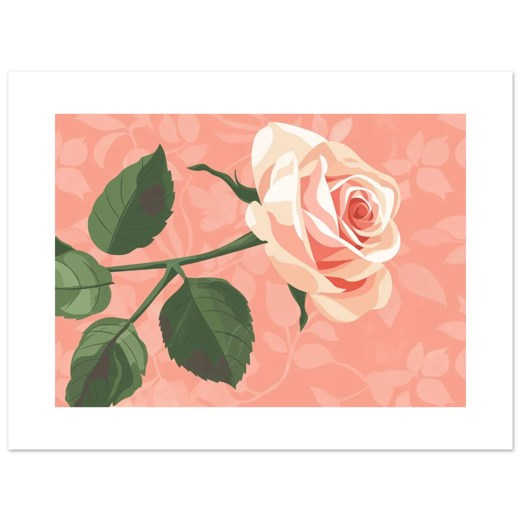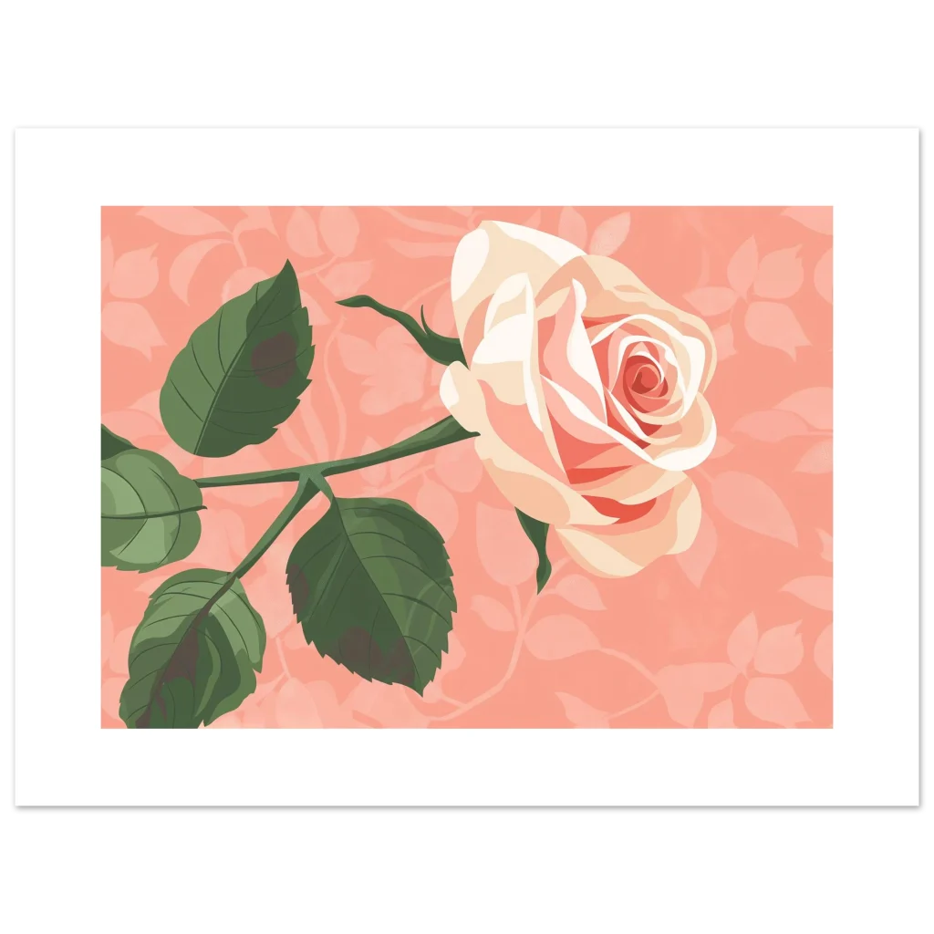 Blush Pink Rose Blossom Art Print – Elegant Landscape Semi-Glossy Paper Poster in Your Choice of Size