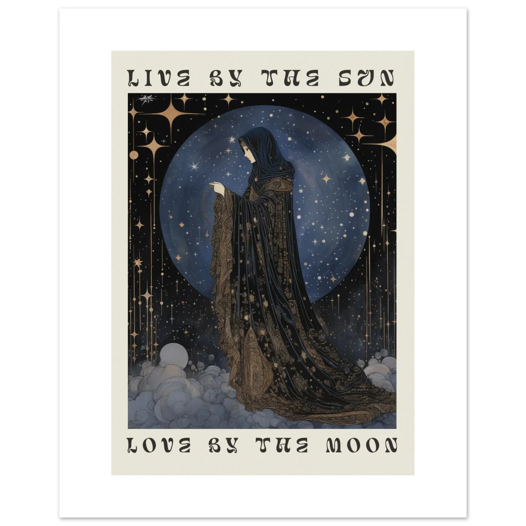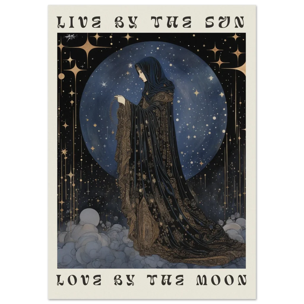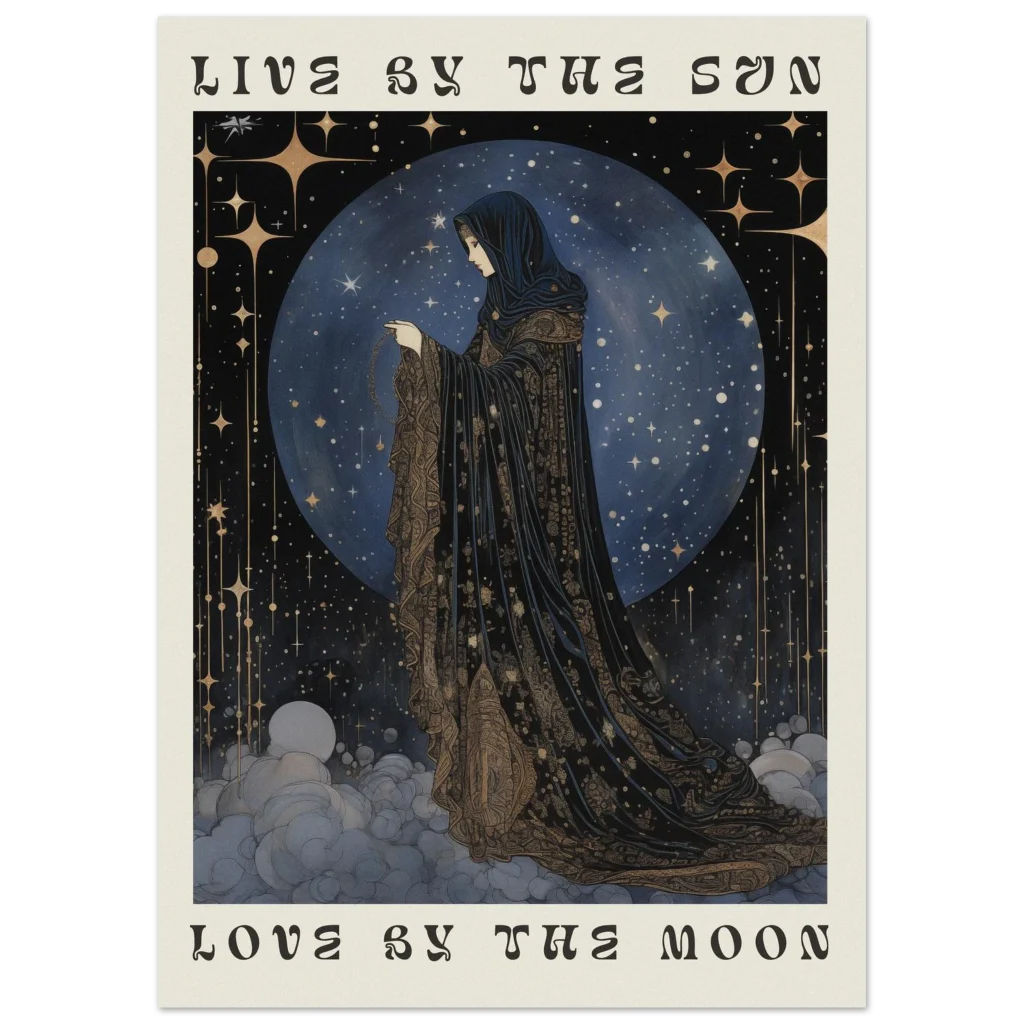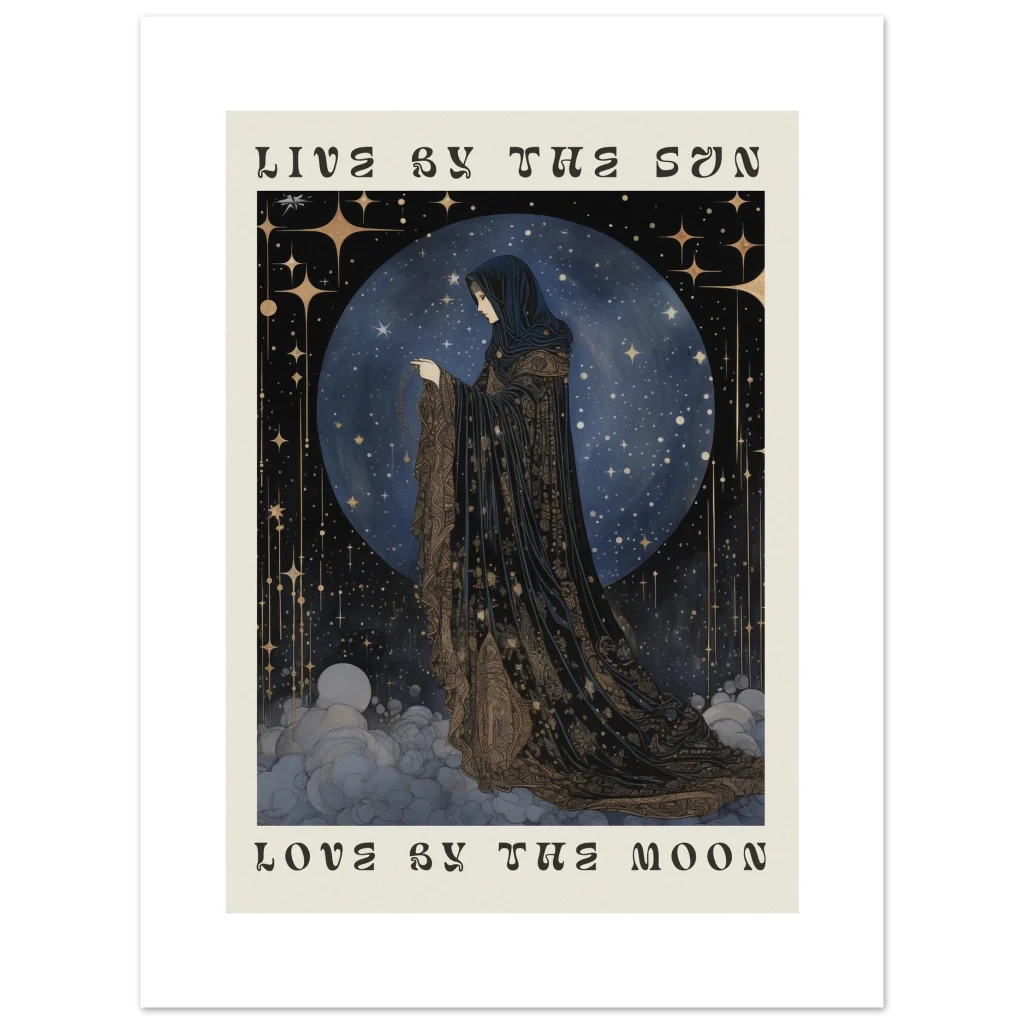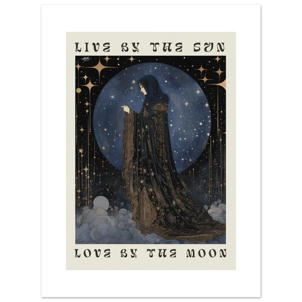 Celestial Sorceress Art Nouveau Poster: “Live By The Sun, Love By The Moon” Premium Matte Paper Print