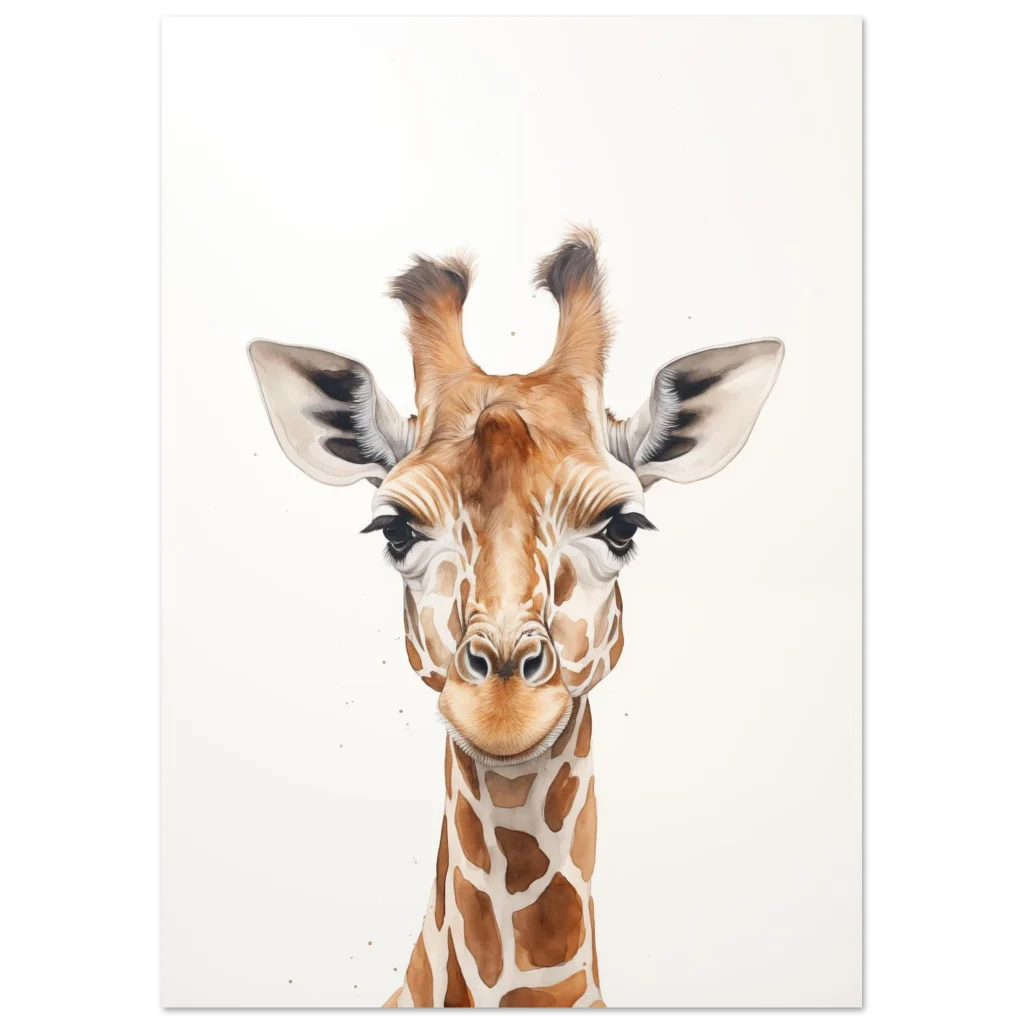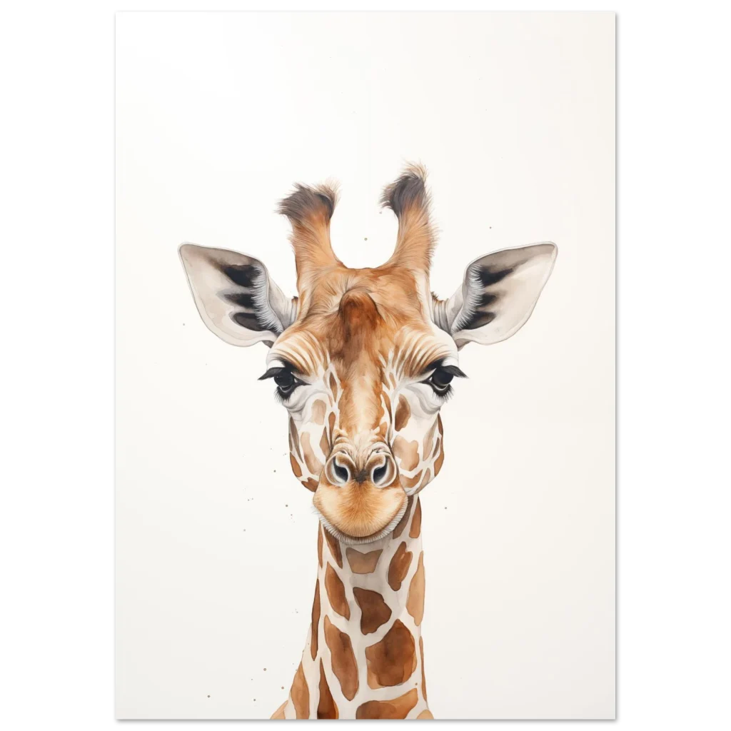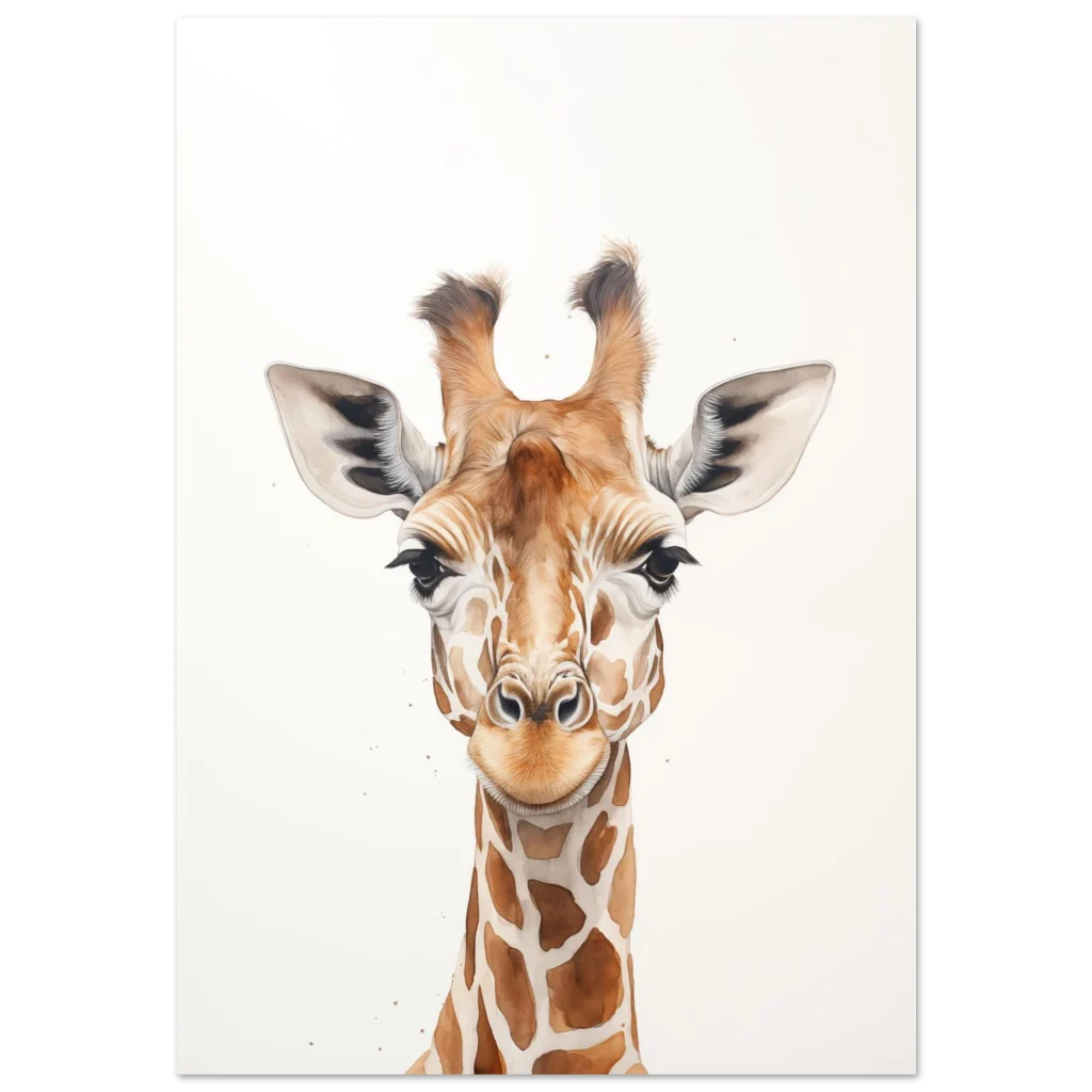 Charming Watercolor Giraffe Portrait – Classic Semi-Glossy Paper Poster in Your Choice of Size