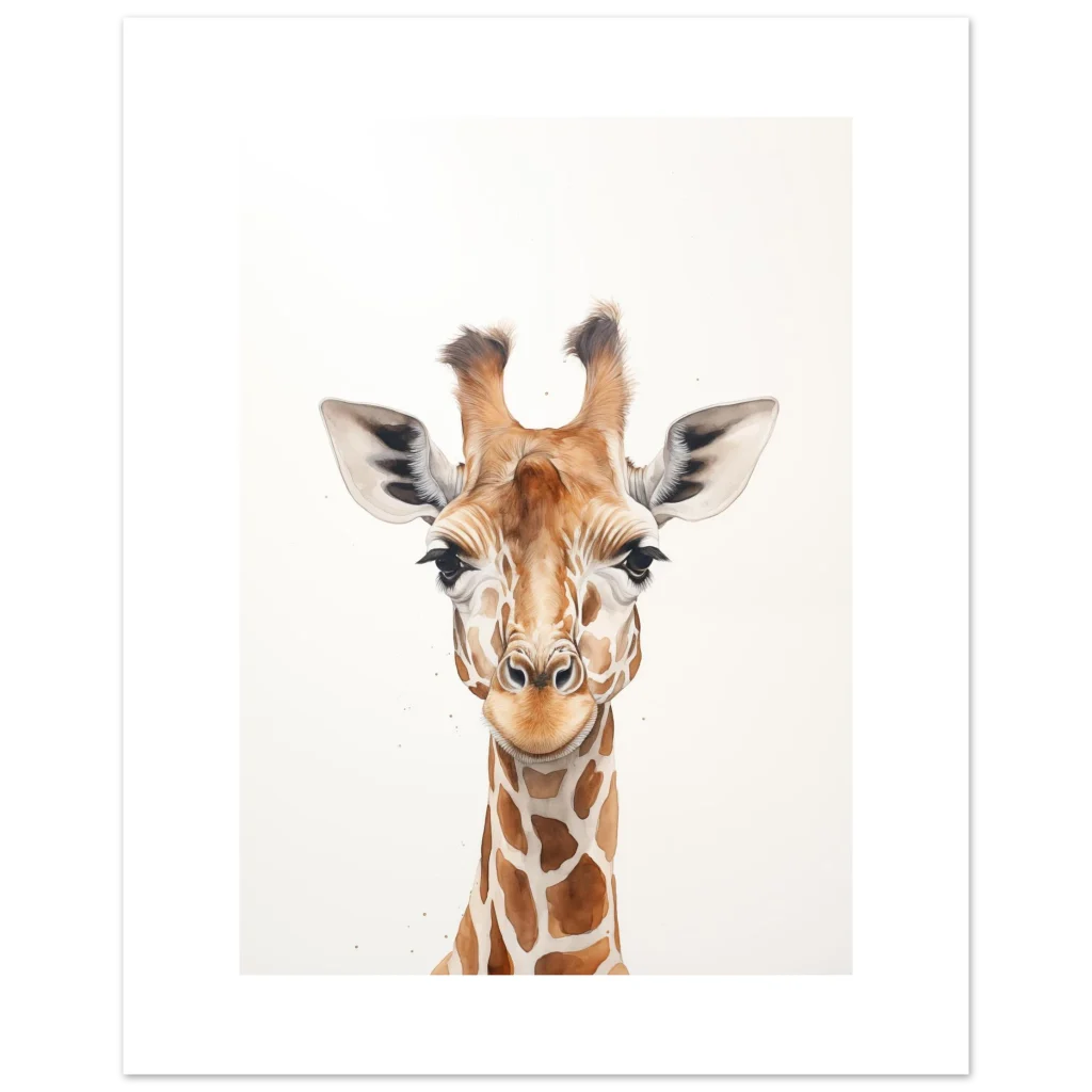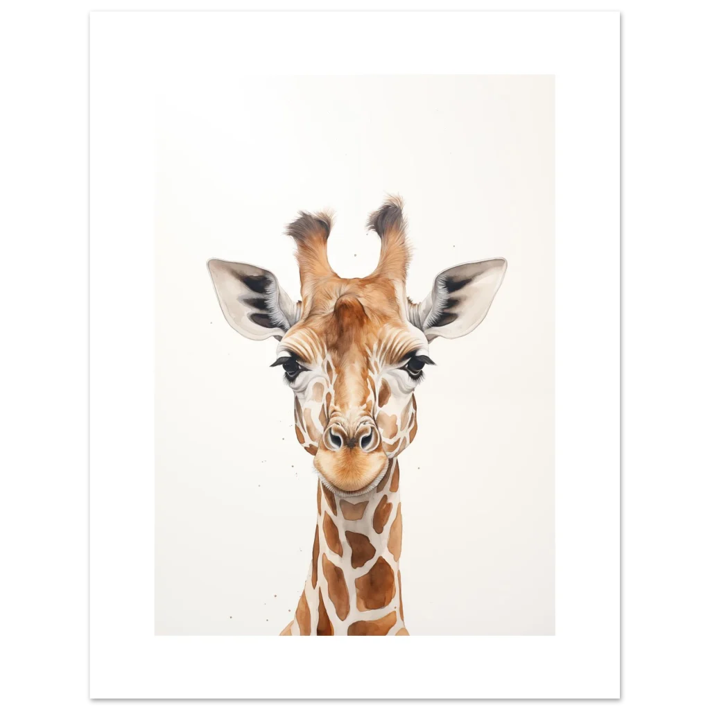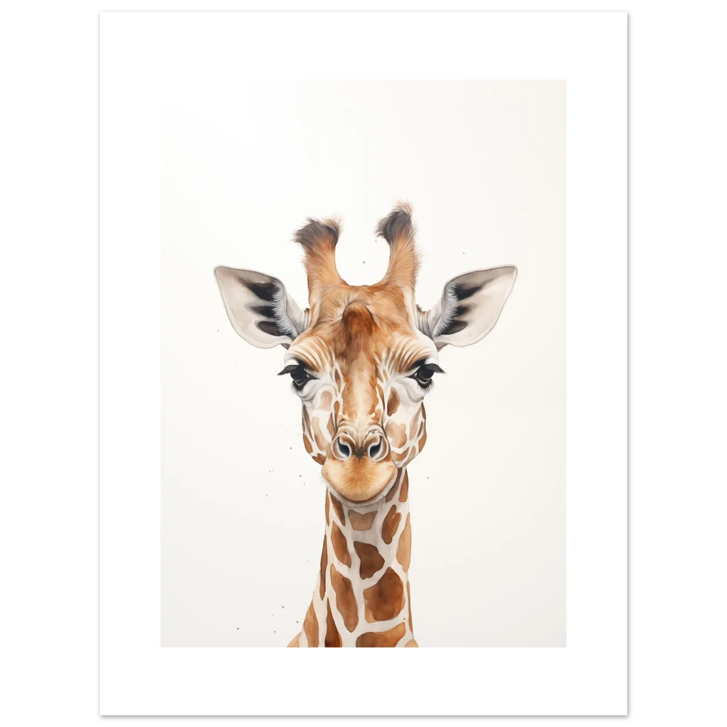 Charming Watercolor Giraffe Portrait – Classic Semi-Glossy Paper Poster in Your Choice of Size