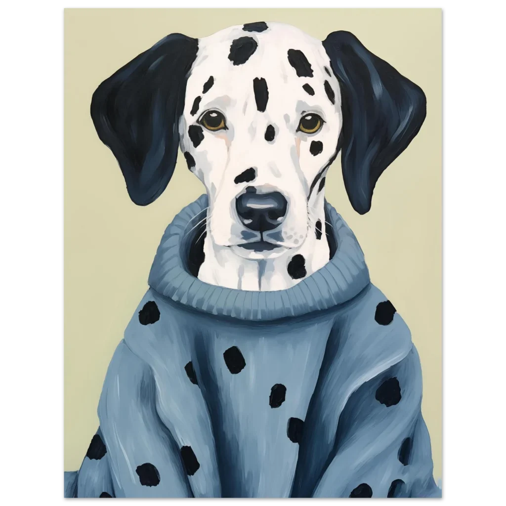 Chic Dalmatian in Sweater Art Print – Premium Matte Paper Poster