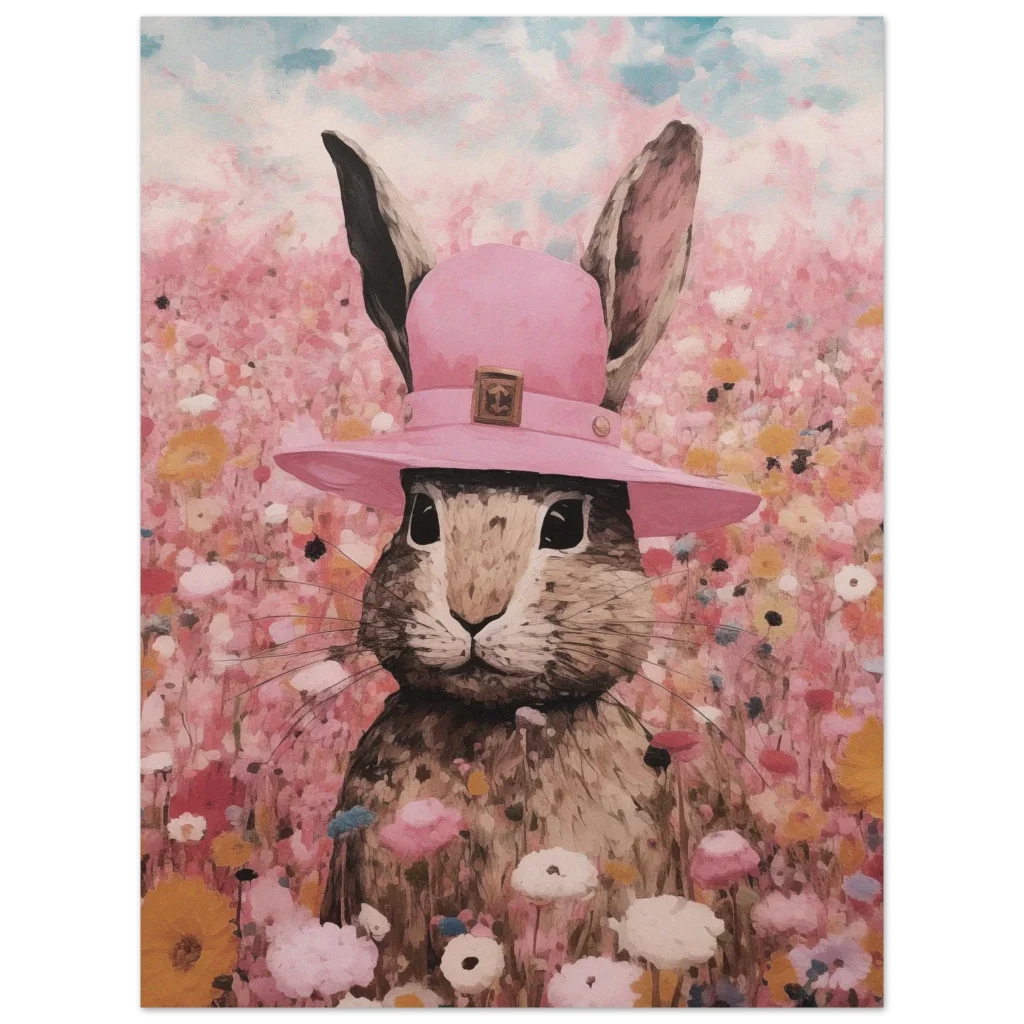 Chic Woodland Rabbit in Pink Hat – 40 x 50 Premium Matte Paper Poster
