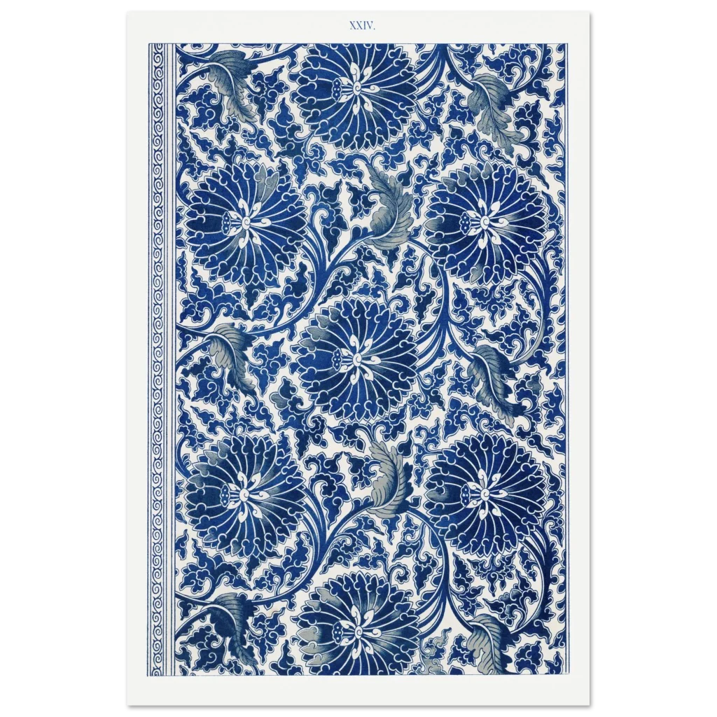 Chinoiserie Floral Bloom Premium Matte Paper Poster – Blue & White Botanical Art Print in Various Sizes