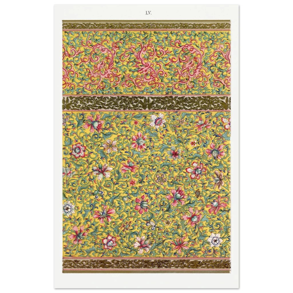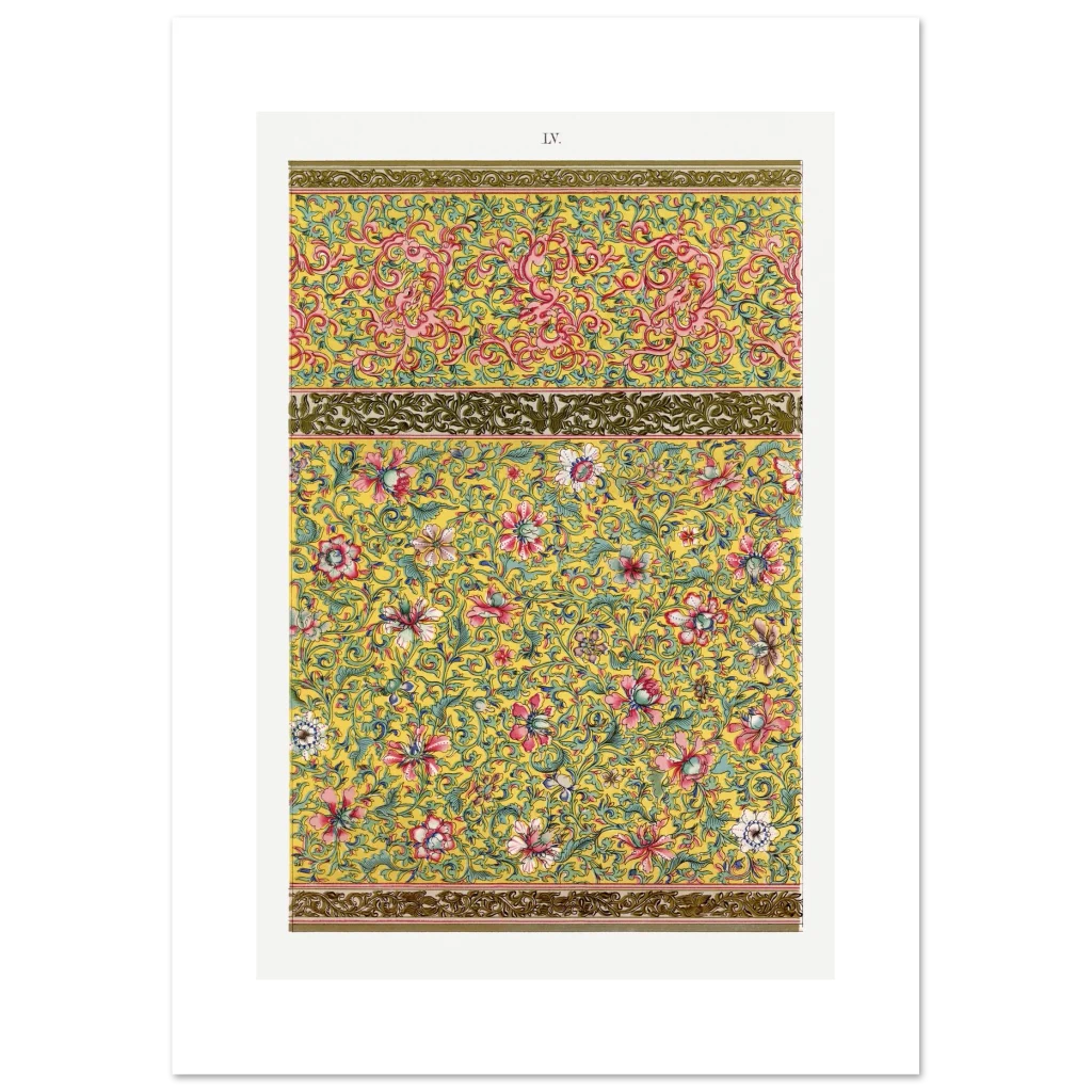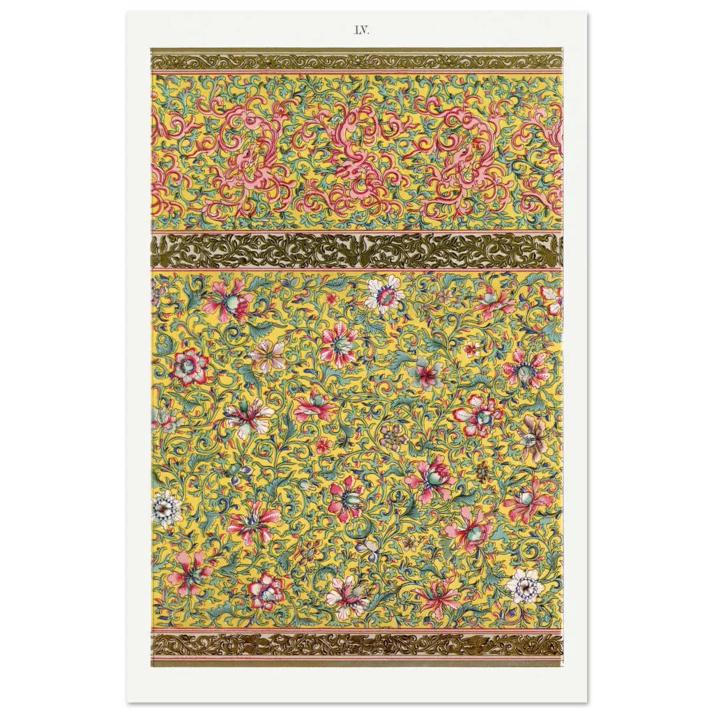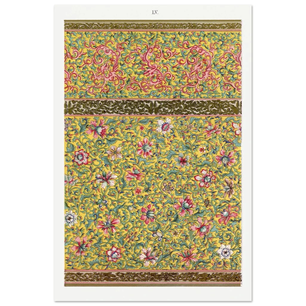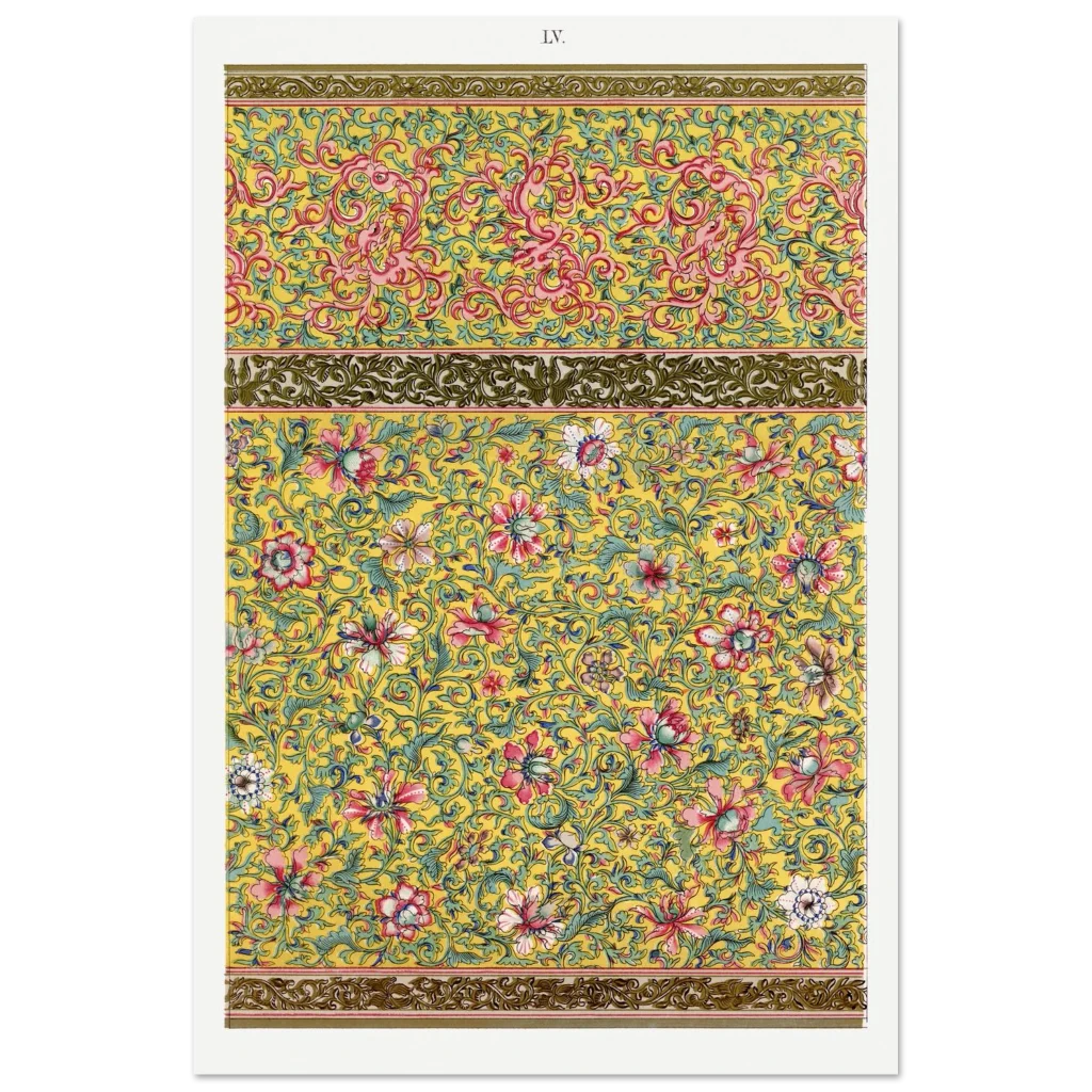 Bring an opulent touch of timeless elegance to your space with our Chinoiserie Floral & Scroll Poster. Inspired by vintage Eastern artistry, this design bursts with a vibrant yellow background, intricate pink and red florals, and delicate teal green foliage—a symphony of color and detail that instantly elevates any room. It’s more than just a poster; it’s a conversation starter, a focal point, and a testament to exquisite taste.