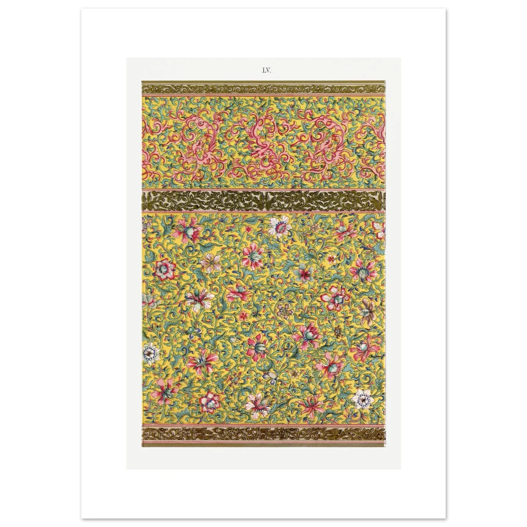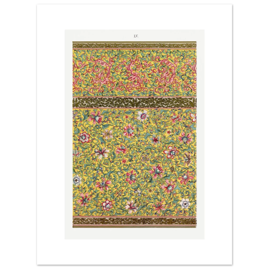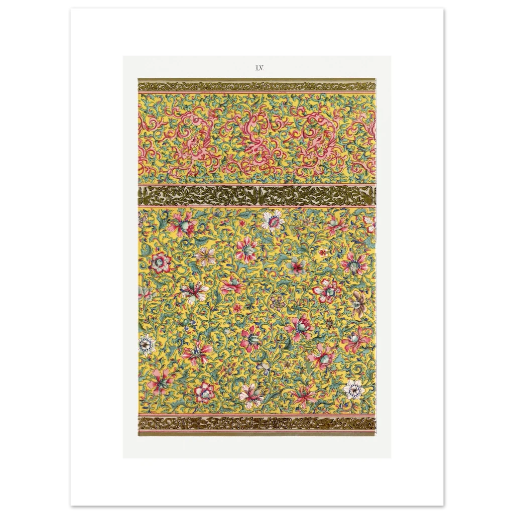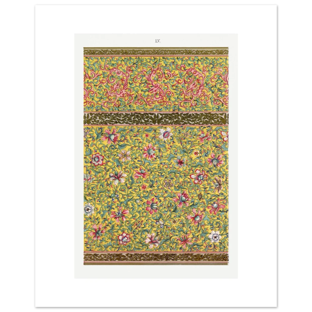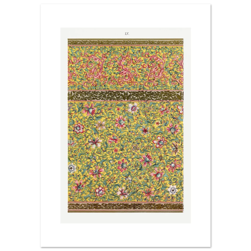 Bring an opulent touch of timeless elegance to your space with our Chinoiserie Floral & Scroll Poster. Inspired by vintage Eastern artistry, this design bursts with a vibrant yellow background, intricate pink and red florals, and delicate teal green foliage—a symphony of color and detail that instantly elevates any room. It’s more than just a poster; it’s a conversation starter, a focal point, and a testament to exquisite taste.