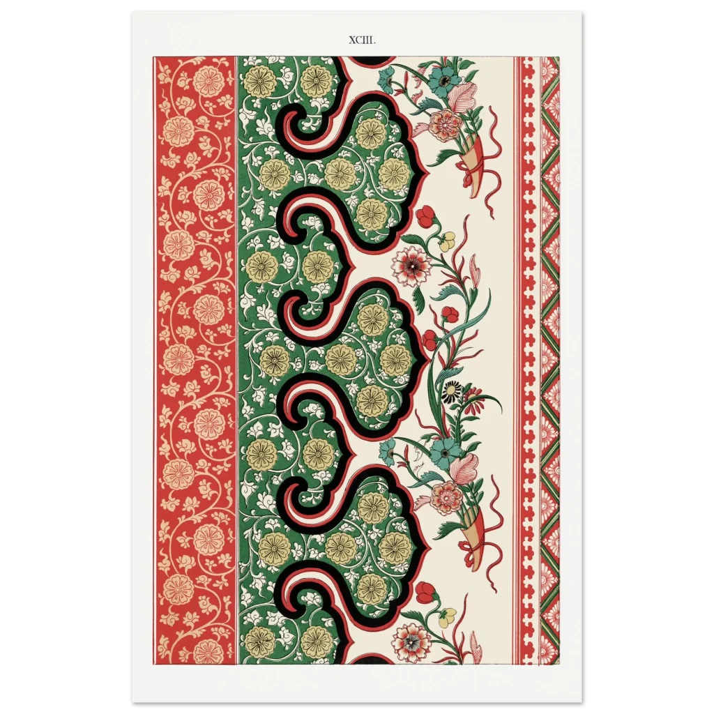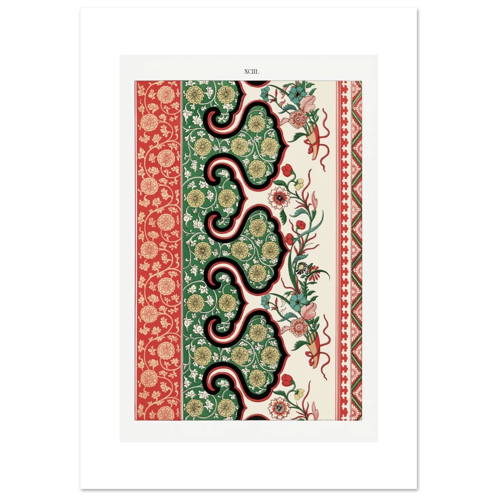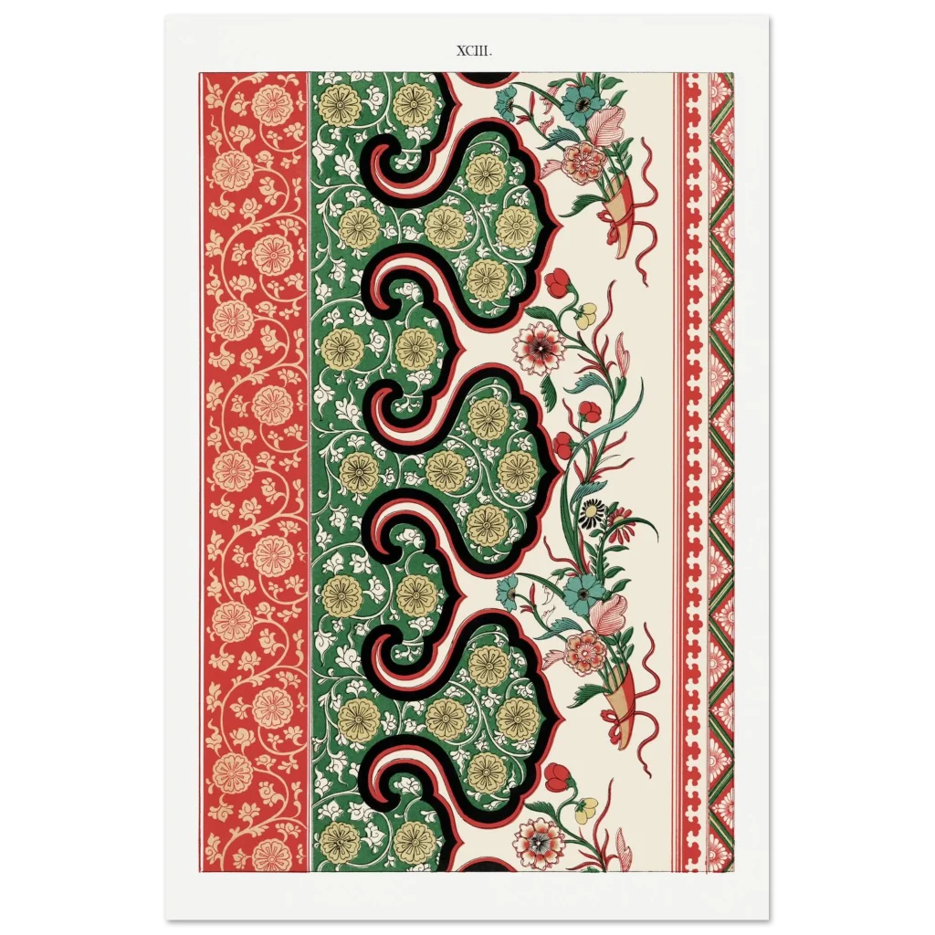 Bring timeless elegance and vibrant charm into your space with our Chinoiserie Floral Tapestry Art Print. Inspired by classic East Asian decorative arts, this poster features intricate patterns in a striking palette of rich reds, deep greens, and warm gold. The harmonious blend of flourishing florals and ornamental borders creates a sophisticated focal point, perfect for adding a touch of exotic luxury to any room.