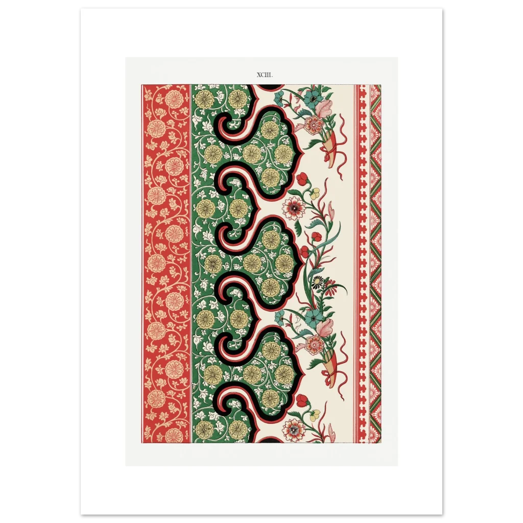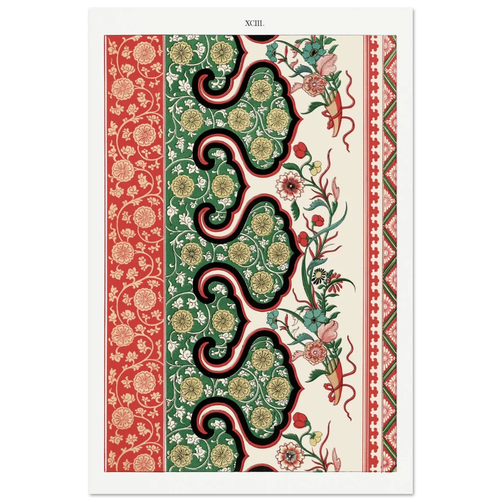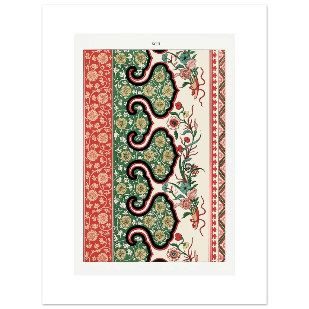 Bring timeless elegance and vibrant charm into your space with our Chinoiserie Floral Tapestry Art Print. Inspired by classic East Asian decorative arts, this poster features intricate patterns in a striking palette of rich reds, deep greens, and warm gold. The harmonious blend of flourishing florals and ornamental borders creates a sophisticated focal point, perfect for adding a touch of exotic luxury to any room.