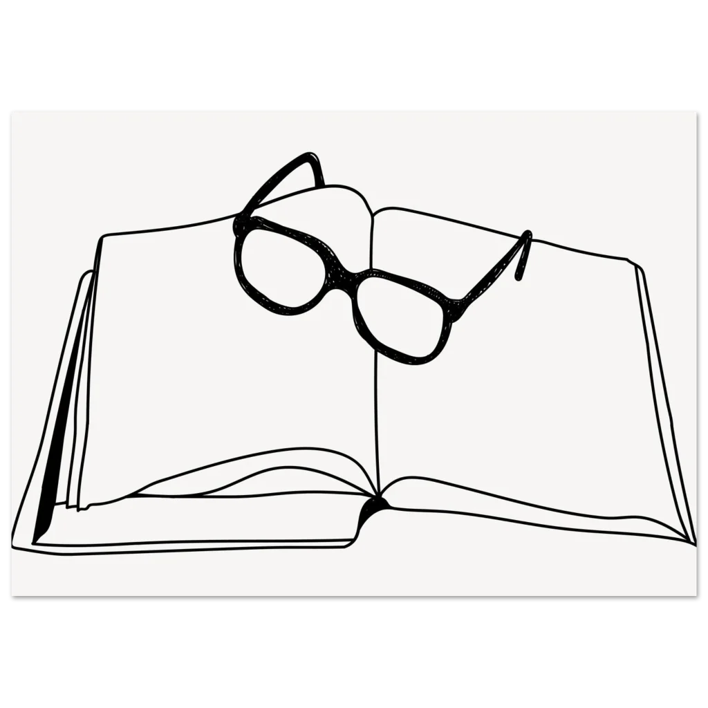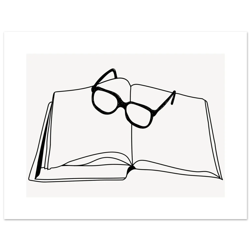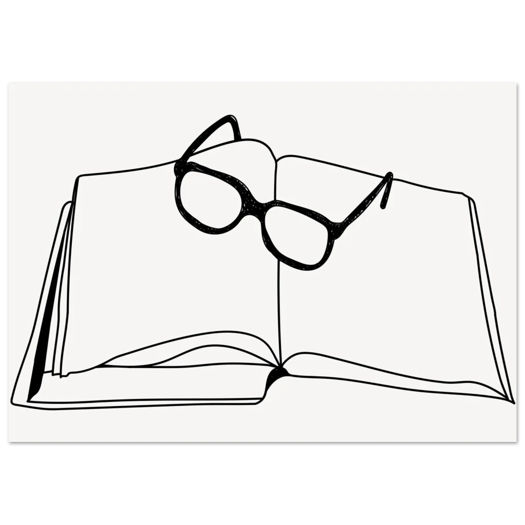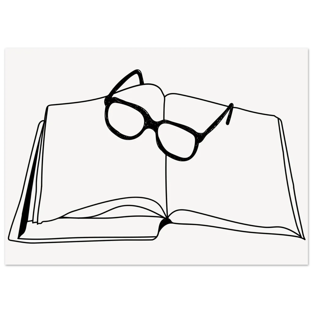 Classic Reading Glasses & Open Book Sketch Poster – Premium Matte Paper Print for Bibliophiles