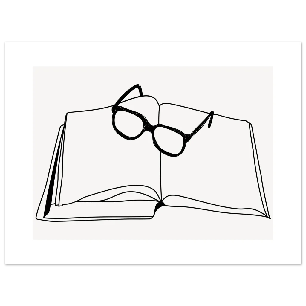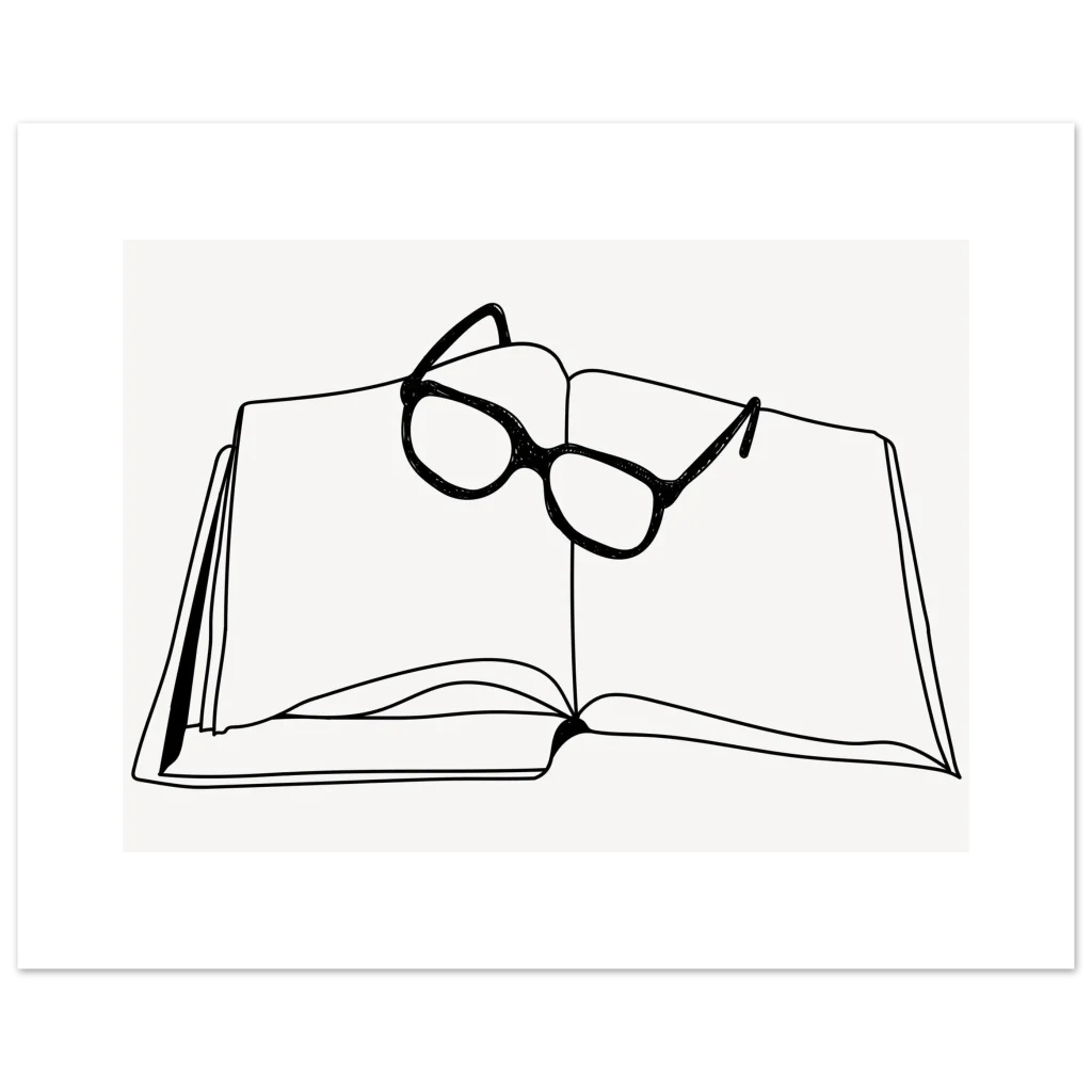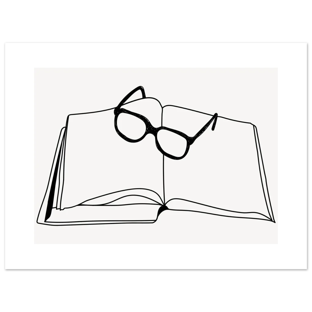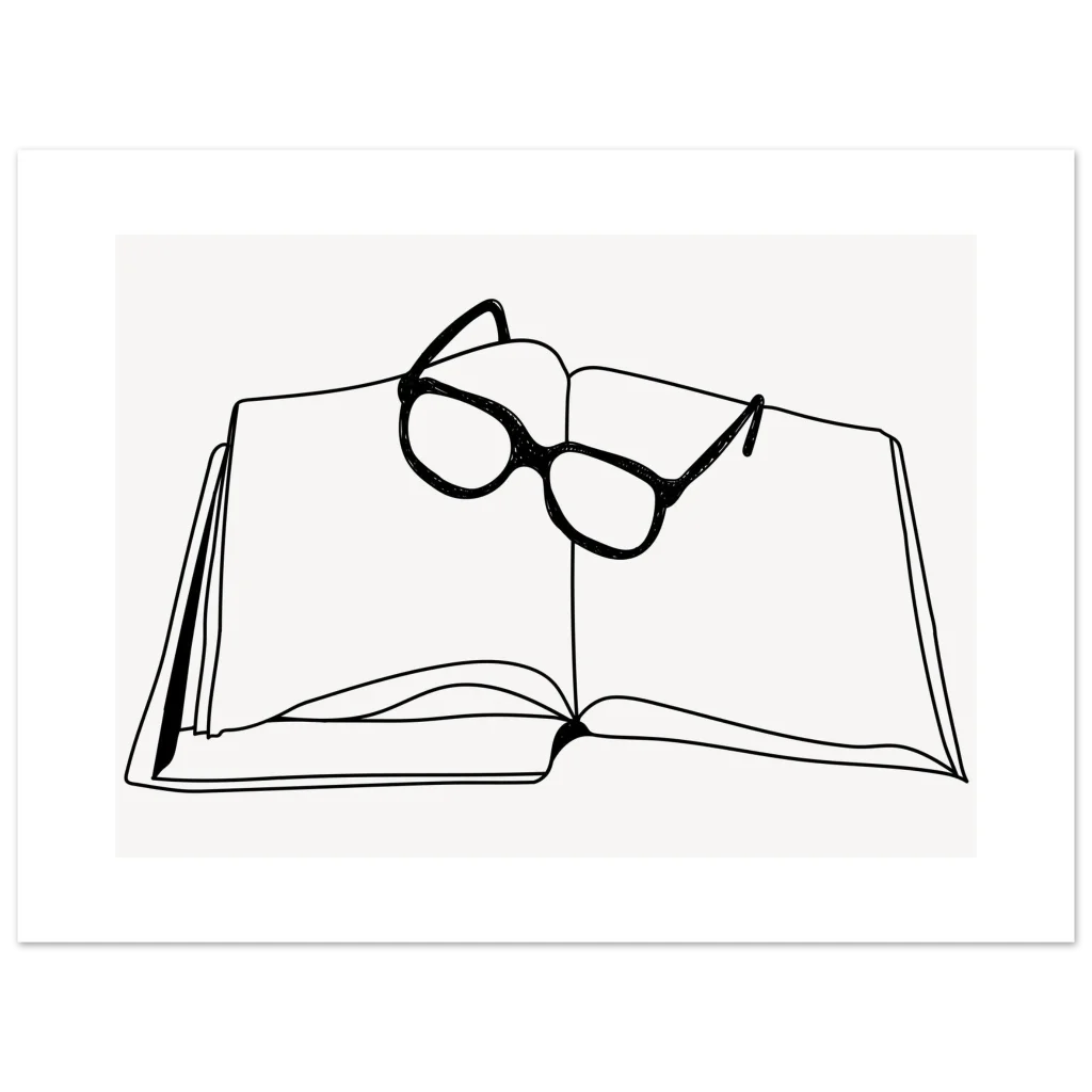 Classic Reading Glasses & Open Book Sketch Poster – Premium Matte Paper Print for Bibliophiles