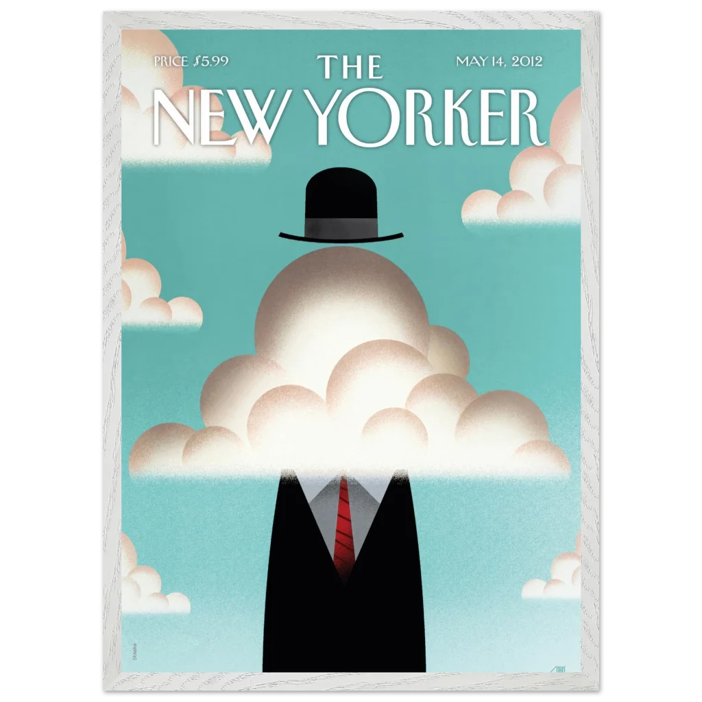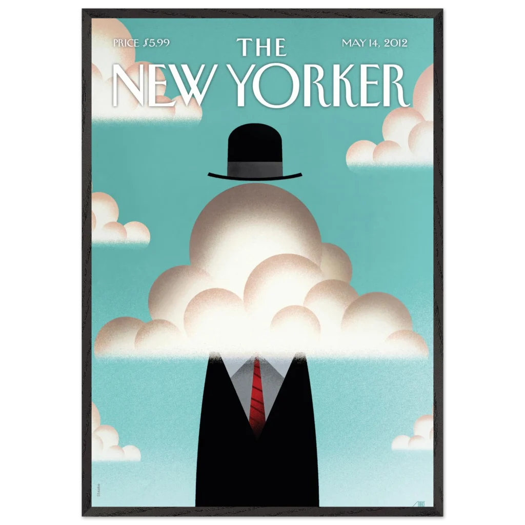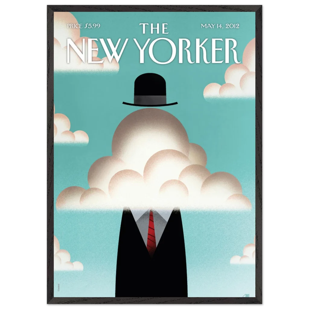 Bring a touch of whimsical surrealism and sophisticated charm to your space with our “Cloud Man” framed poster. Inspired by classic New Yorker covers, this intriguing artwork features a gentleman in a suit and bowler hat, whose head is delightfully replaced by a soft, ethereal cloud. The subtle yet striking color palette and unique concept make it a captivating conversation piece for any art enthusiast.