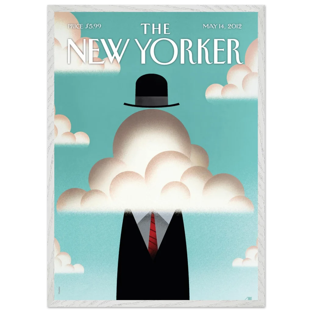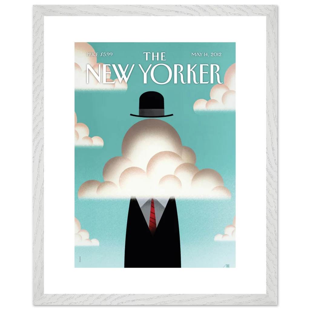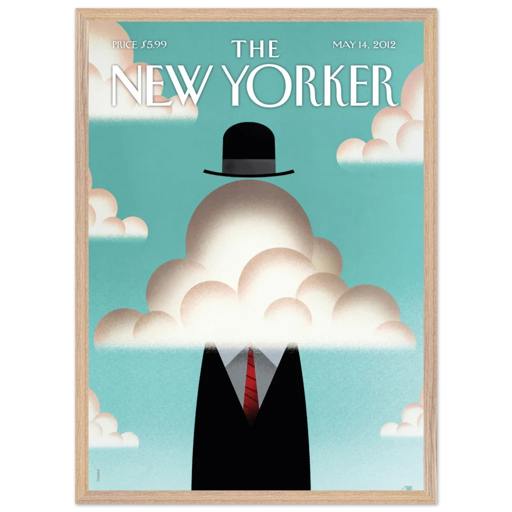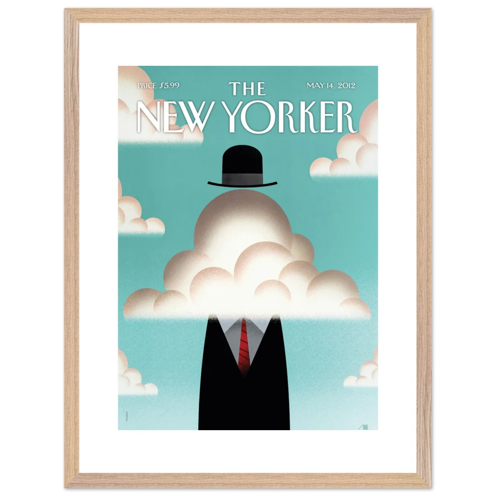 Bring a touch of whimsical surrealism and sophisticated charm to your space with our “Cloud Man” framed poster. Inspired by classic New Yorker covers, this intriguing artwork features a gentleman in a suit and bowler hat, whose head is delightfully replaced by a soft, ethereal cloud. The subtle yet striking color palette and unique concept make it a captivating conversation piece for any art enthusiast.