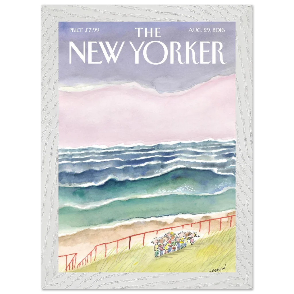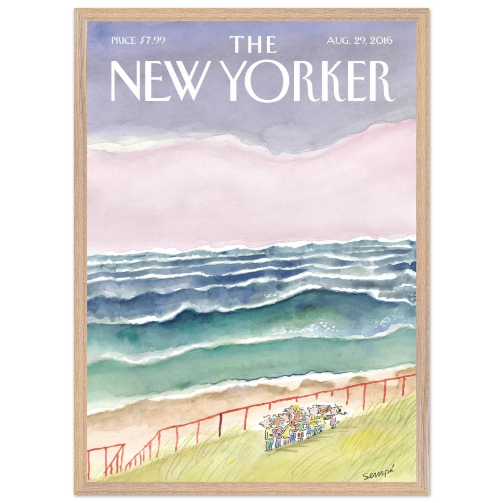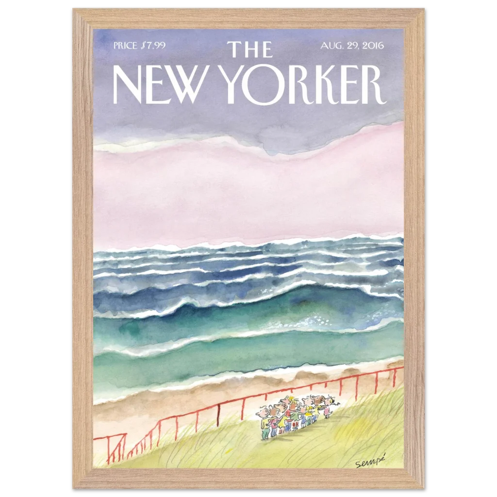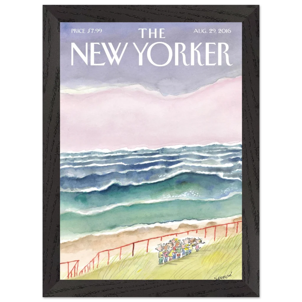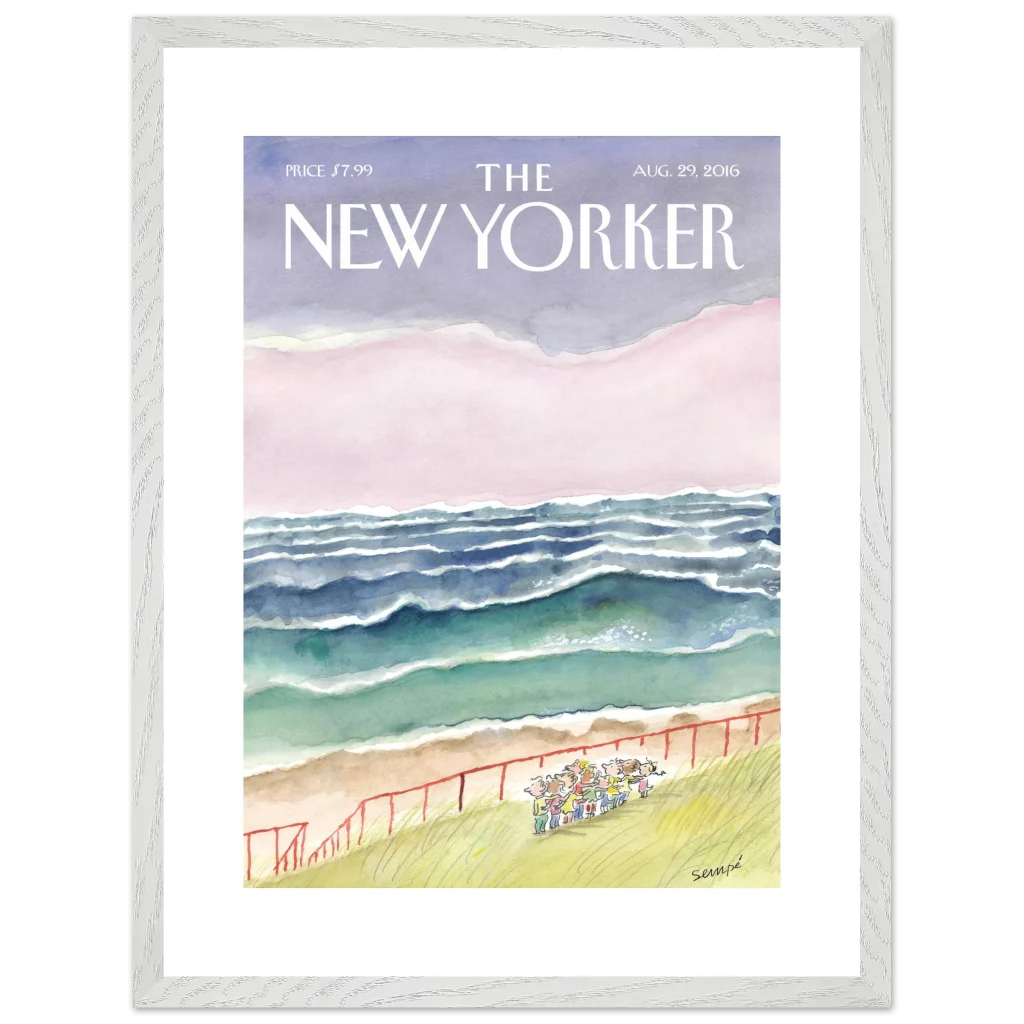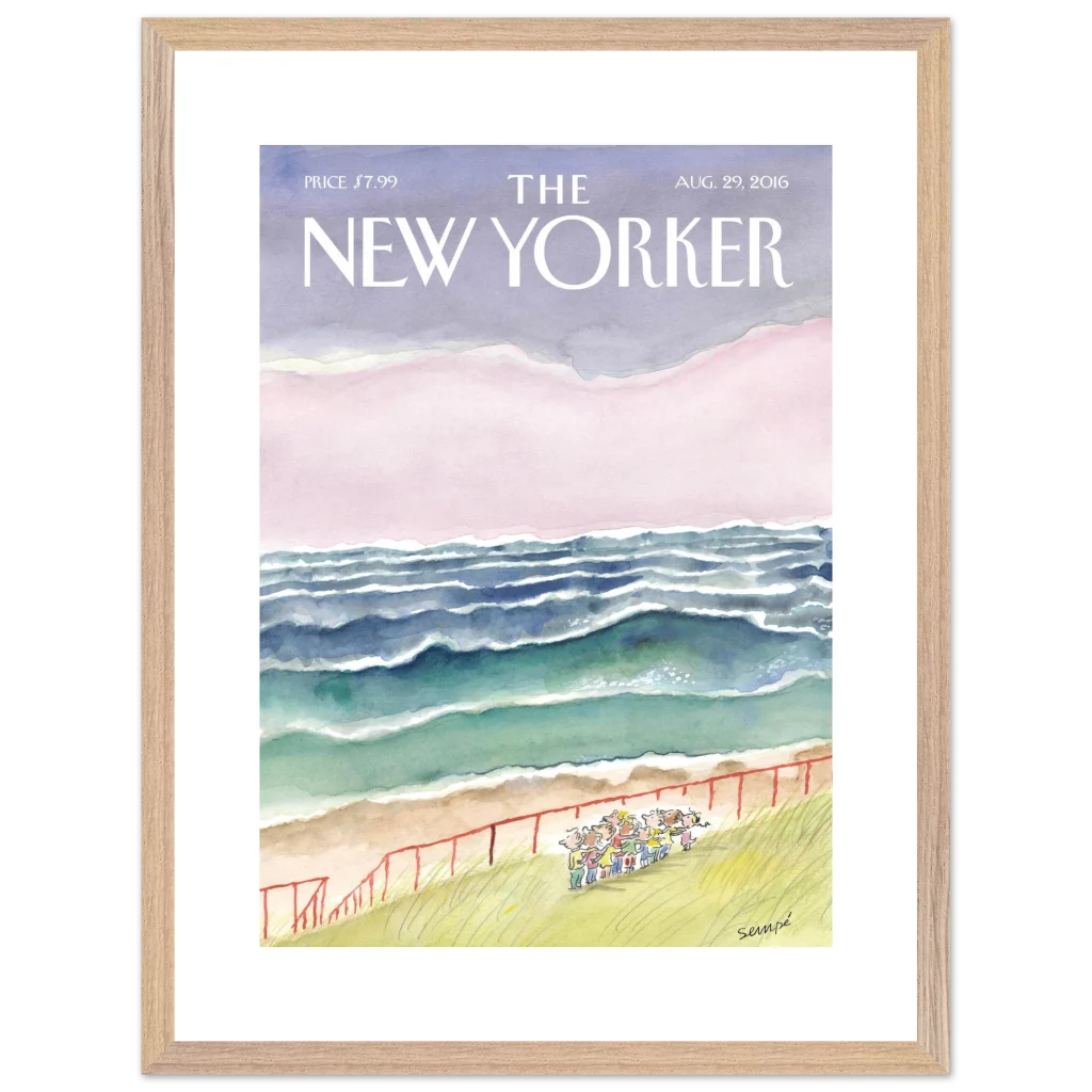 Coastal Charm: Sempé’s ‘The New Yorker’ August 2016 Cover Art Print – Premium Framed Poster